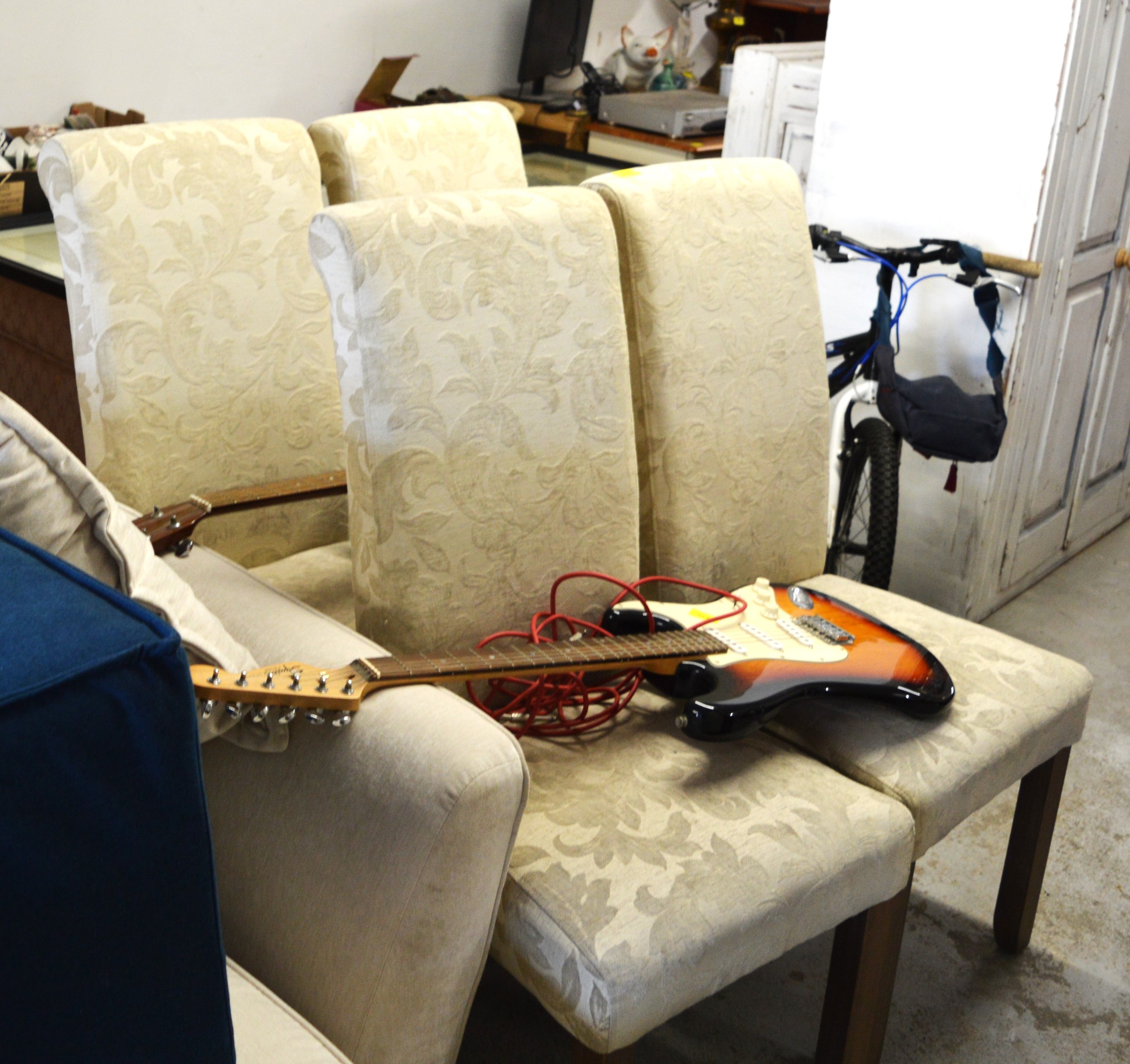 Set of Four Dining Chairs (Upholstered in a Pale Cream Fabric)