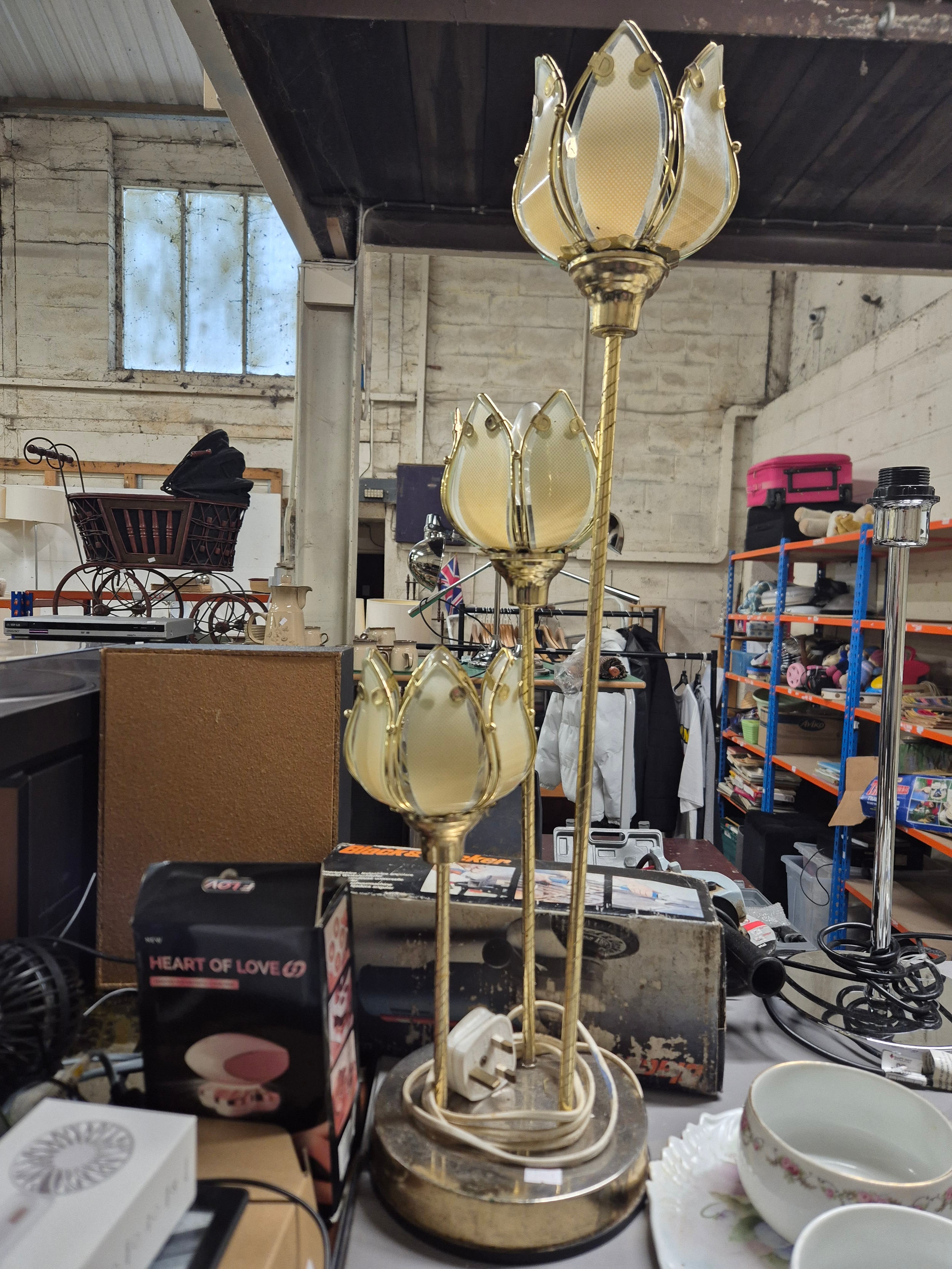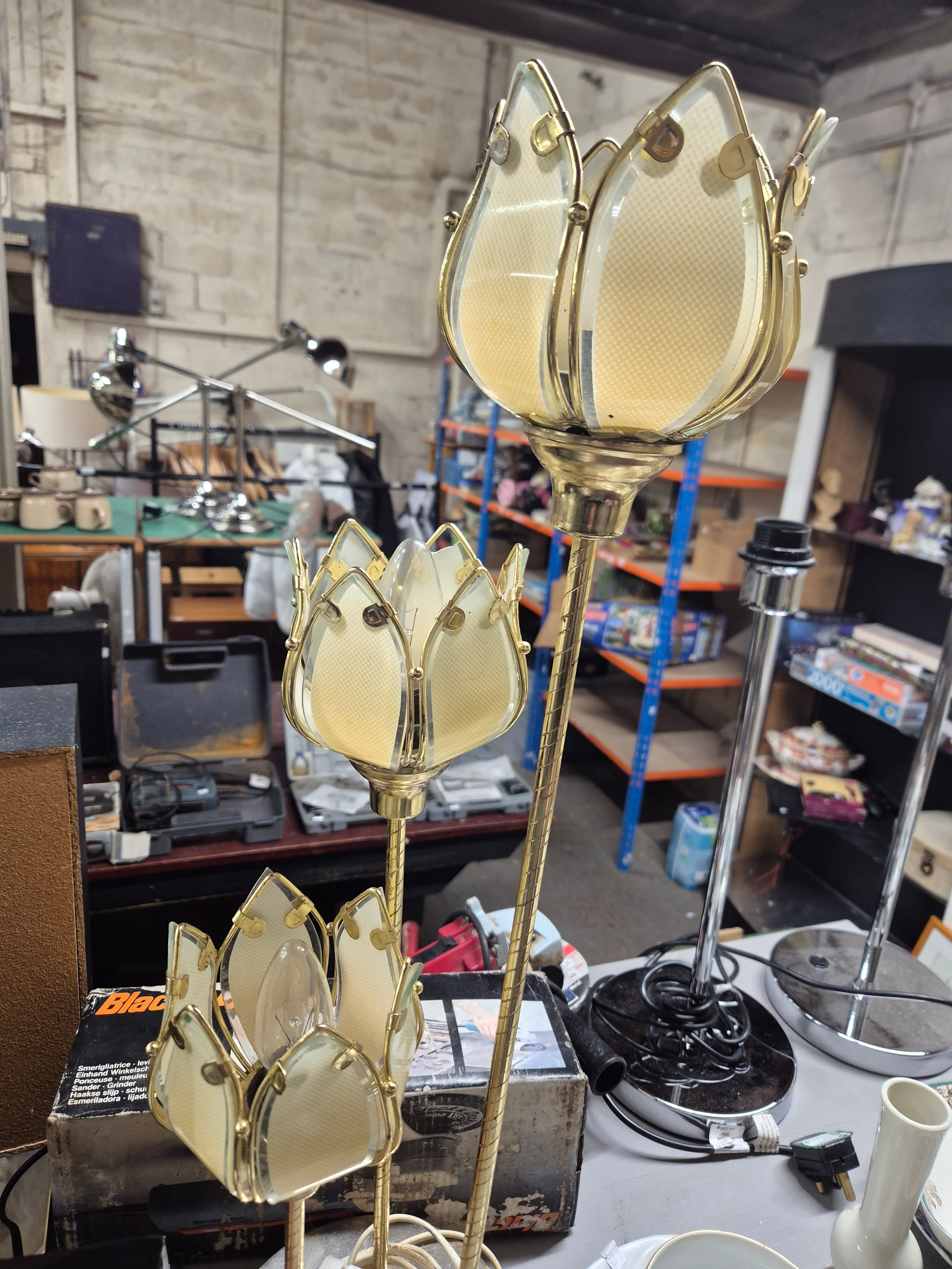Triple tulip shade table lamps