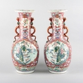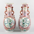 A PAIR OF CHINESE FAMILLE ROSE BOTTLE SHAPED VASES
