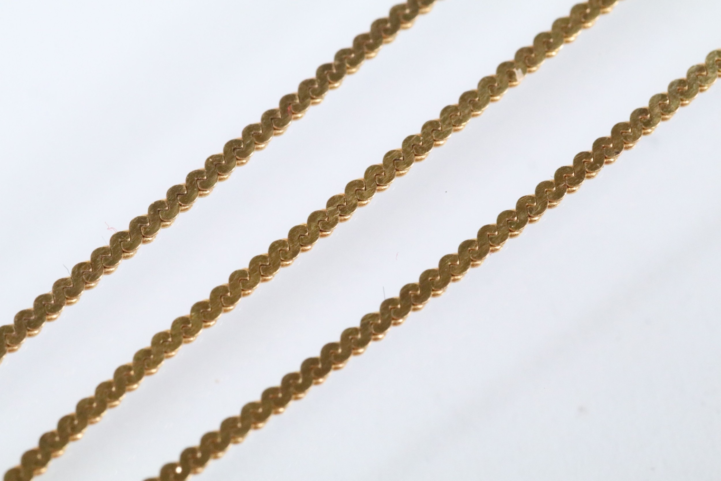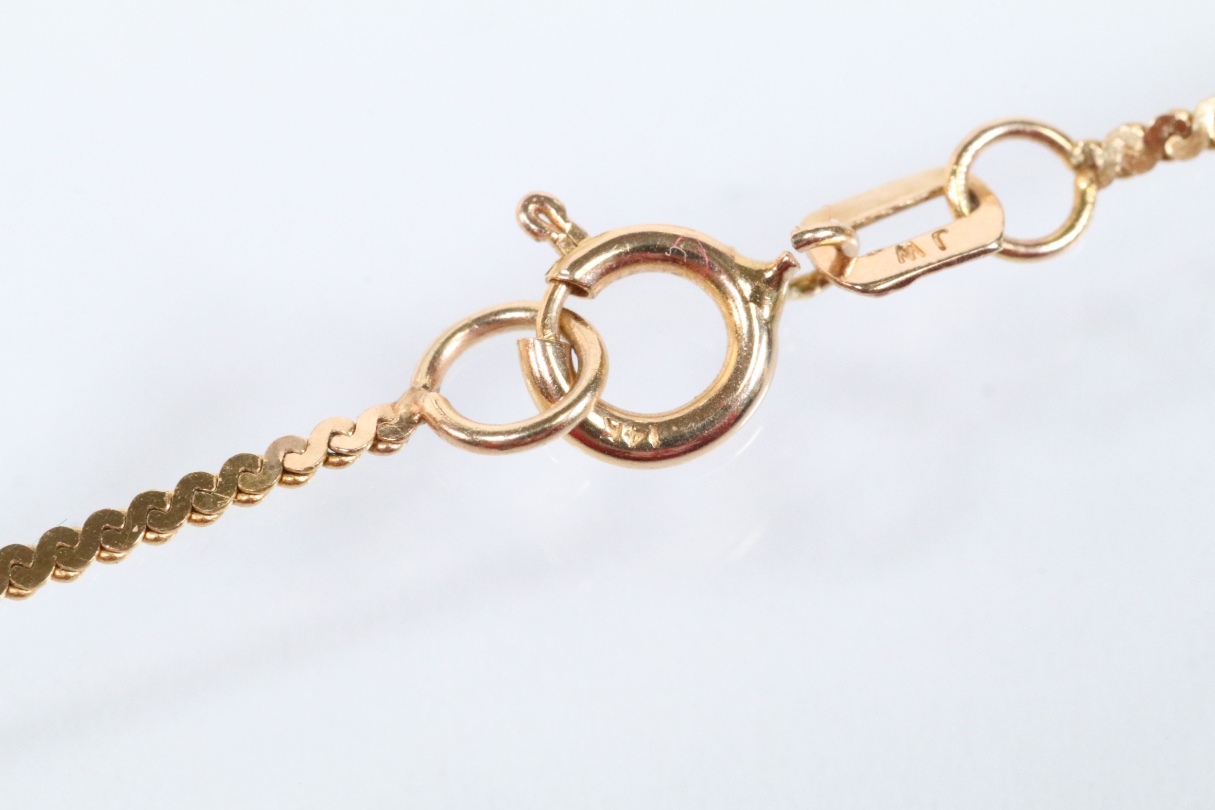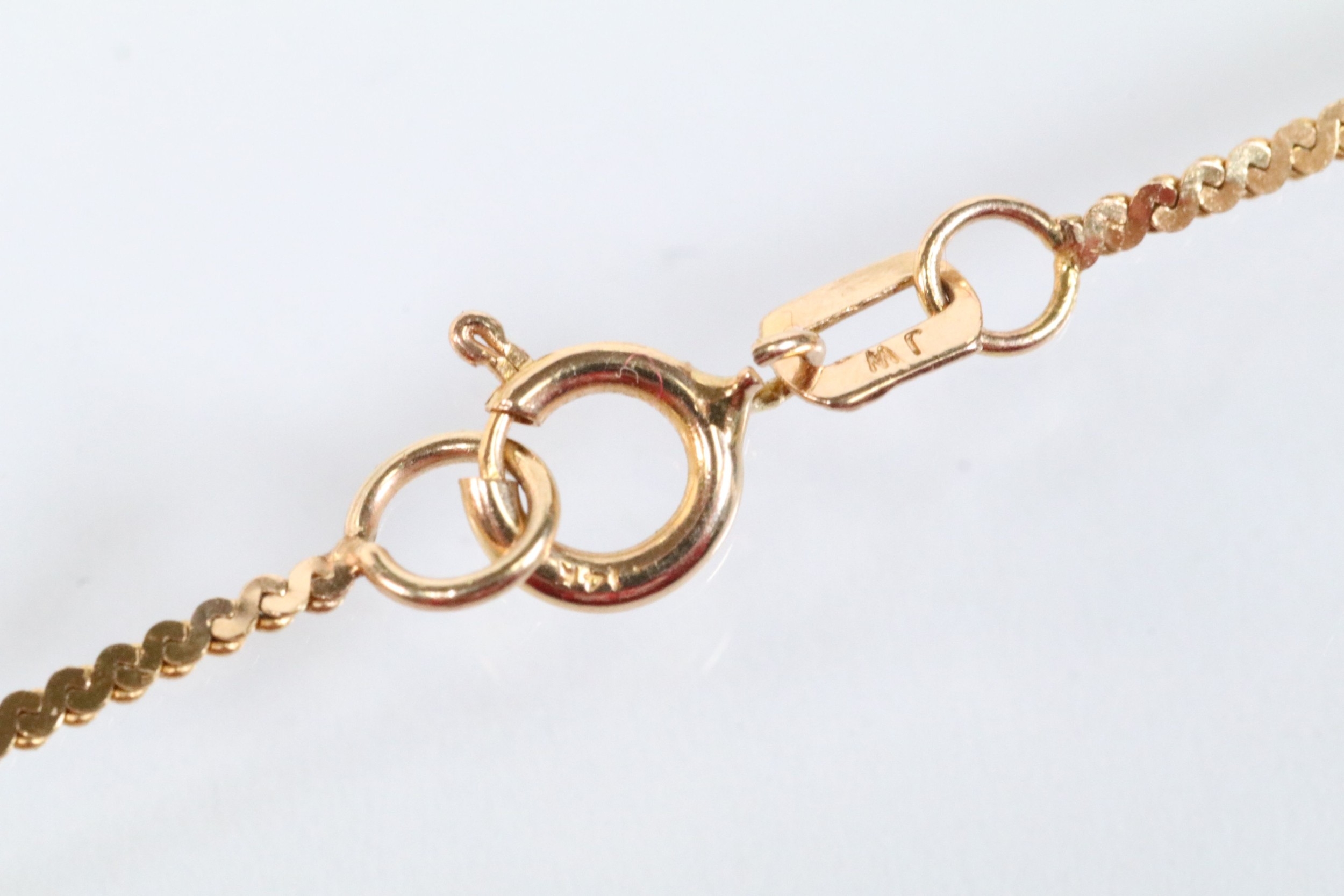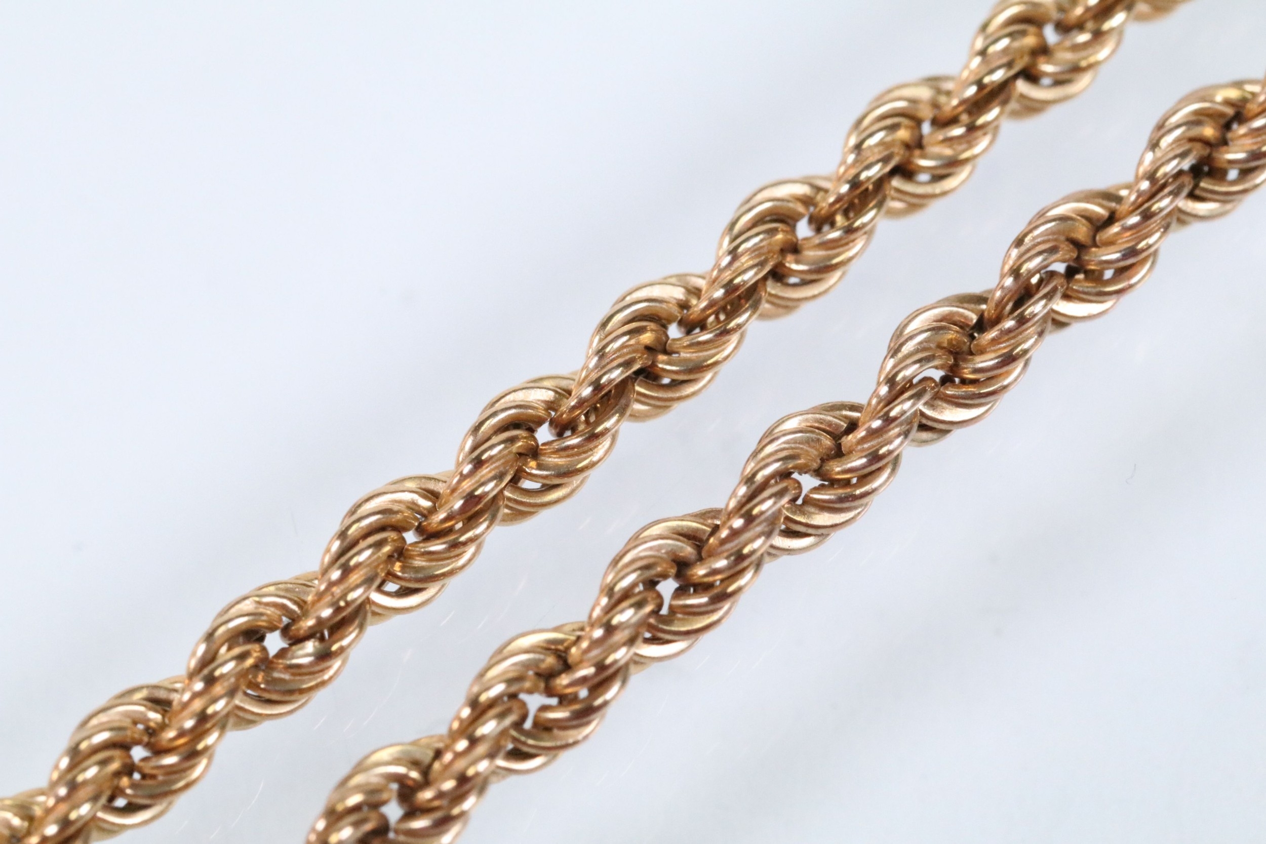 Two gold necklaces to include a rope twist necklace (clasp missing, hallmarked to jump link, measures 15 inches), a 14ct gold flat link necklace chain (marked 14k to jump link, chain measures 18 inches).