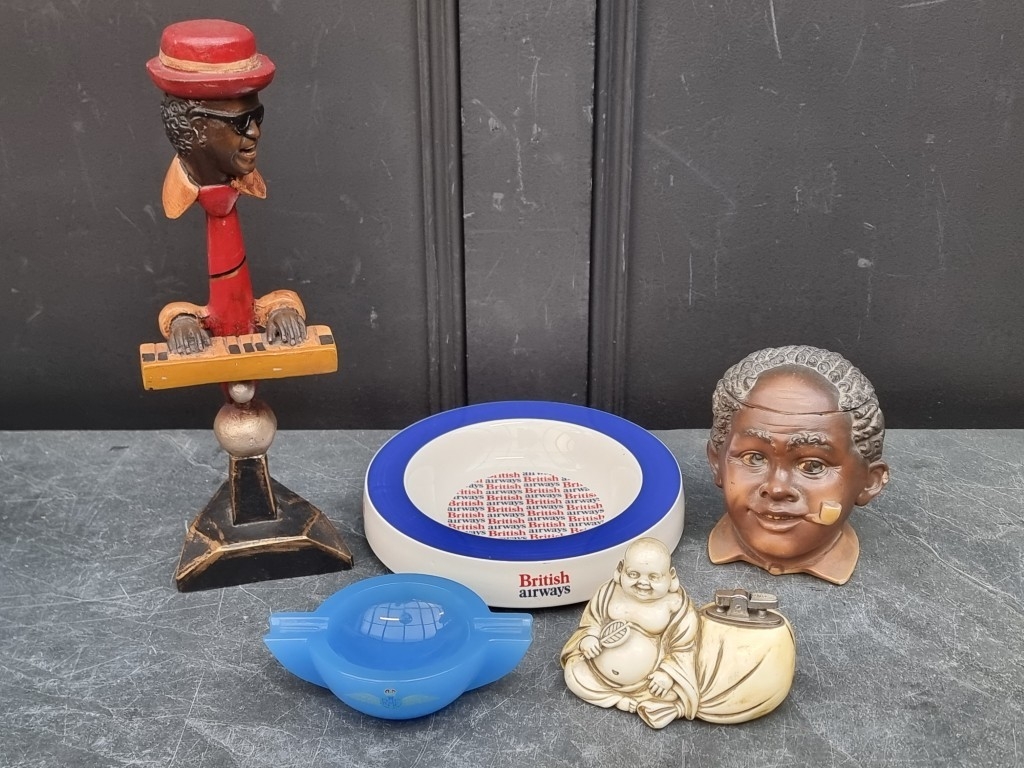 Tobacciana: a mixed group, to include a Continental porcelain novelty tobacco jar & cover; and a Wade 'British Airways' ashtray, 21.5cm diameter. (5)