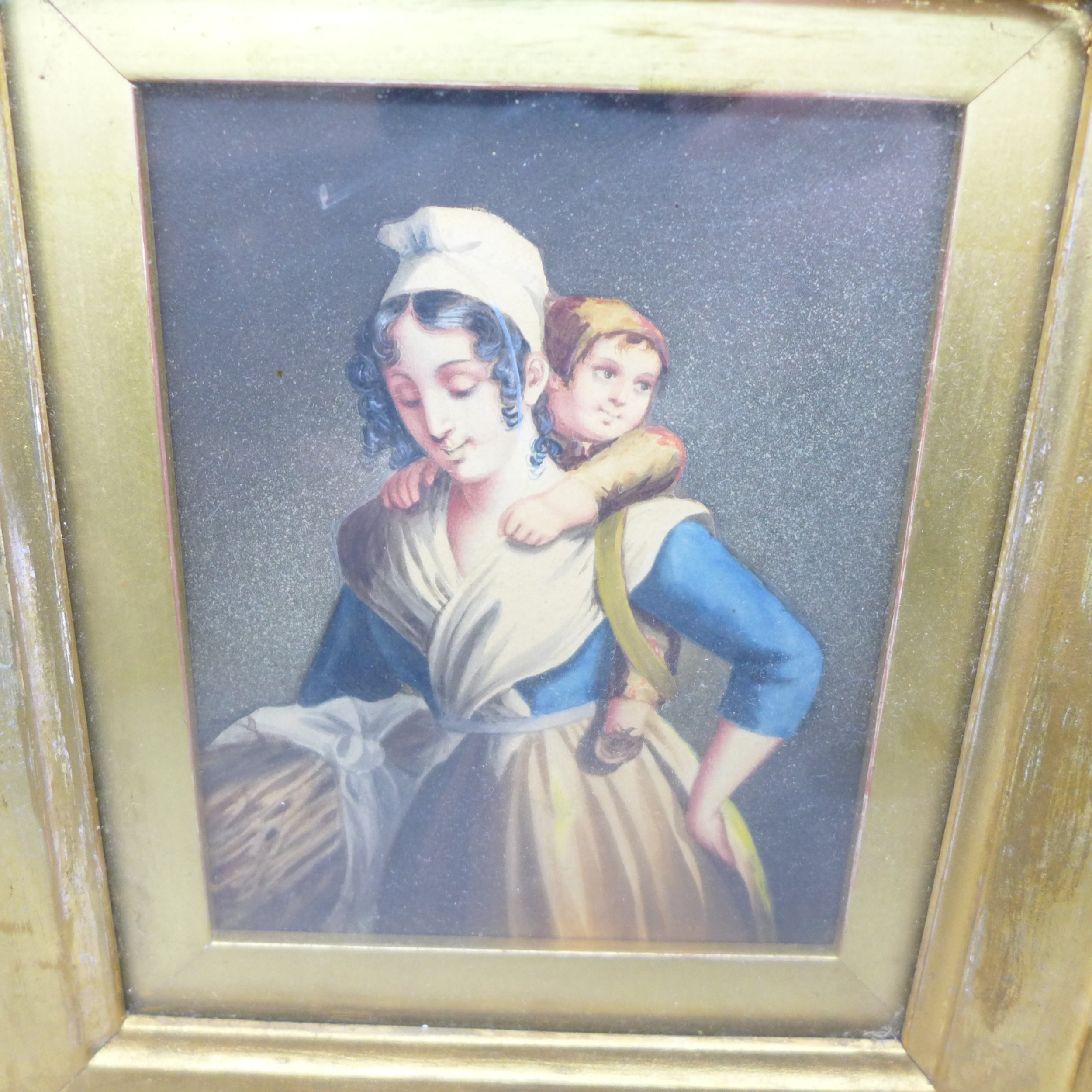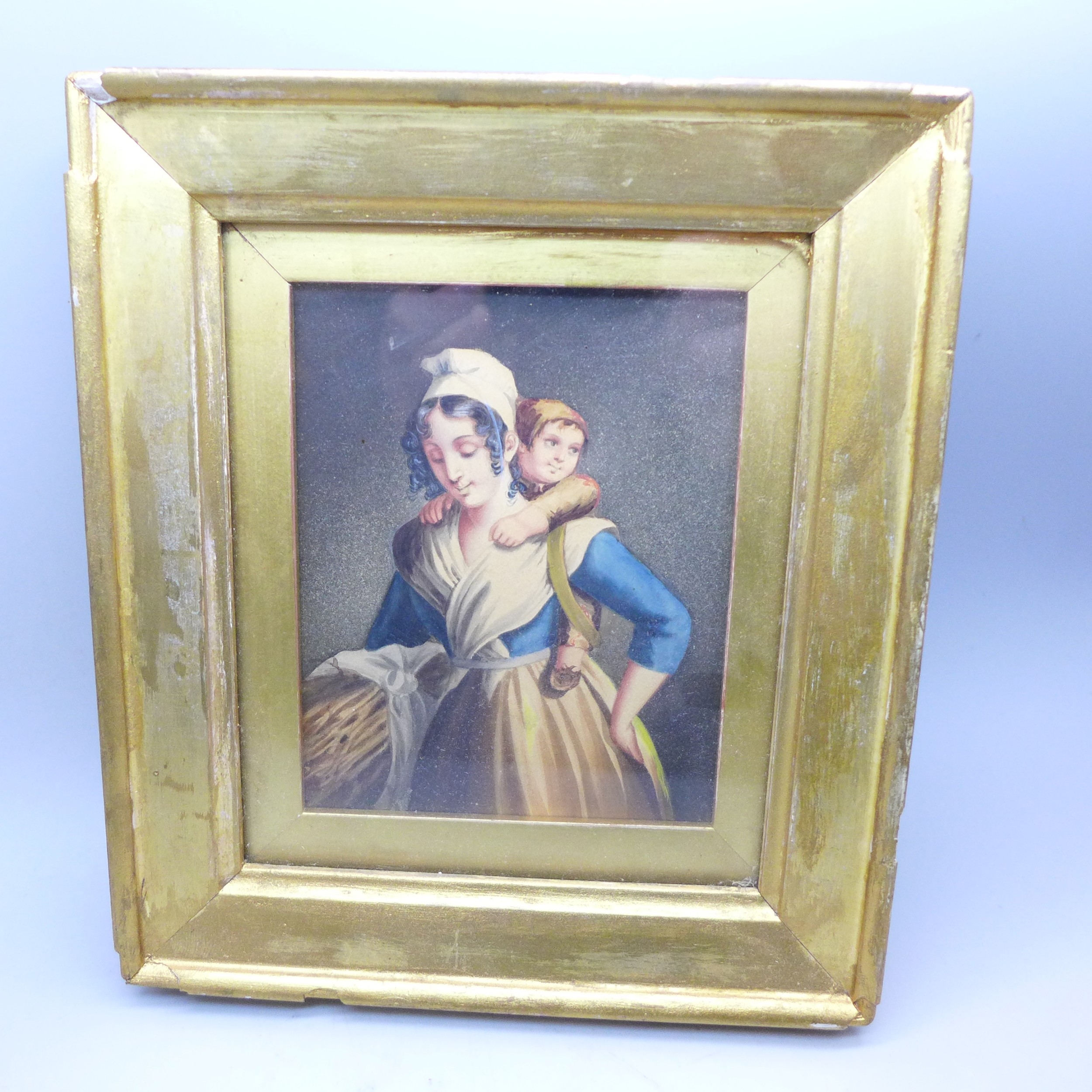 Italian School, a mid 19th Century scene with mother and child, watercolour, in a gilt frame, frame 17cm wide