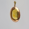 An early 20th century citrine pendant, the oval cut citrine within a seed pearl border with conforming bale, stamped ‘15ct’ to reverse, 3.5cm long, 5gms