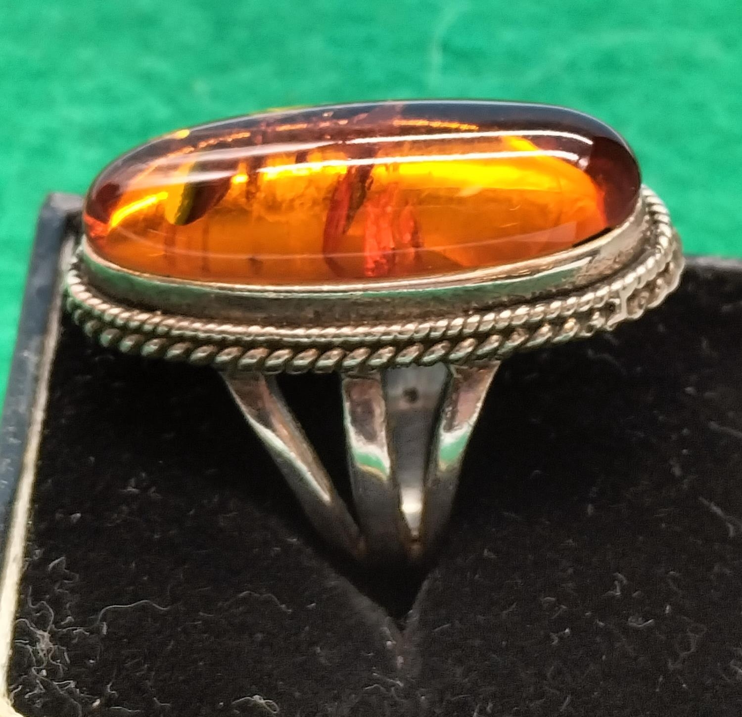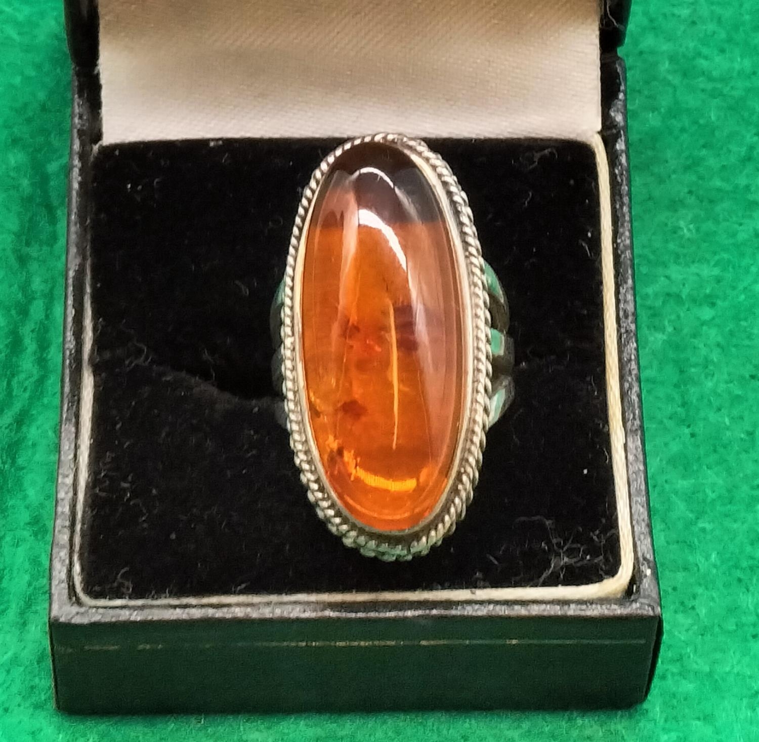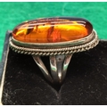 925 Silver and Amber Ring. Size K. 12.8 Grams including Amber.