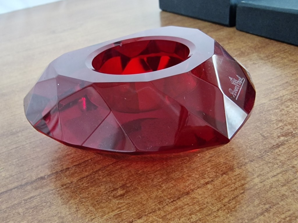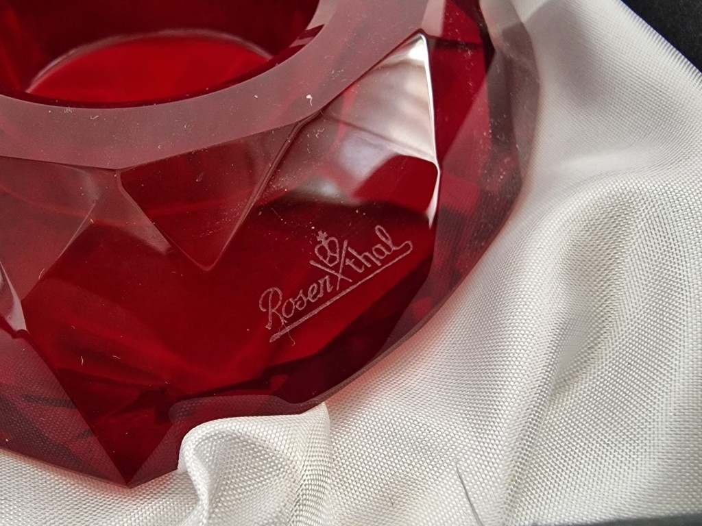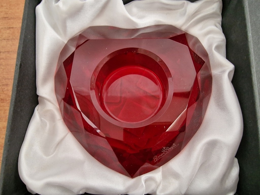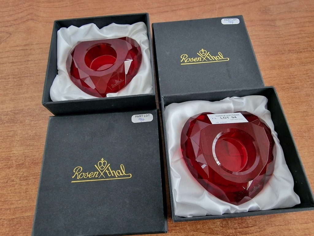Pair of Rosenthal Heart Shaped Red Crystal Multi-Faceted Candle Holders, (Approx. W: 10cm), in Original Boxes, (2)