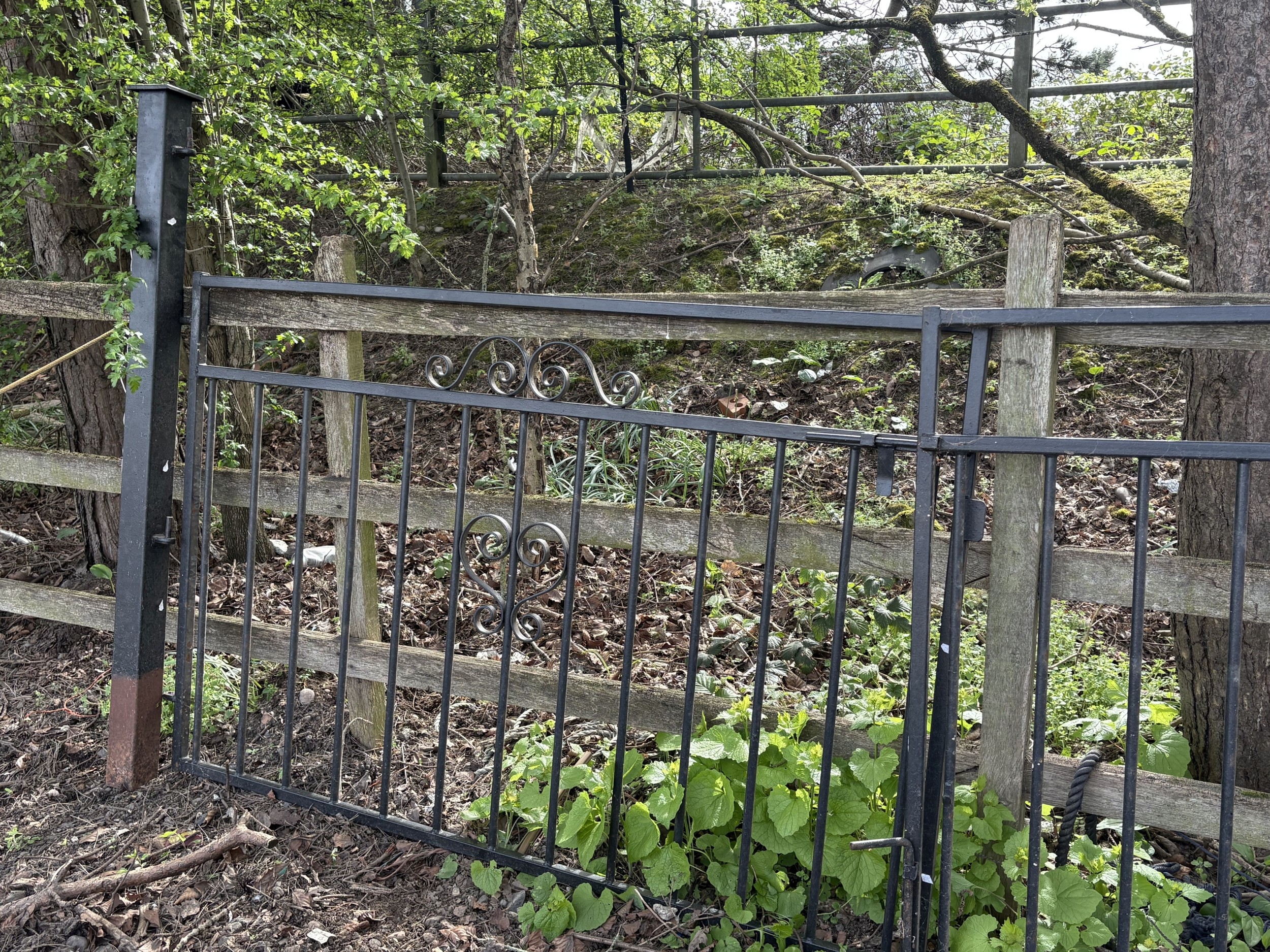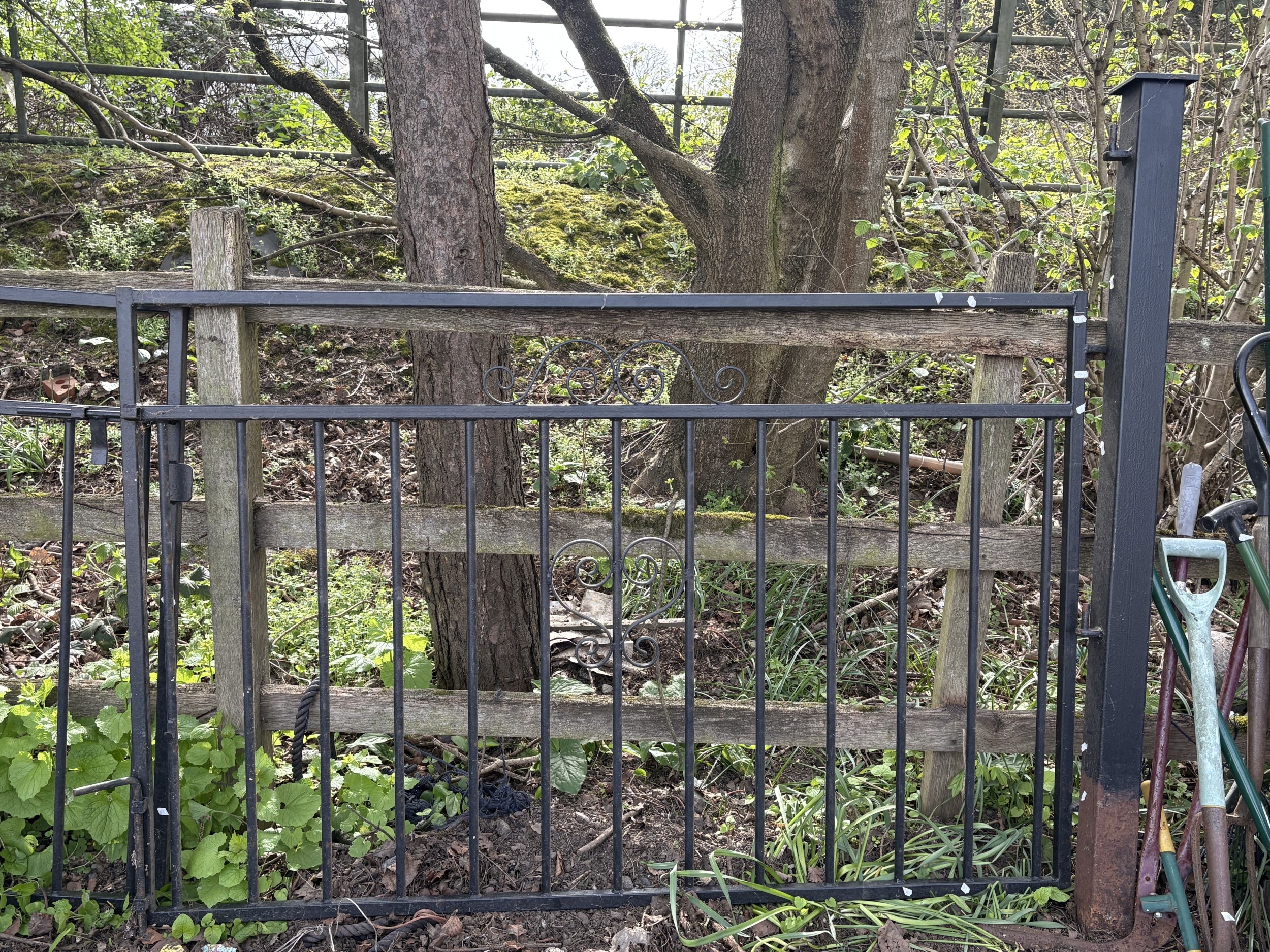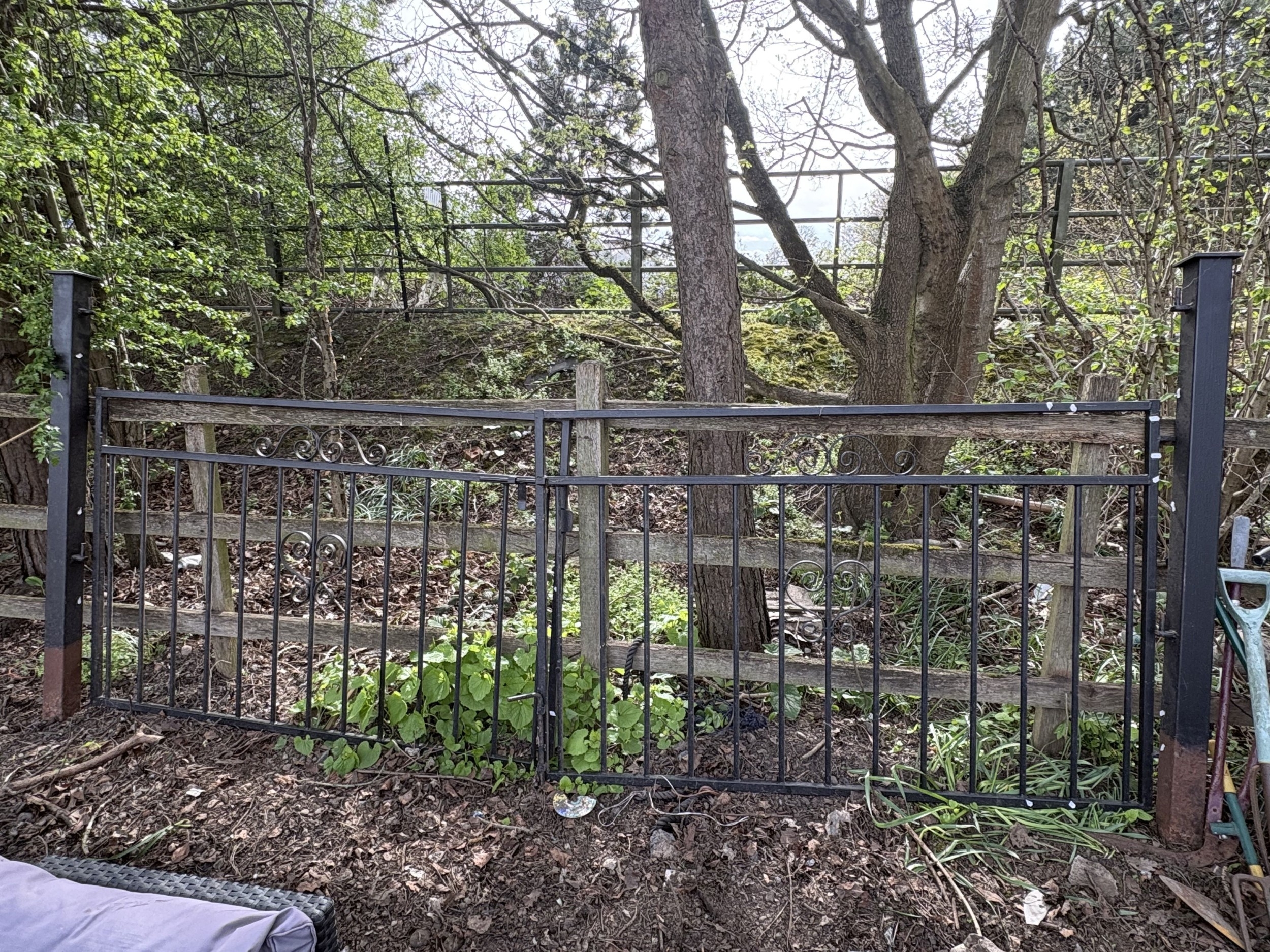 A PAIR OF CAST METAL DOUBLE DRIVEWAY GATES, with posts, overall length between posts, 334cm, each gate width 167cm, height 107cm, condition report: appears in fair condition