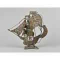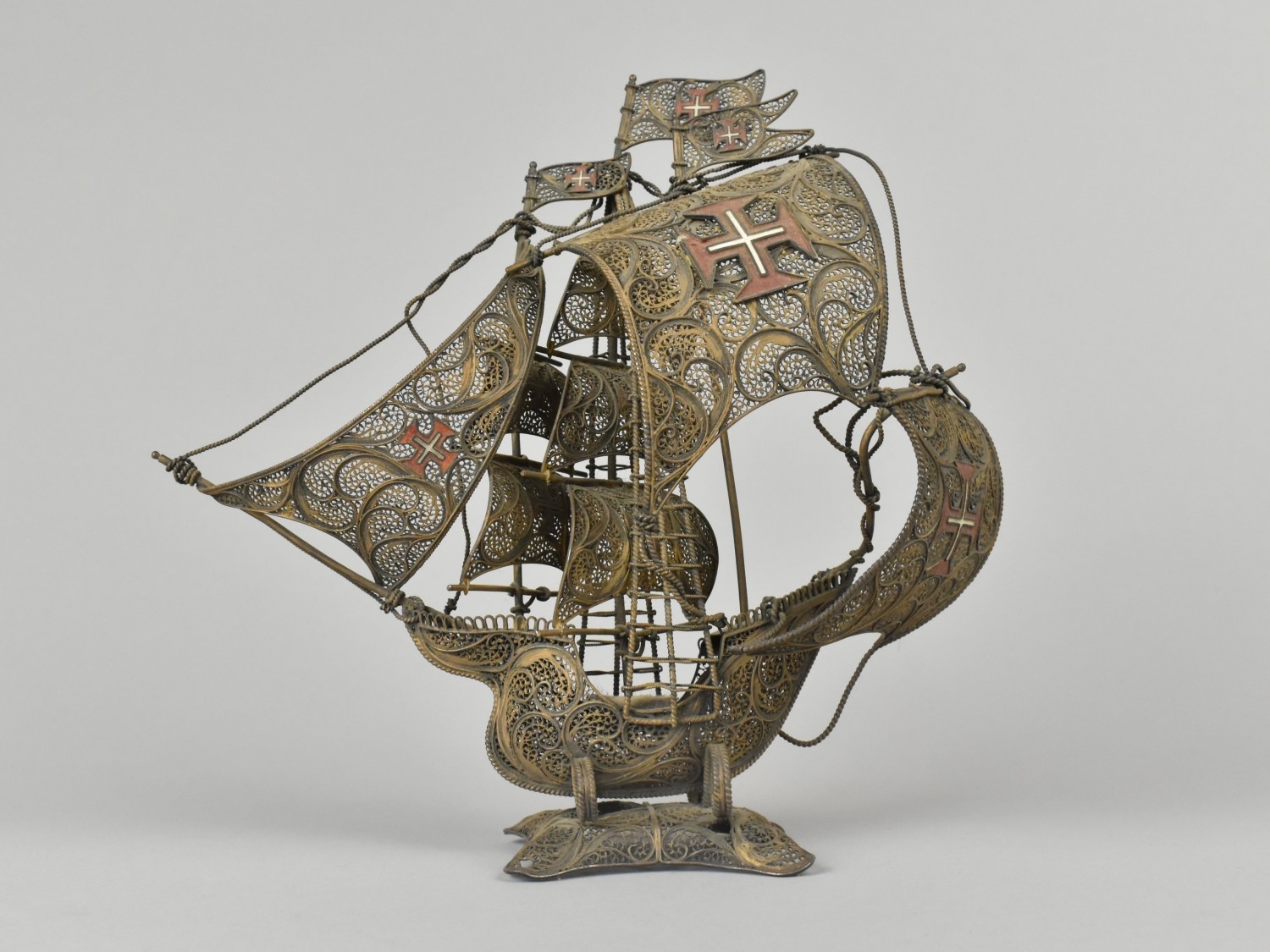 A Nicely Made White Metal Filigree Model of The Santa Maria, 21cms High