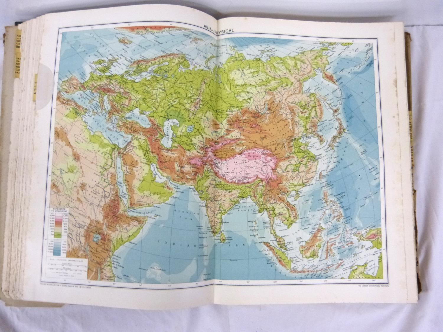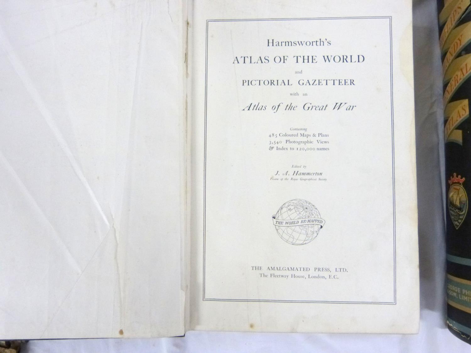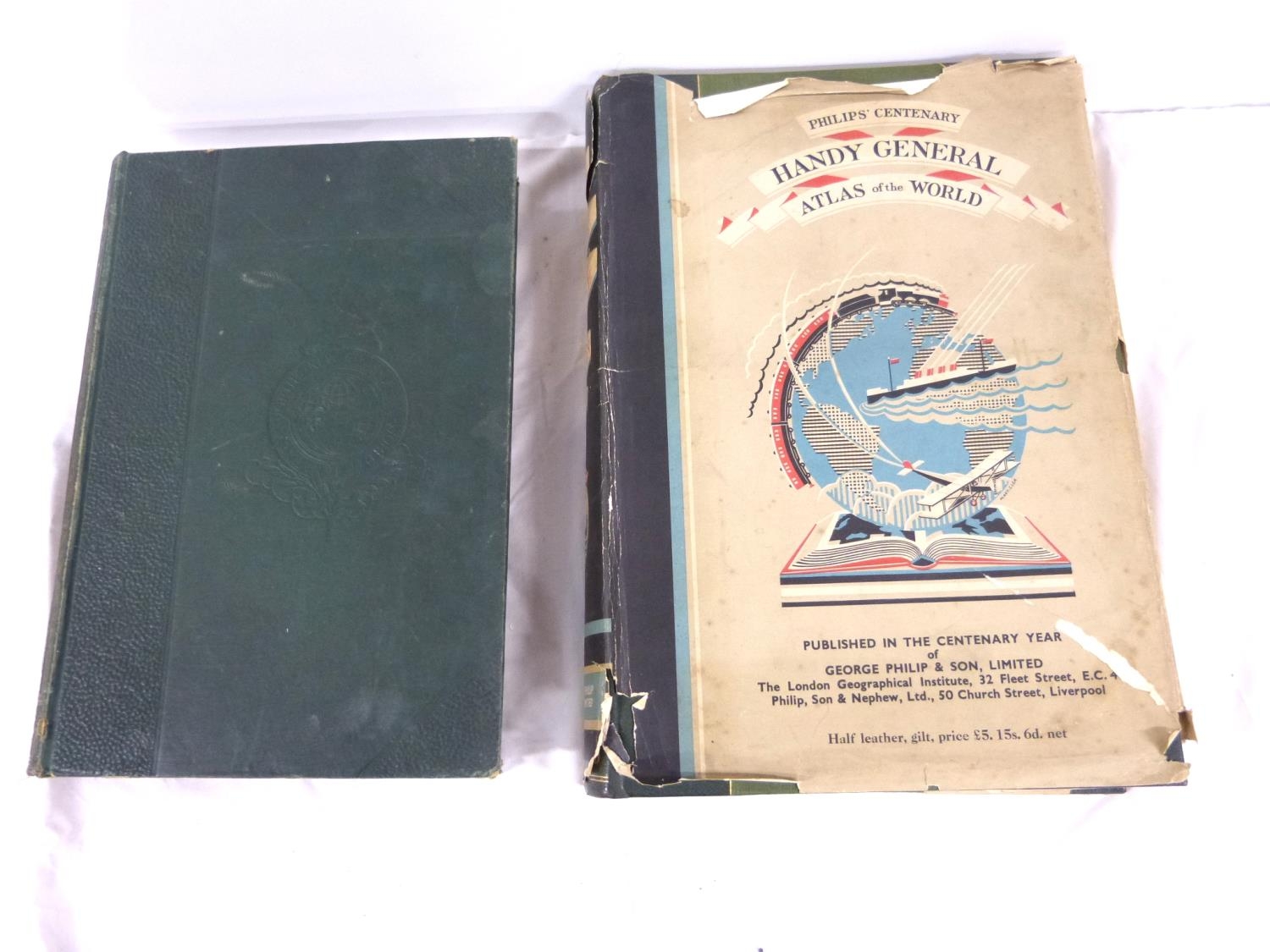 Two large atlases to include new atlas of the world and Phillips handy general atlas 1934.