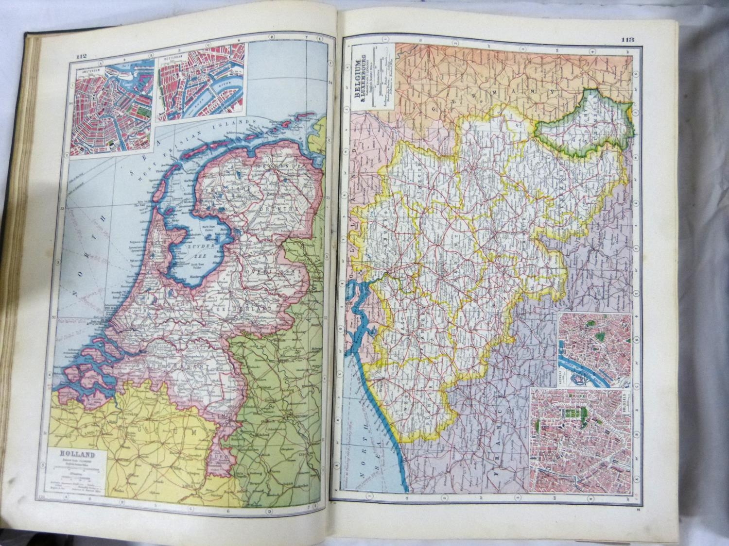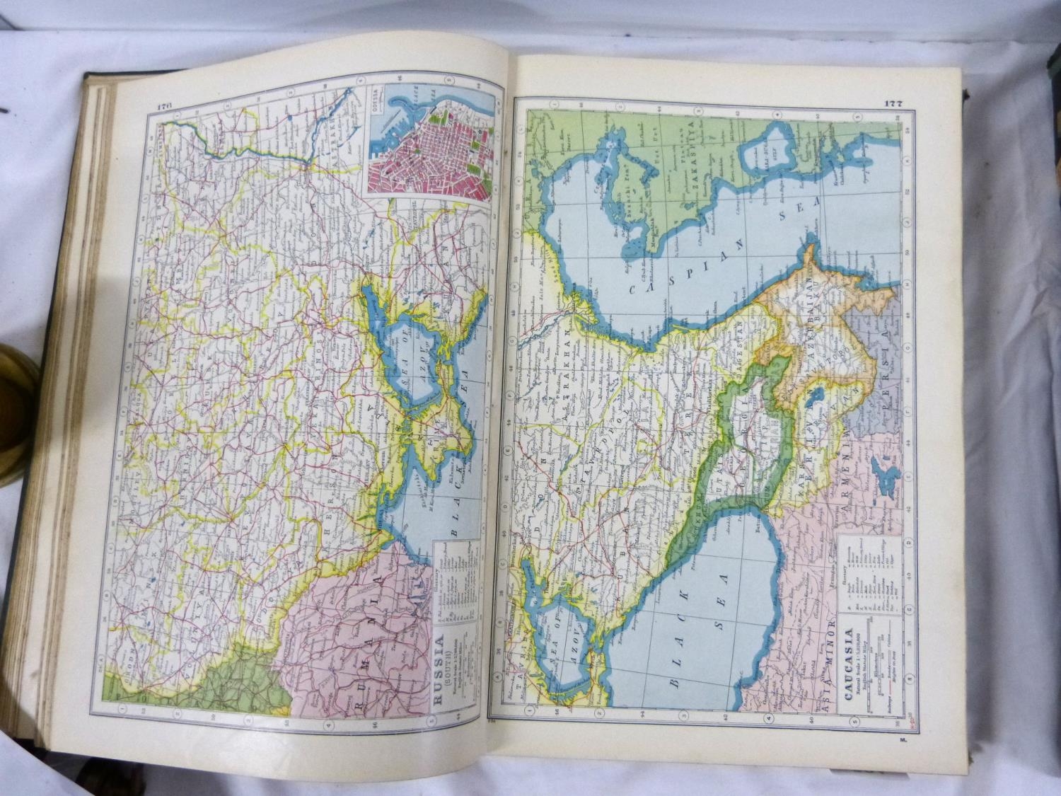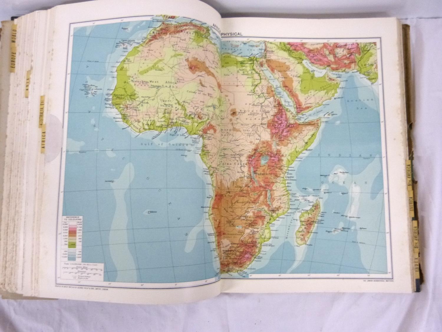 Two large atlases to include new atlas of the world and Phillips handy general atlas 1934.