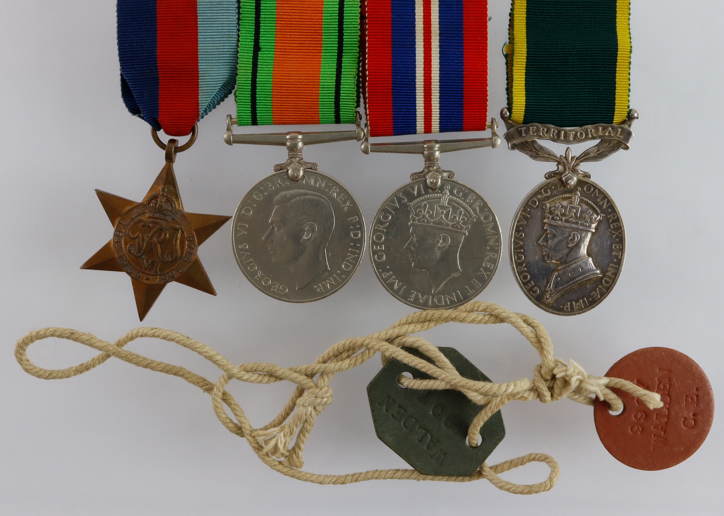 Group for (W.9907 Sjt D A Walden ATS) 1939-45 Star, Defence & War Medals, Efficiency Medal GVI with Territorial clasp, ID Tags. With research for Doris Amy Walden. (4)