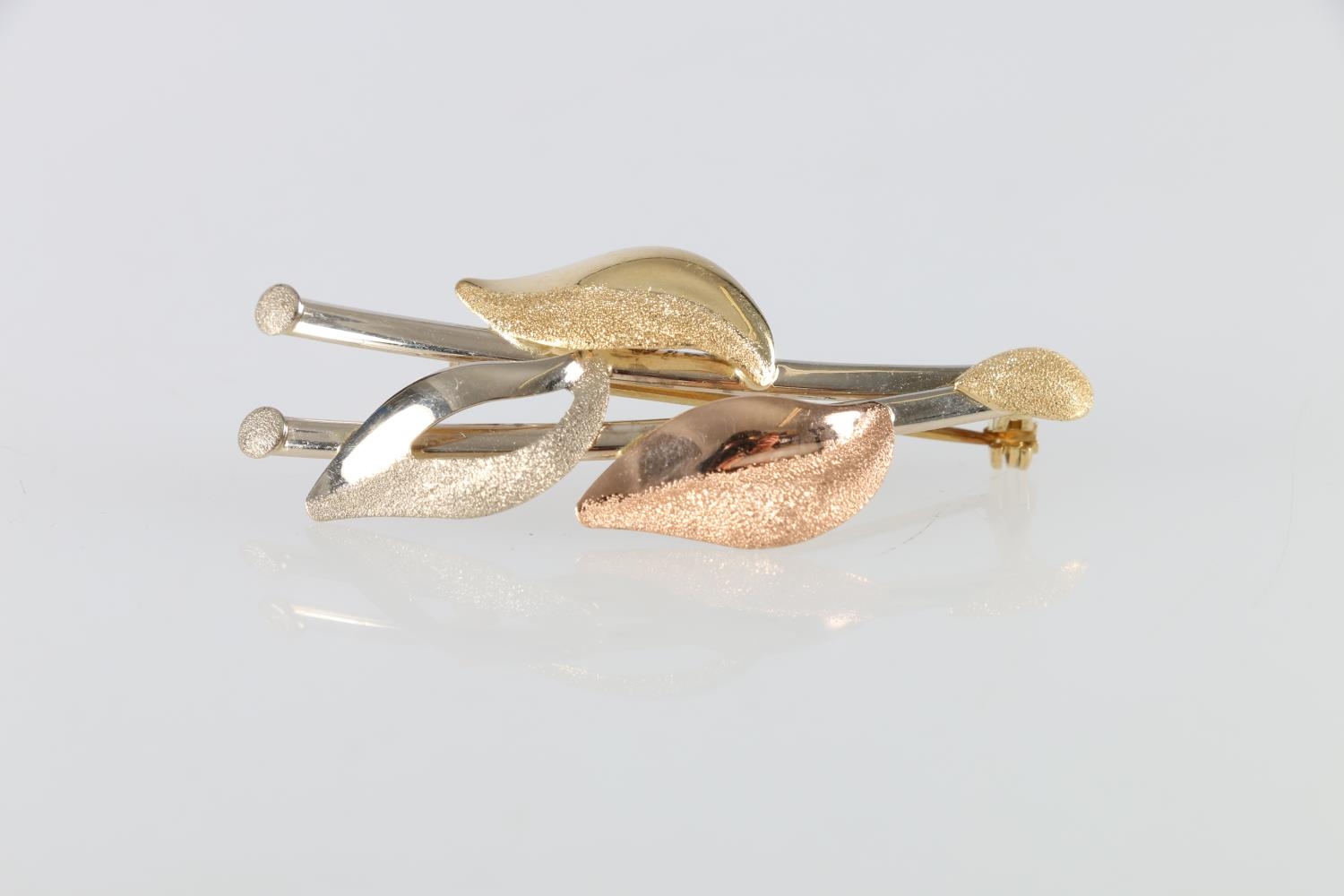 18ct gold leaf brooch with textured design, 5g