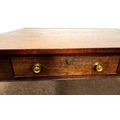 This was originally a draw-leaf but these were removed and the slide holes blocked. The top currently is removable but could be easily firmly fixed. It would make a very practical library or work table. Top has a few marks and would improve with a light polish.