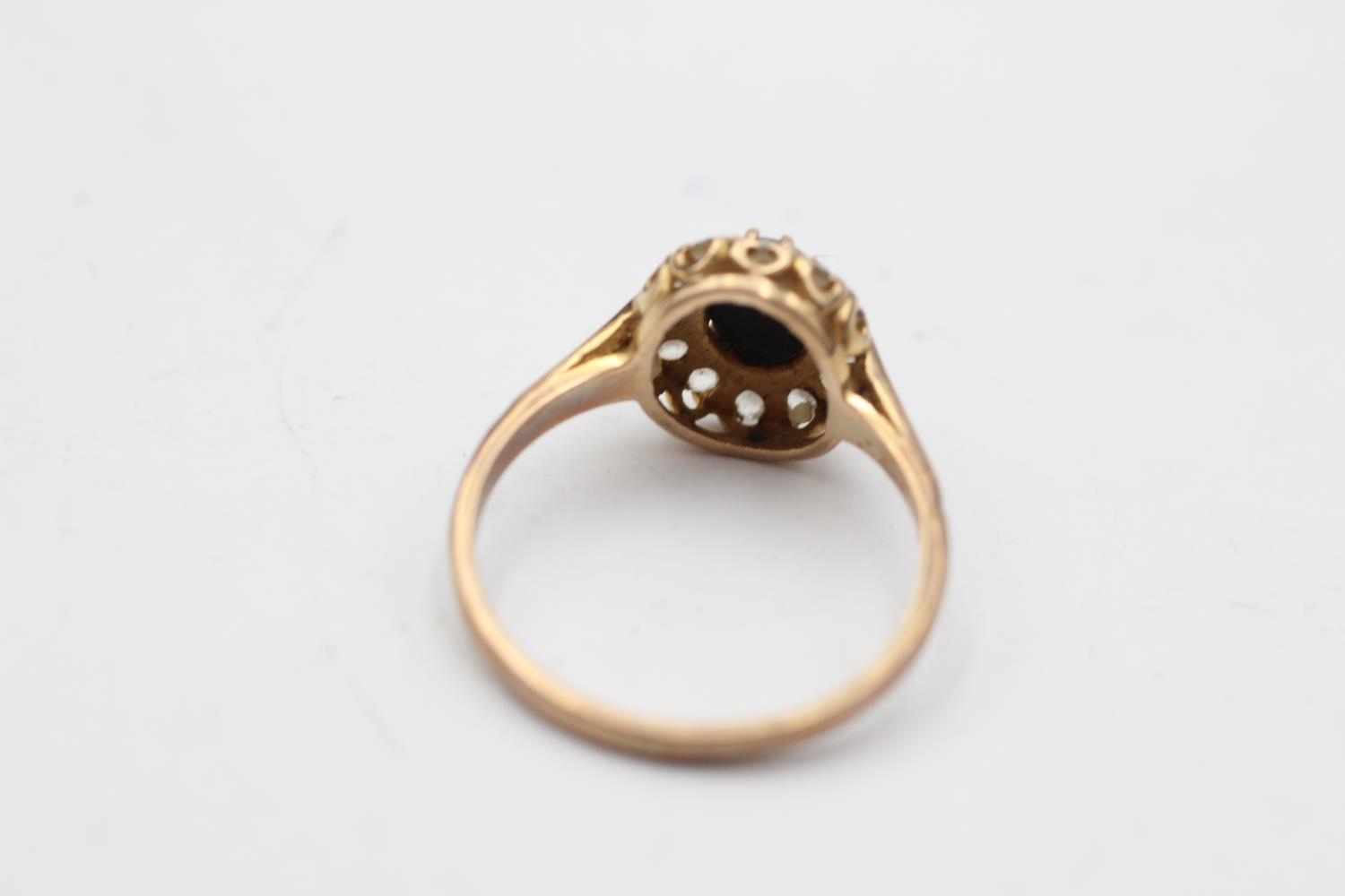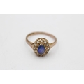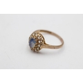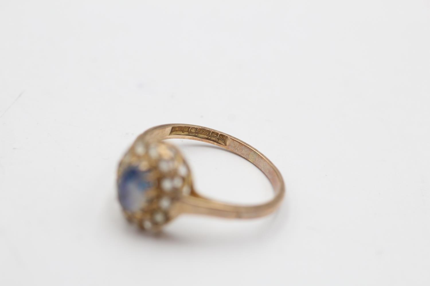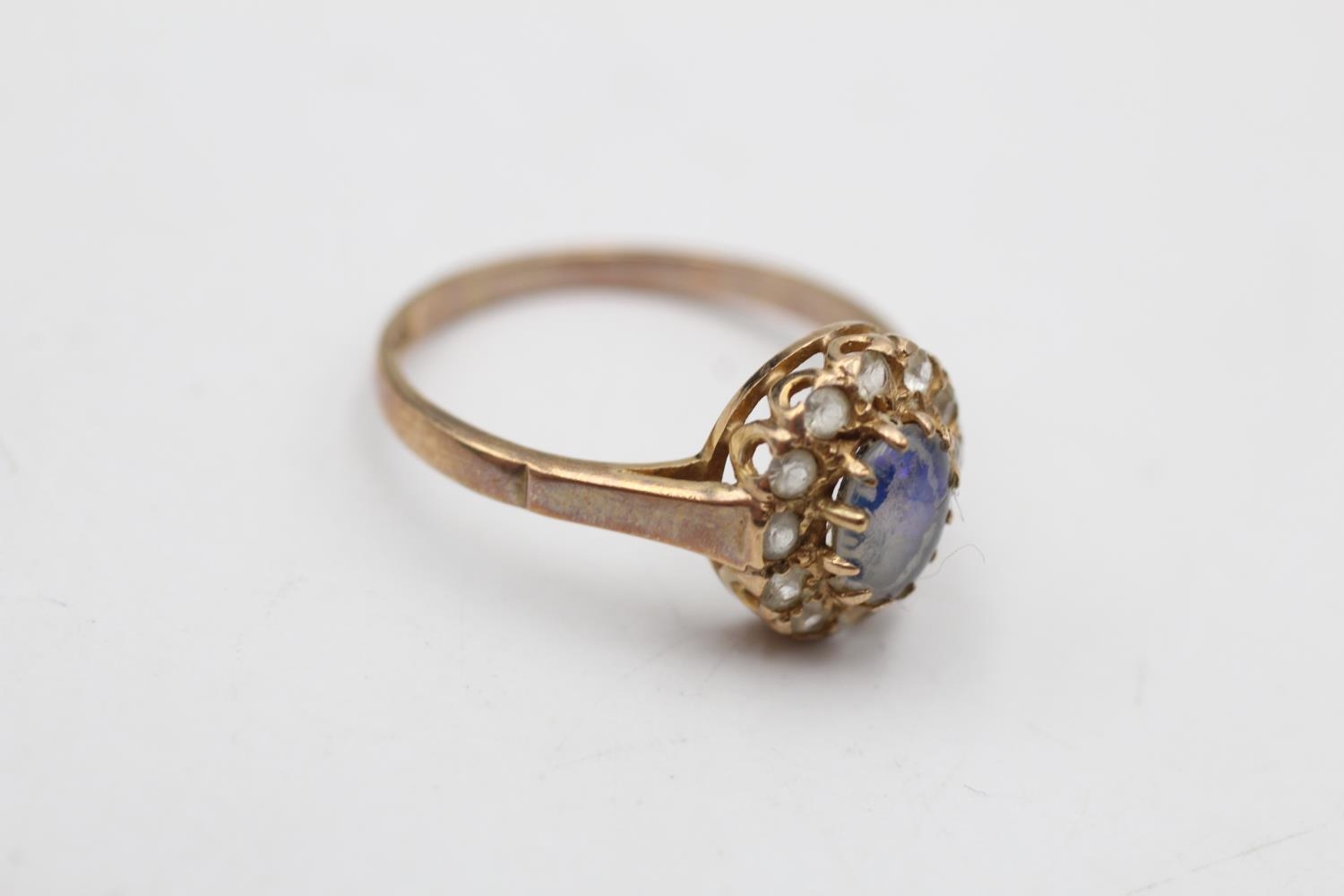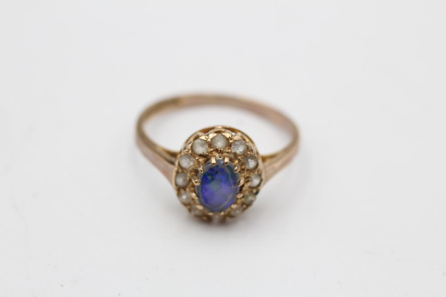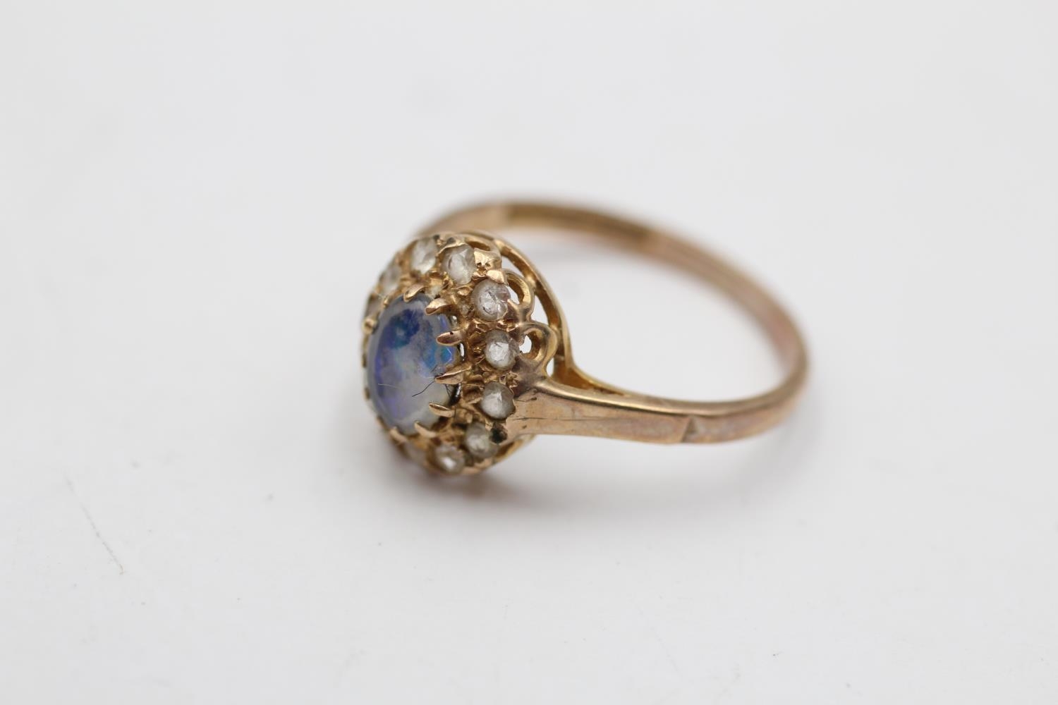 9ct gold vintage ammolite triplet & paste halo cathedral setting dress ring (2.4g) Size P