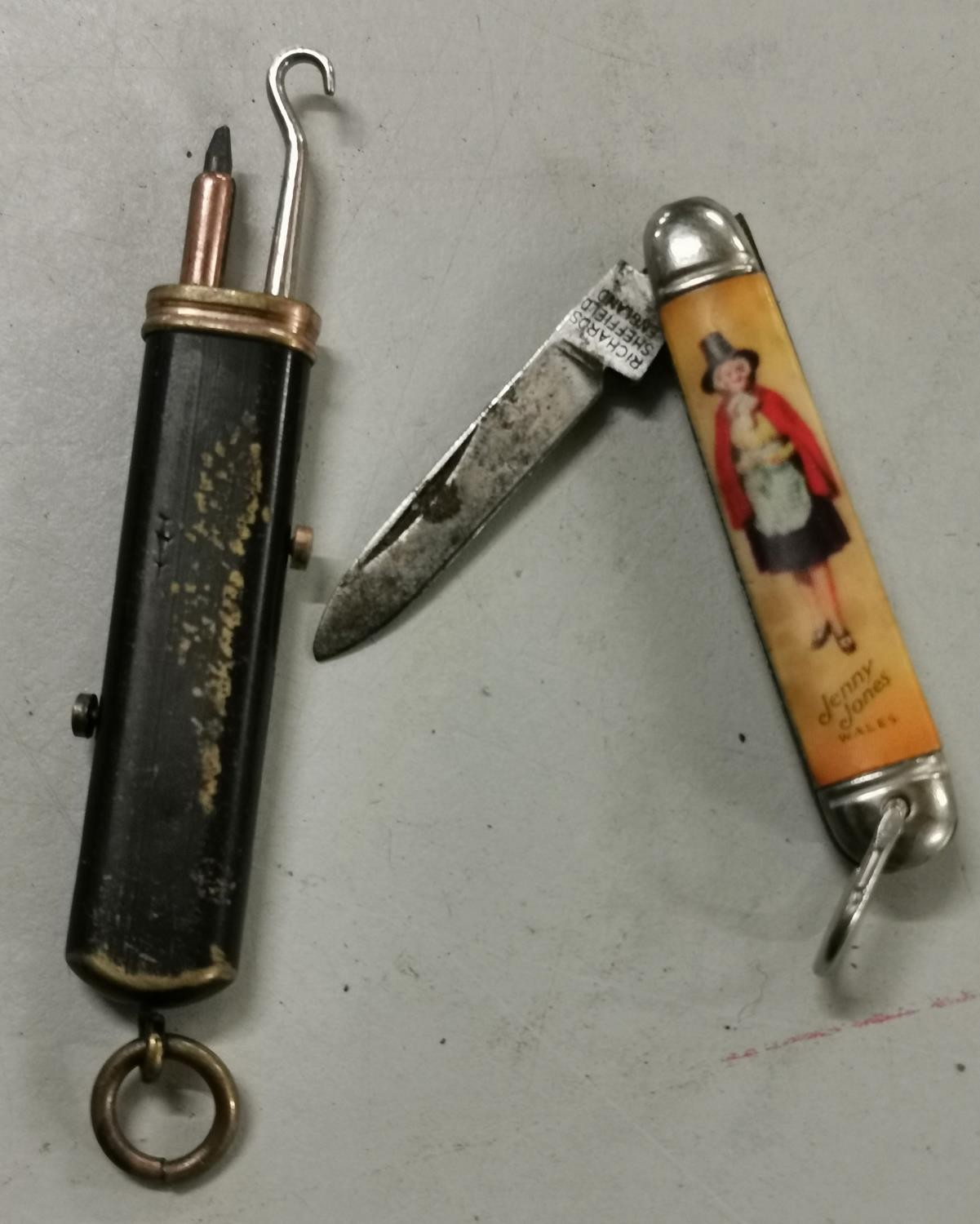 Vintage ladies purse push up pencil/button hook & Jenny Jones Wales ladies purse penknife