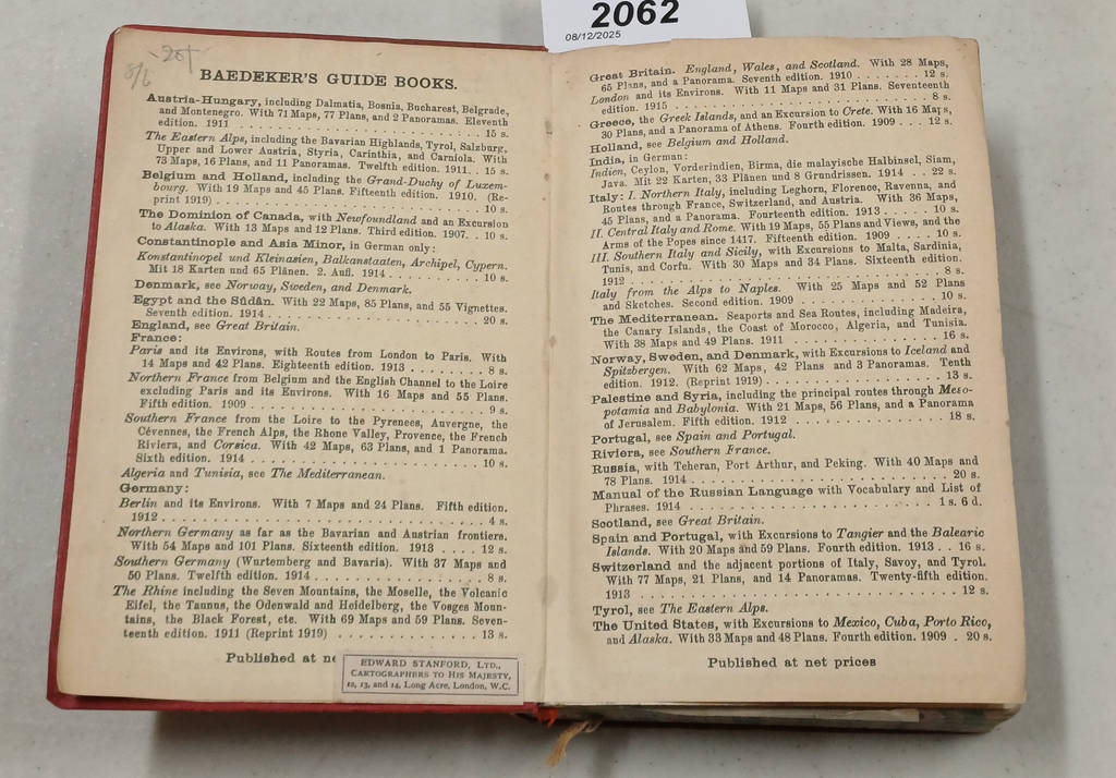 Original 1914 publication. All maps look to be present and in good condition. Occasional spotting, spine sunned, some wear to spine edge