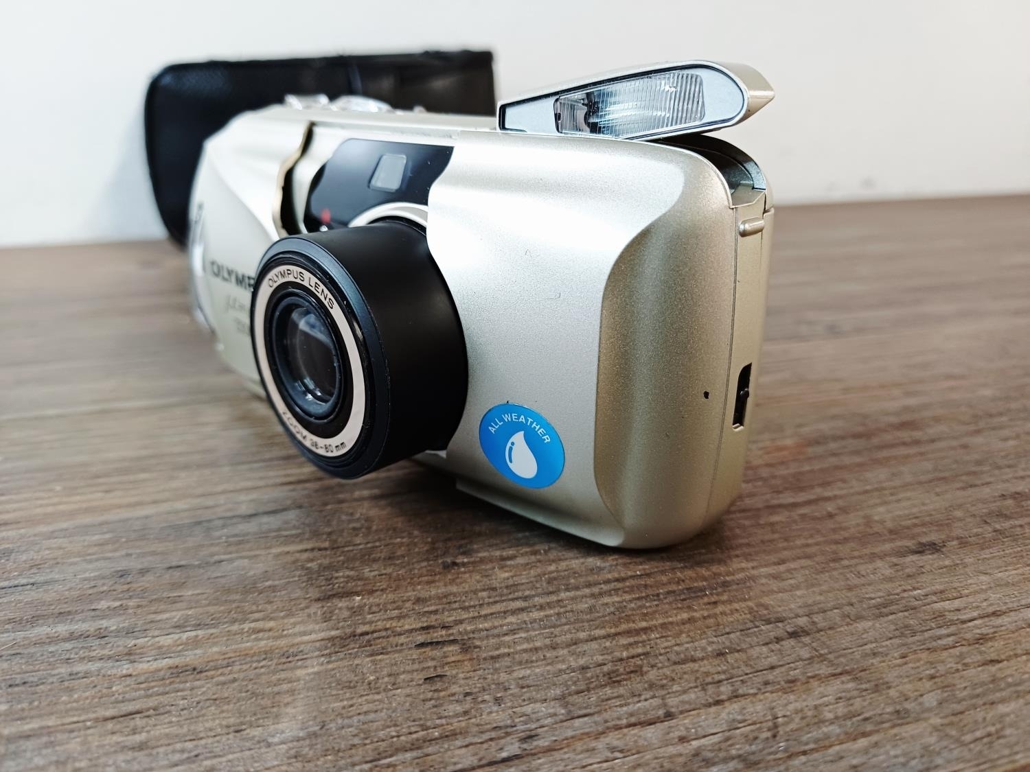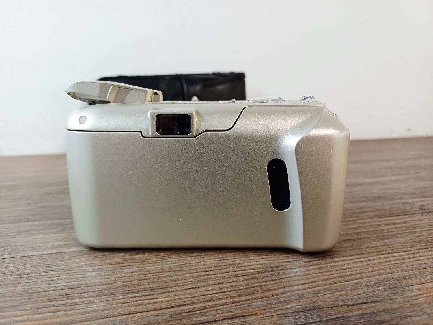 A cased silver Olympus µ[mju:]-II Zoom 80 all-weather compact 35mm camera with remote control