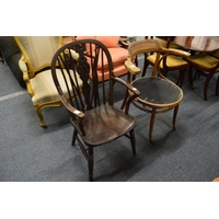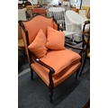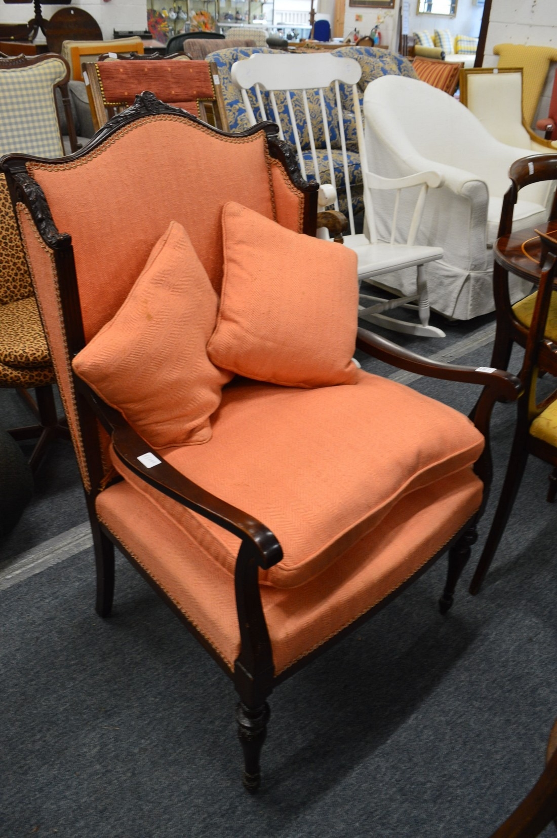 A mahogany framed open armchair with carved decoration.