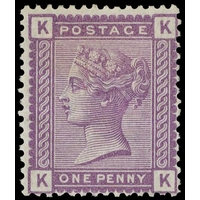 1880 1d Venetian red colour trial. Very fine example lettered TK, printed in mauve on Crown watermarked unguided white paper. Scarce. Ex Gilbert. SG166. Cat. £4500