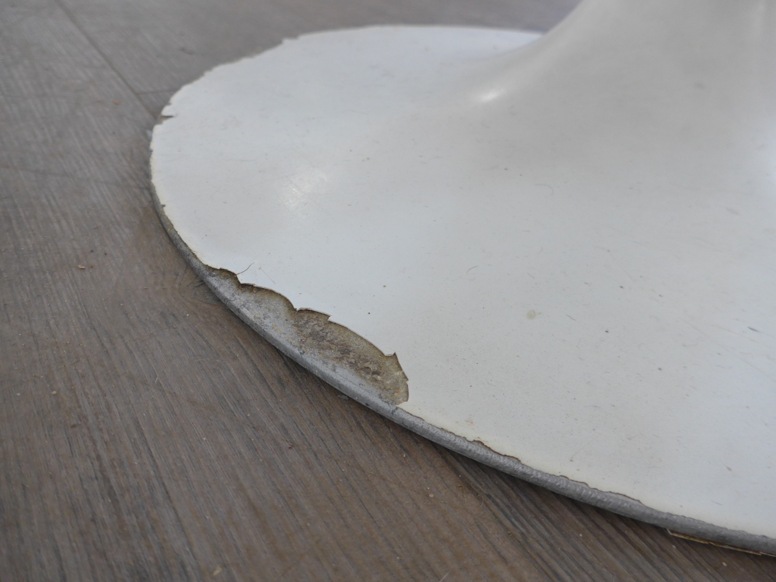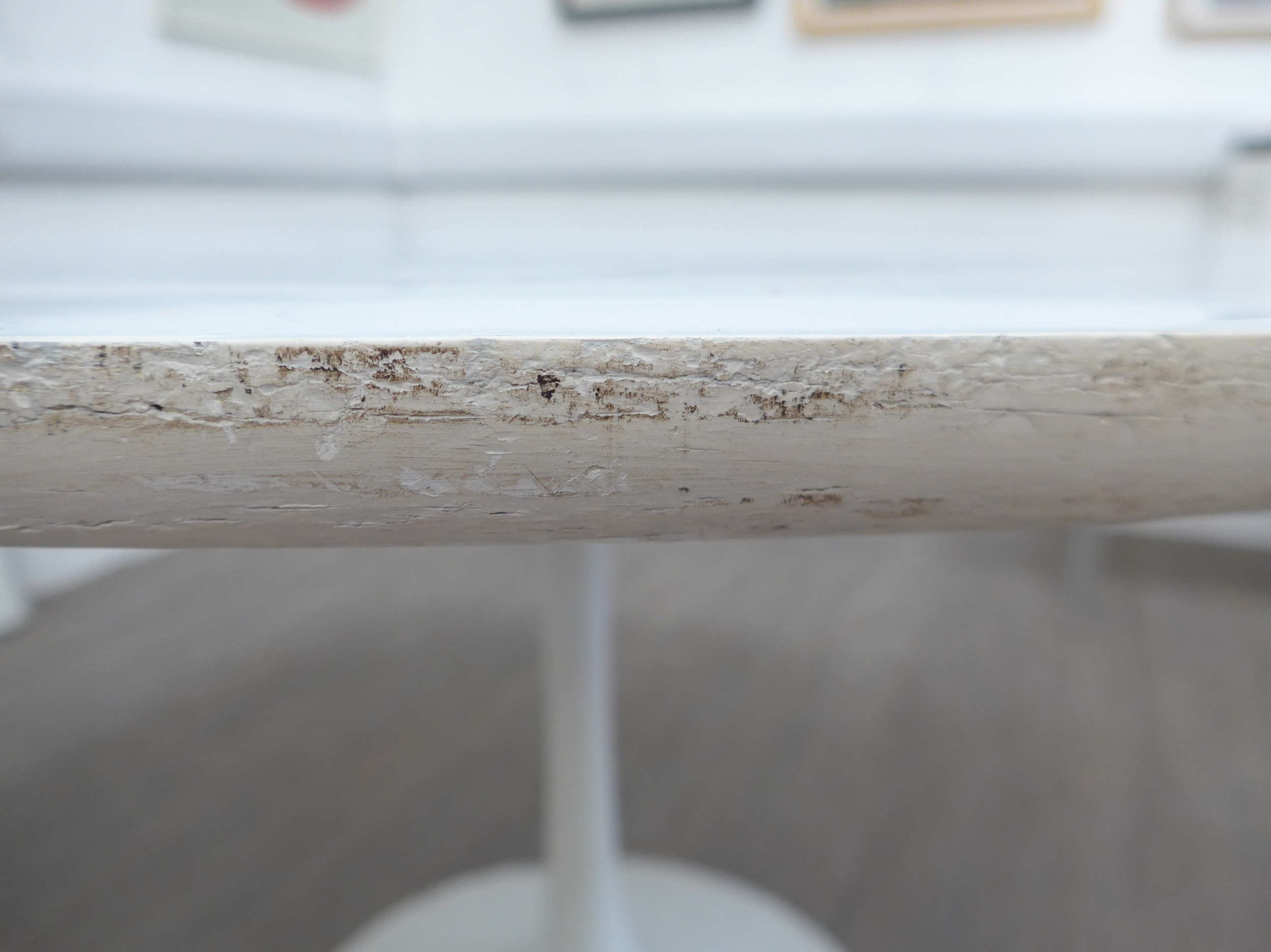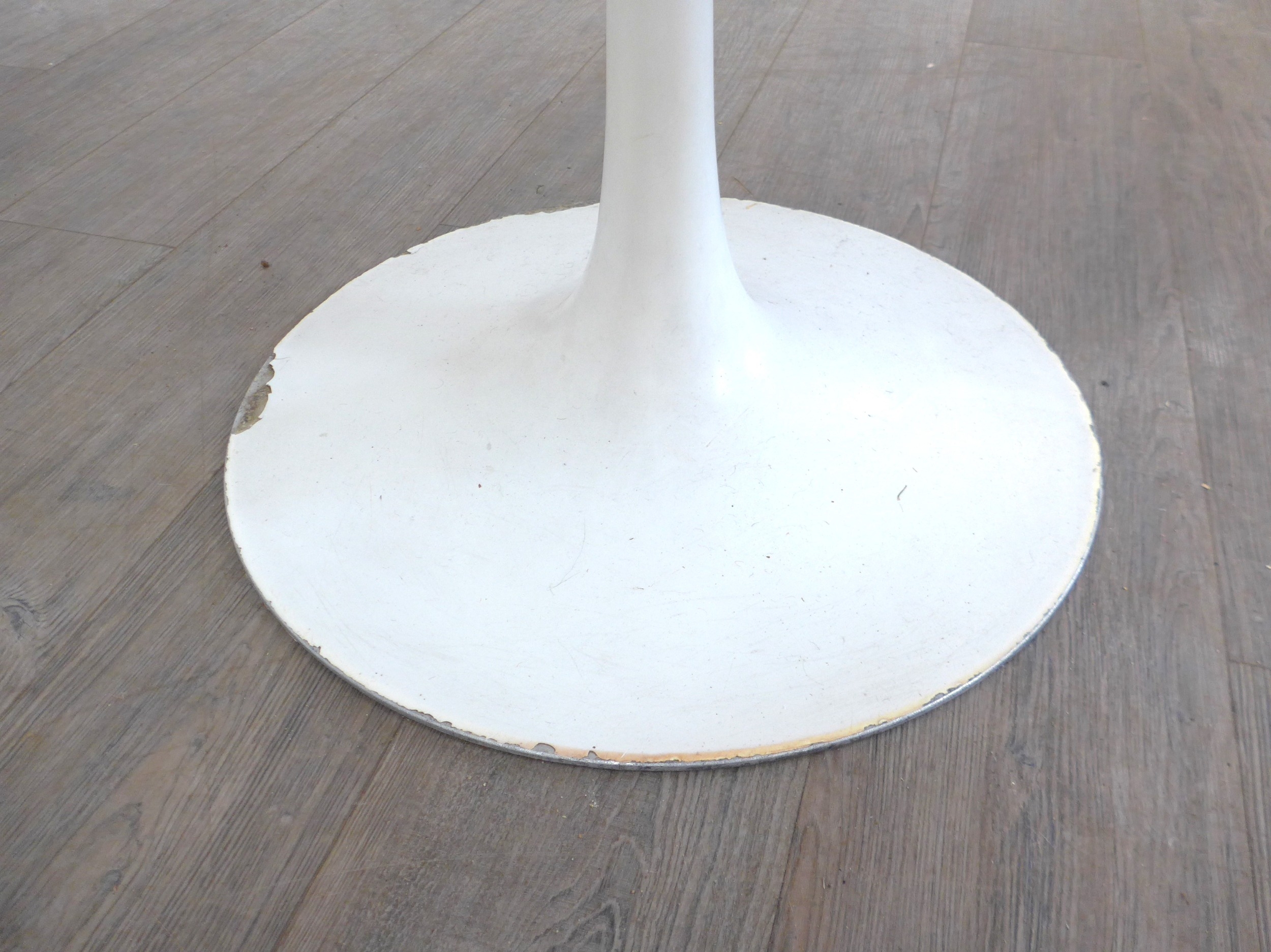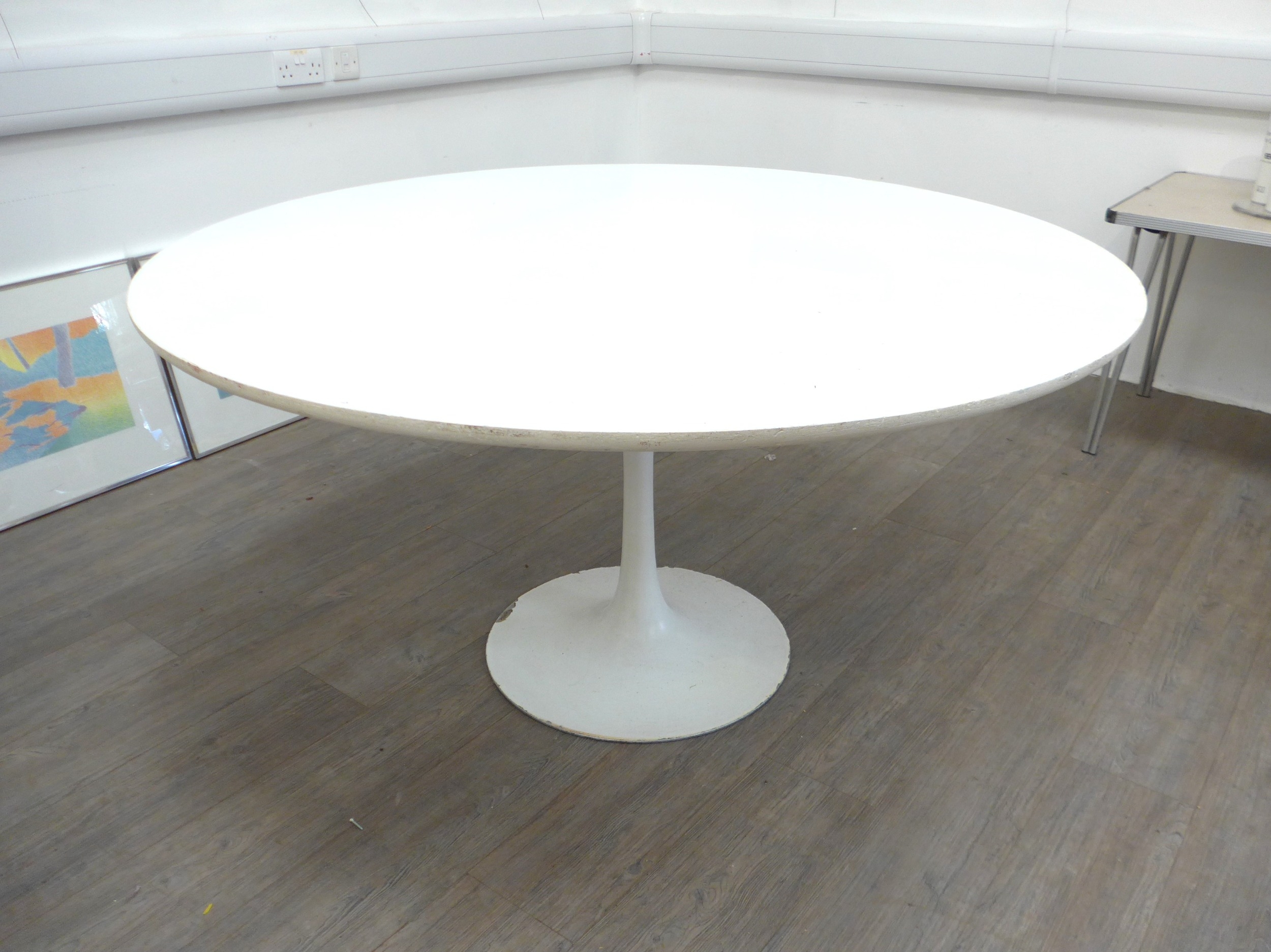 An Arkana circular dining table in white on a tulip base. Seats ten, 151cm diameter x 74.5cm high (no screws)