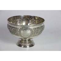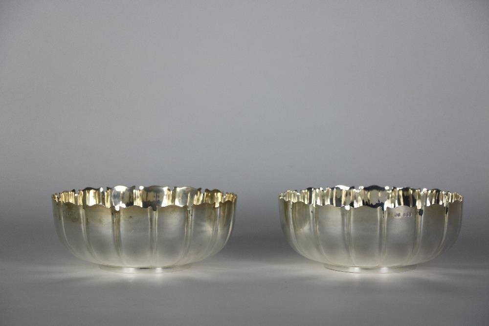 A pair of large plain Irish silver Bowls, 20 cms (8") diameter, with serrated edges and reeded bodies, by Wm. Egan, c. 1960, approx. 30 ozs. (2)