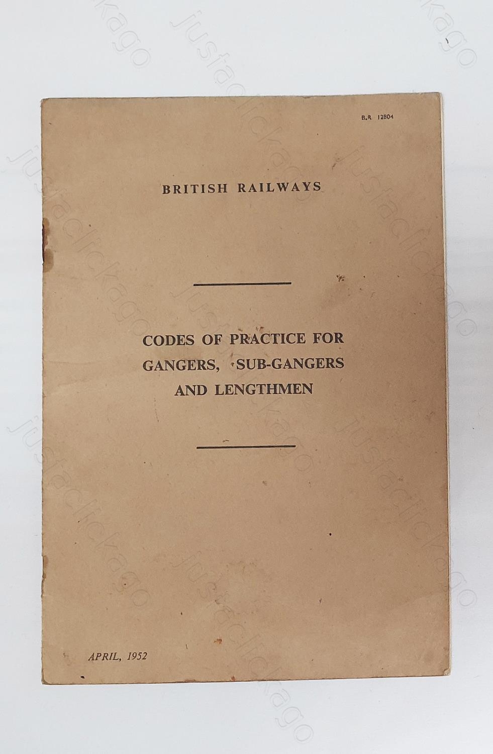 Railway. A B.R. booklet, "Codes of Practice for Gangers, Sub-Gangers and Lengthmen". 17 pages. 1952. Rusting to staples.
