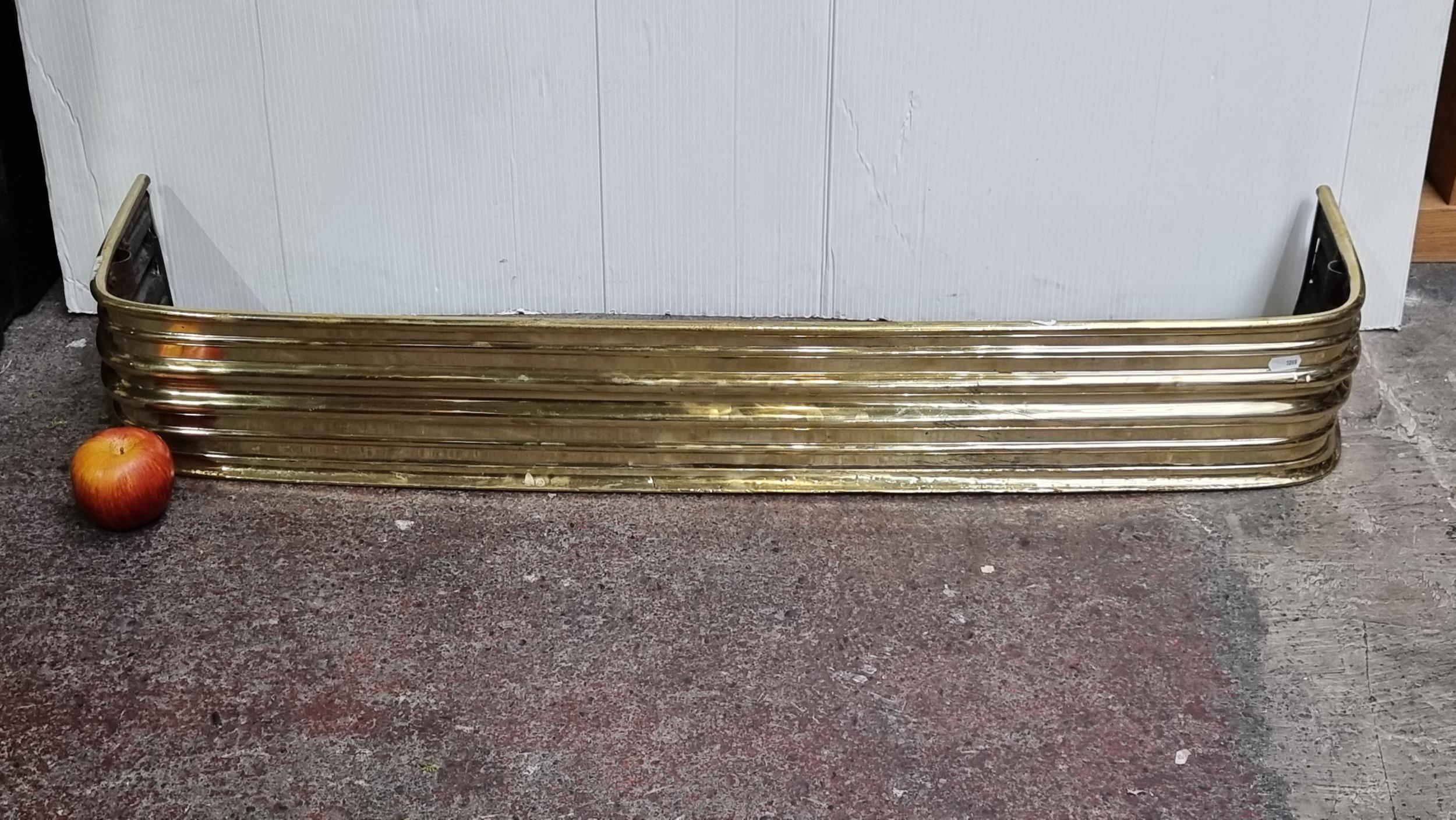 A large polished brass fire fender with moulded ribs. Measurements: 16cm x 104cm 23cm.