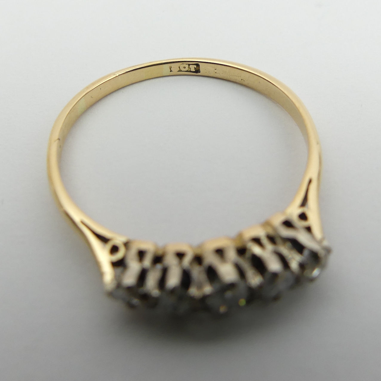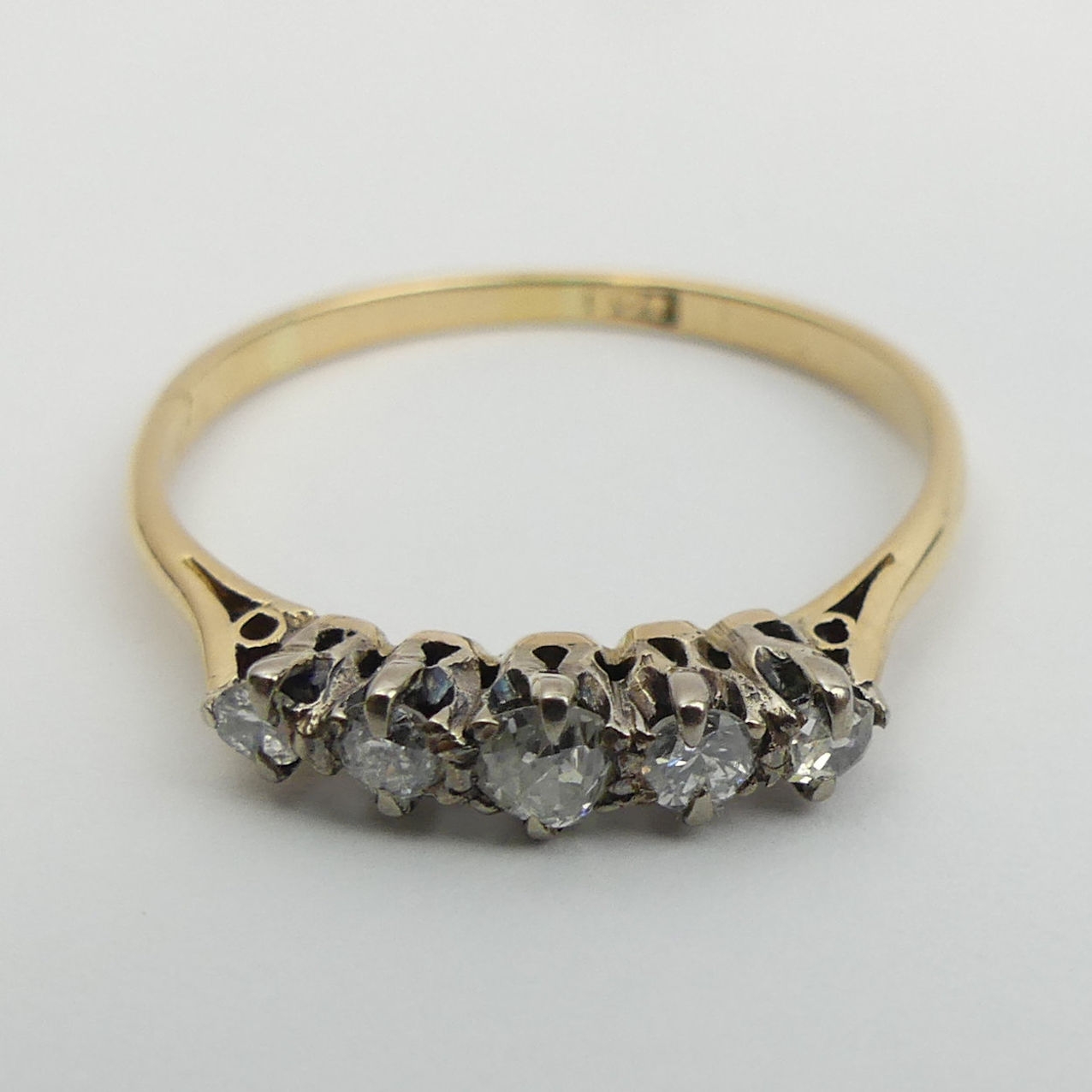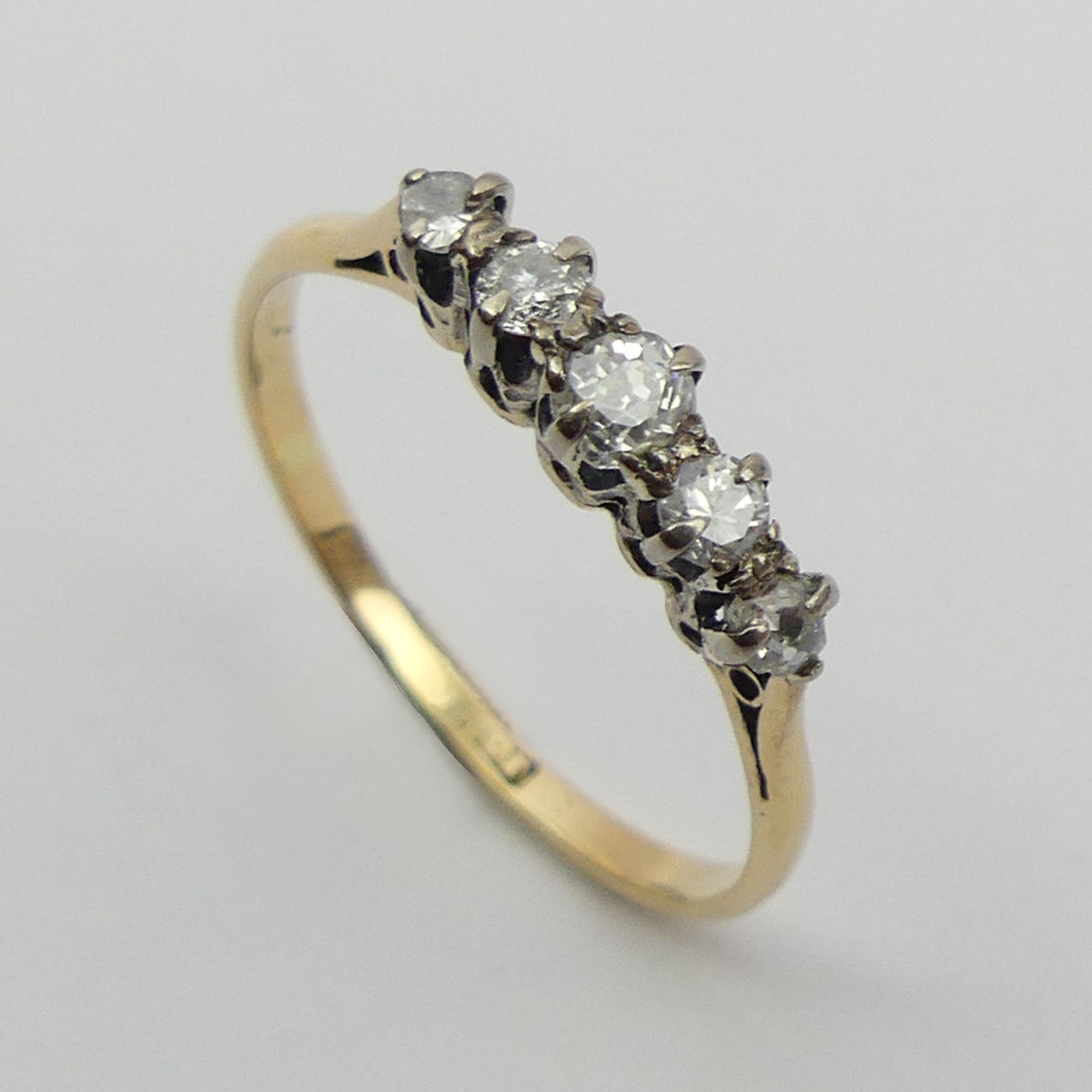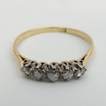 18ct gold, five stone diamond ring, 2.2 grams, Size U4mm wide. UK Postage £12.