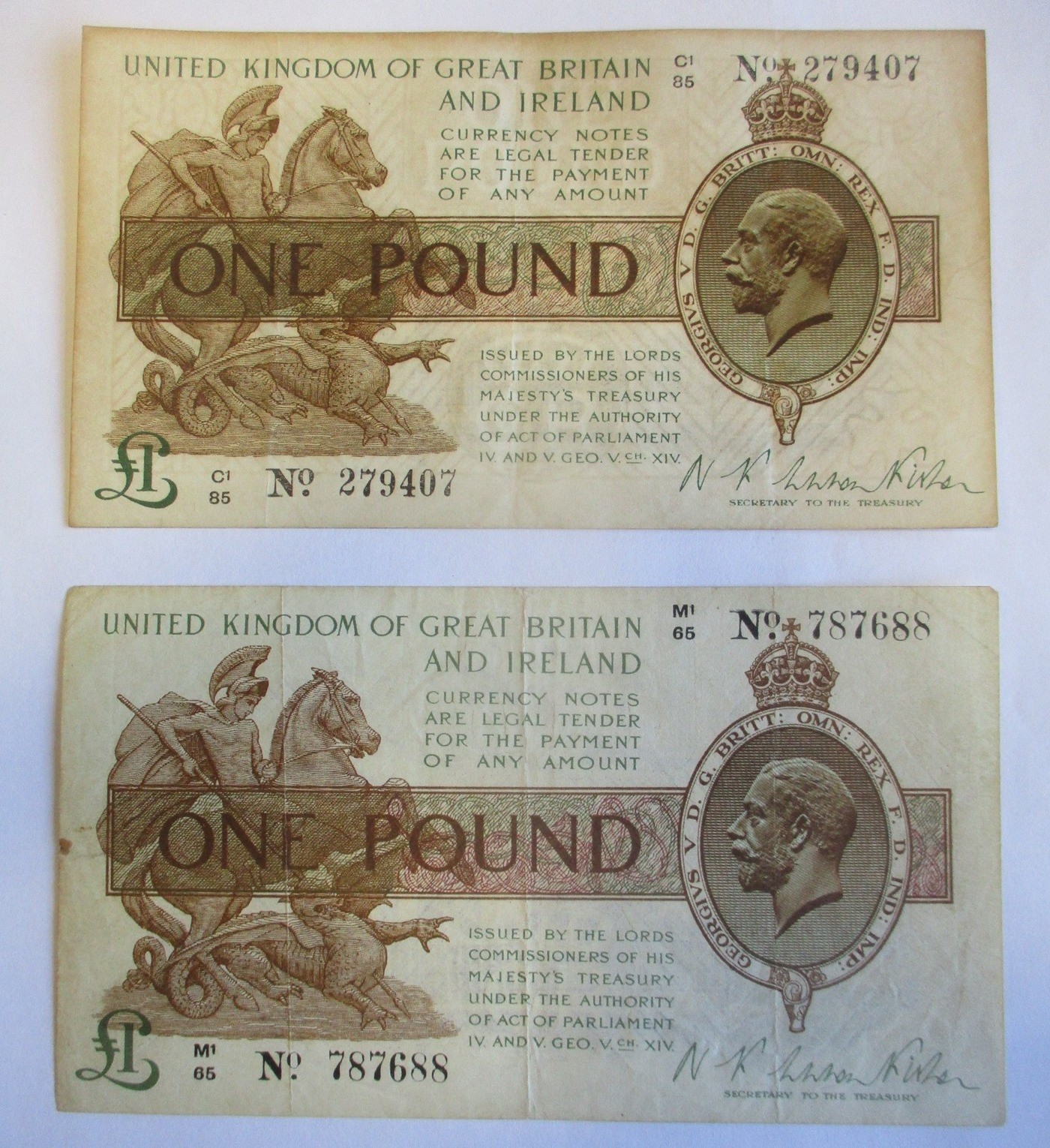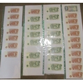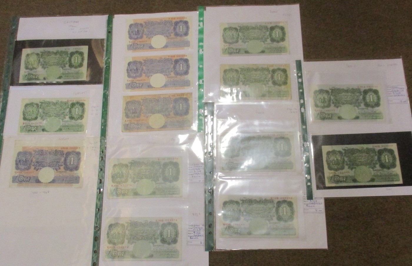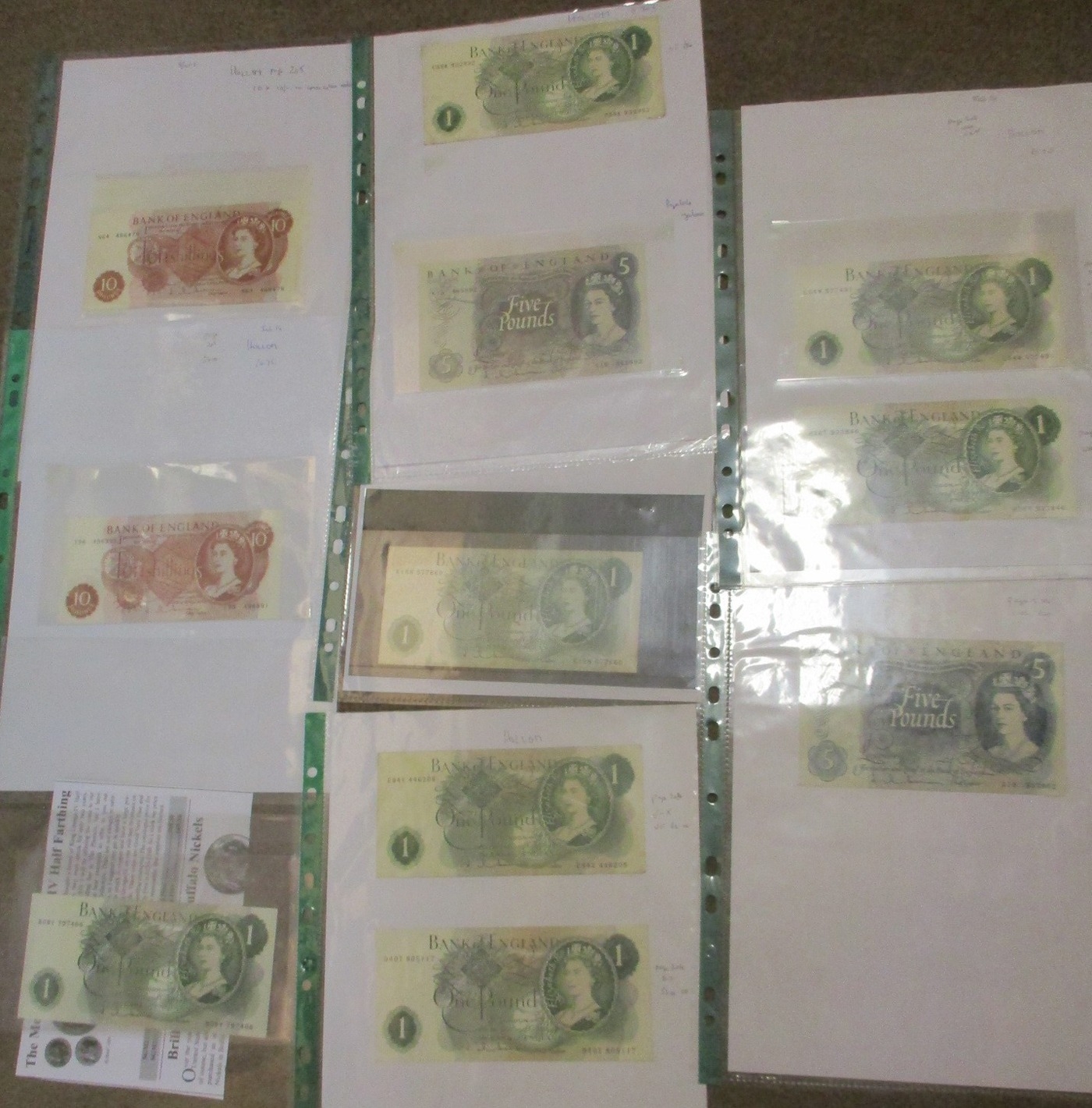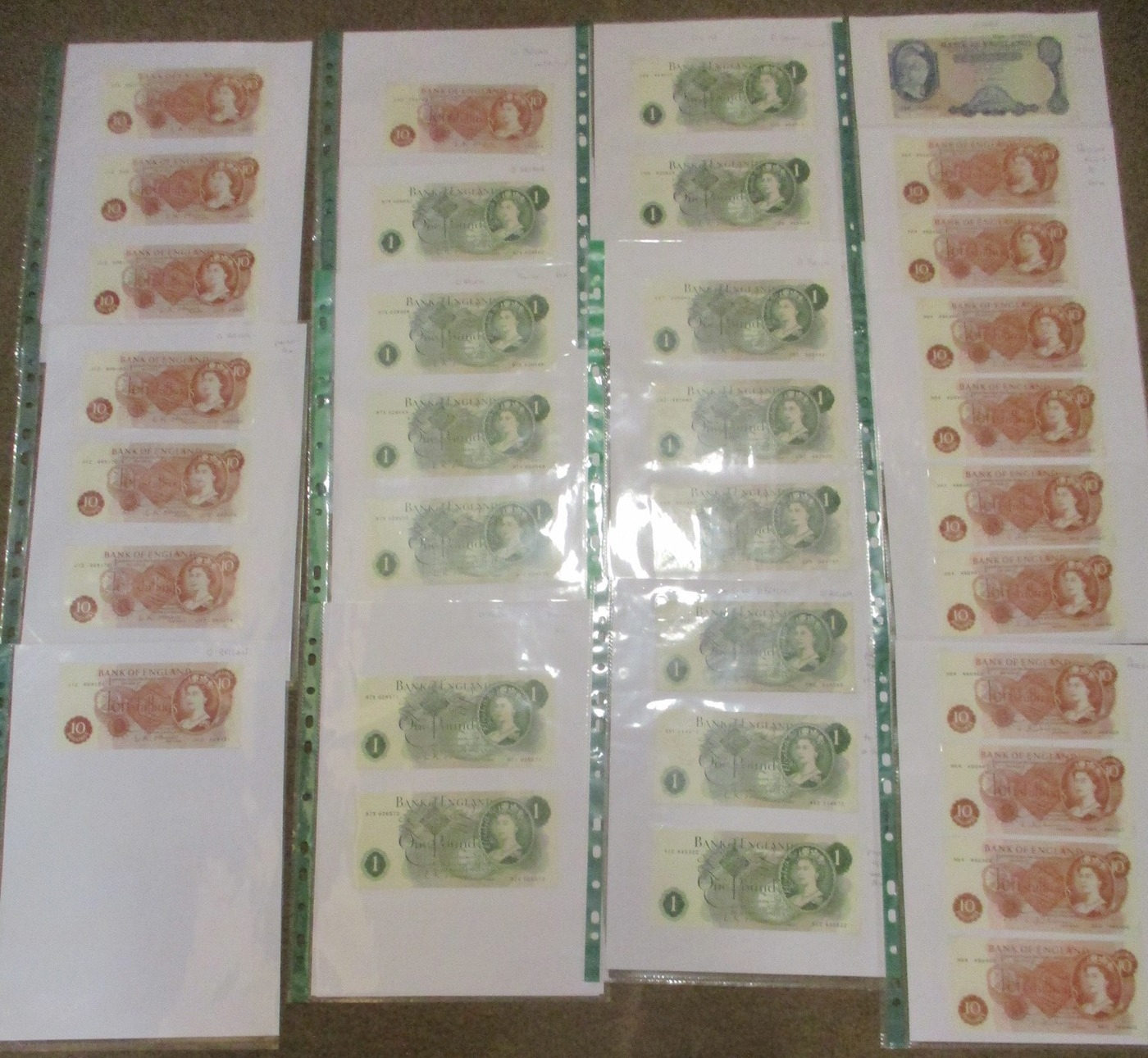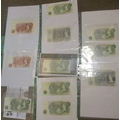 Catterns to Hollom range in plastic leaves, generally near very fine to extremely fine, includes £5 H39 818979 first series, A79 333902, K15 465992, £1 H77 749400 first series, 97X 028567-572, B09Y 797406 last series, 10/- J12 669175-181, N64 466459-478, etc, plus pair of N.F. Warren-Fisher £1 treasury issues, with C1/85 No.279407 near extremely fine and M1/65 No.787688 very fine. Qty 70 (R)