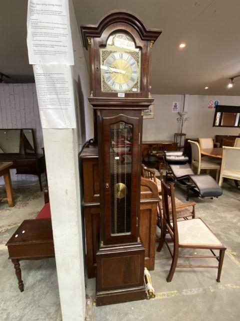 Mahogany cased Tempus Fugit Grandfather clock with weights & pendulum in good working order (184H 40W 24D cm)