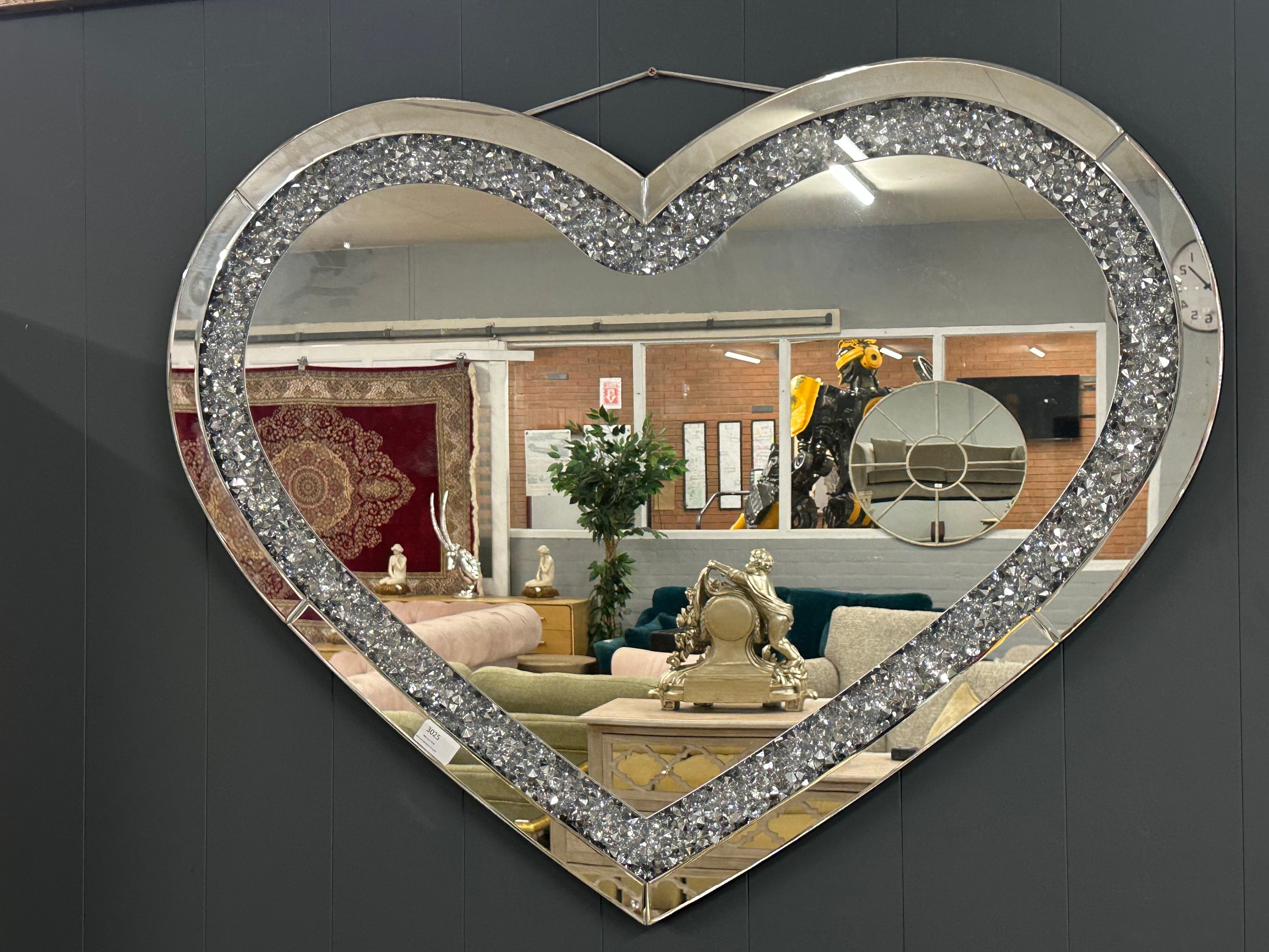 A crushed diamond effect heart wall mirror