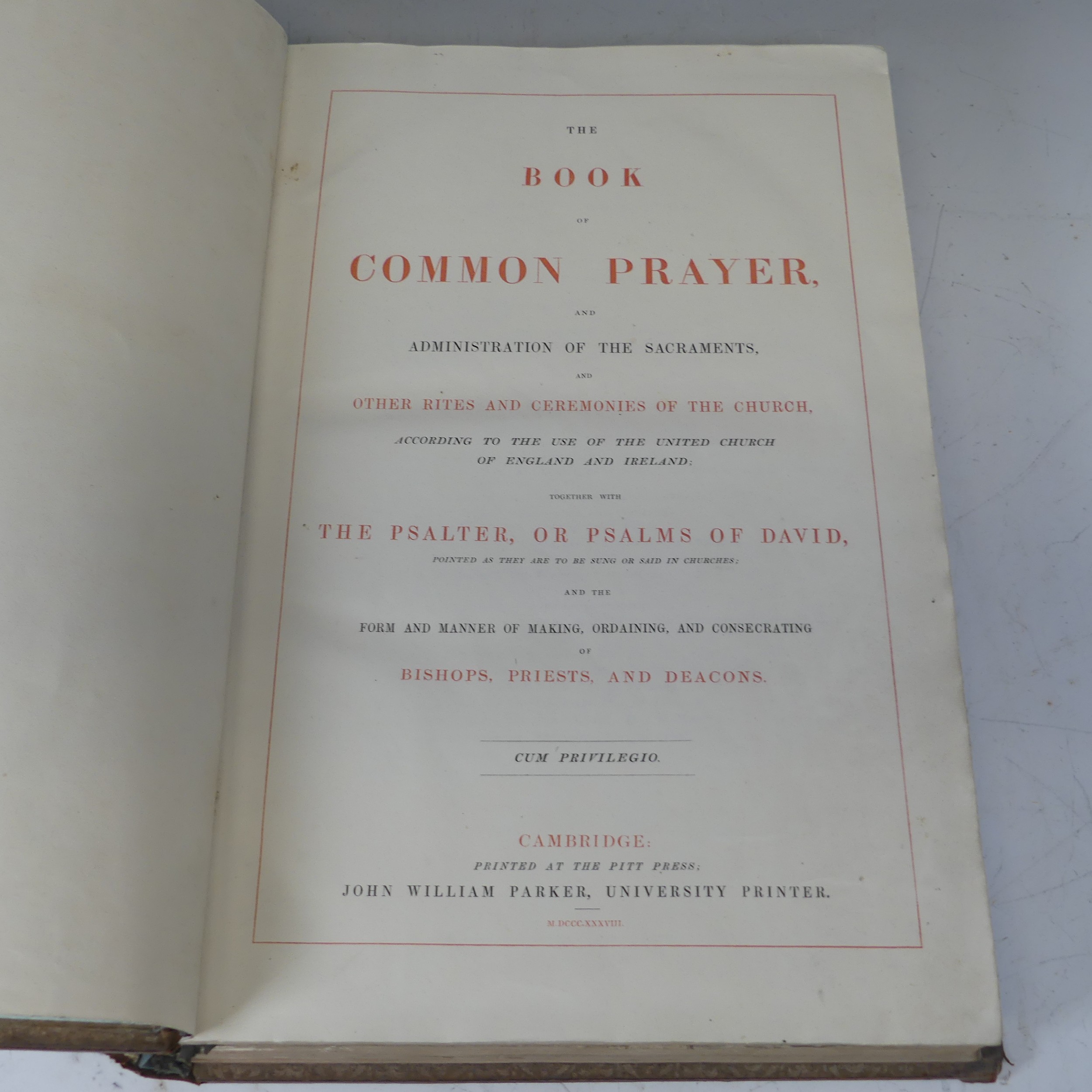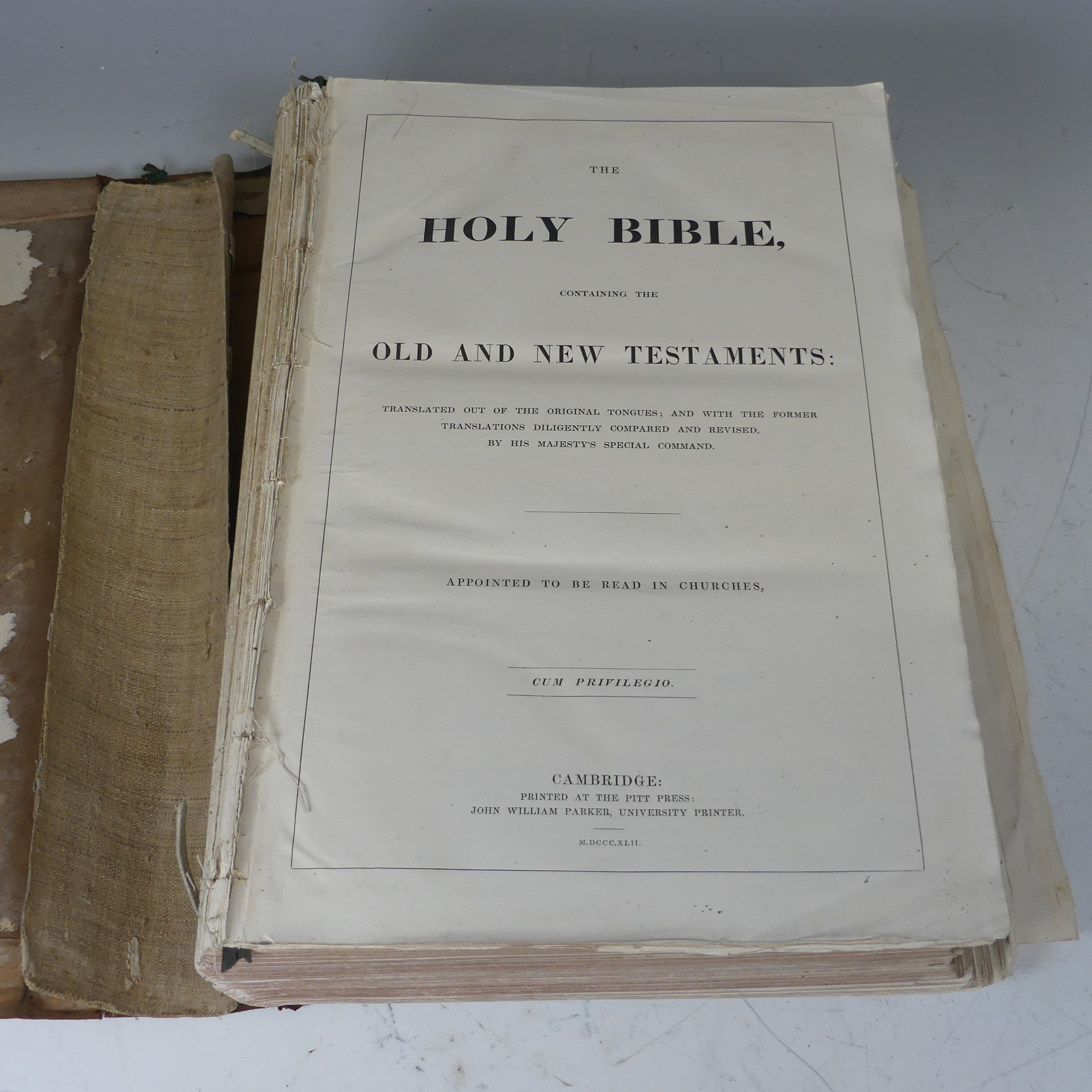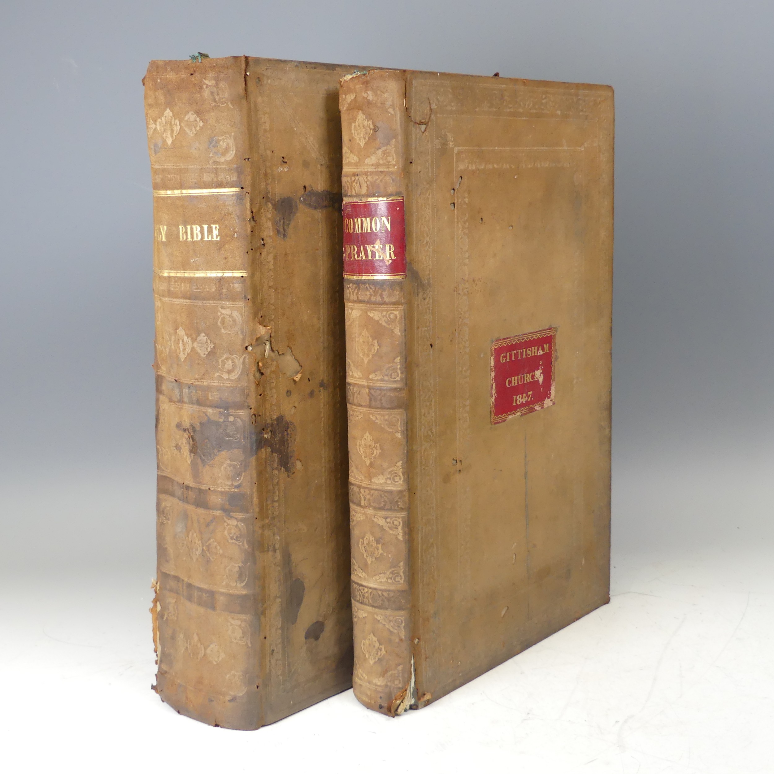 The Holy Bible, published by The Pitt Press, University of Cambridge, 1842, pulpit edition, together with 'The Book of Common Prayer', Pitt Press, 1838, both bearing paste down label to front board 'Gittisham Church 1847', as found. (2)