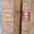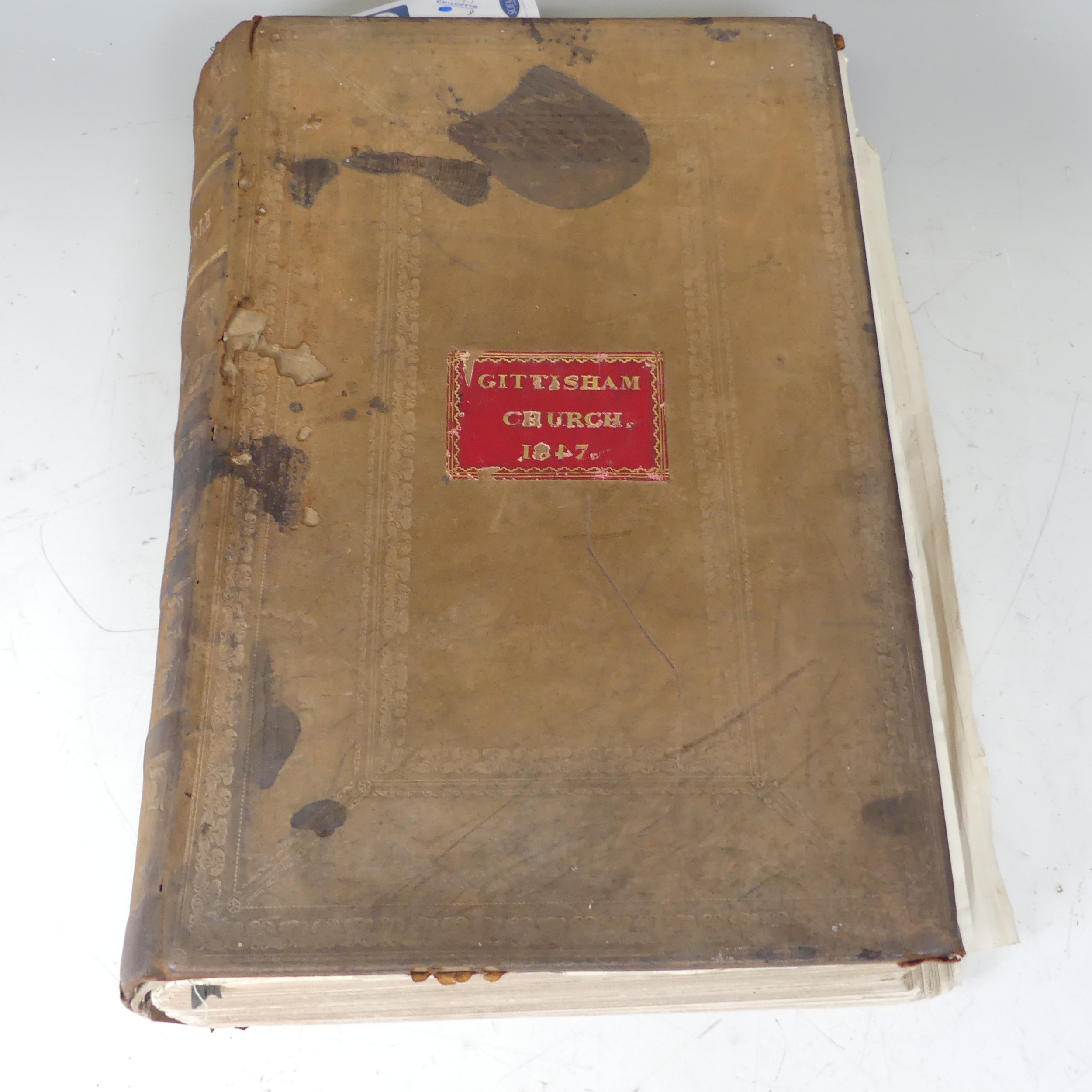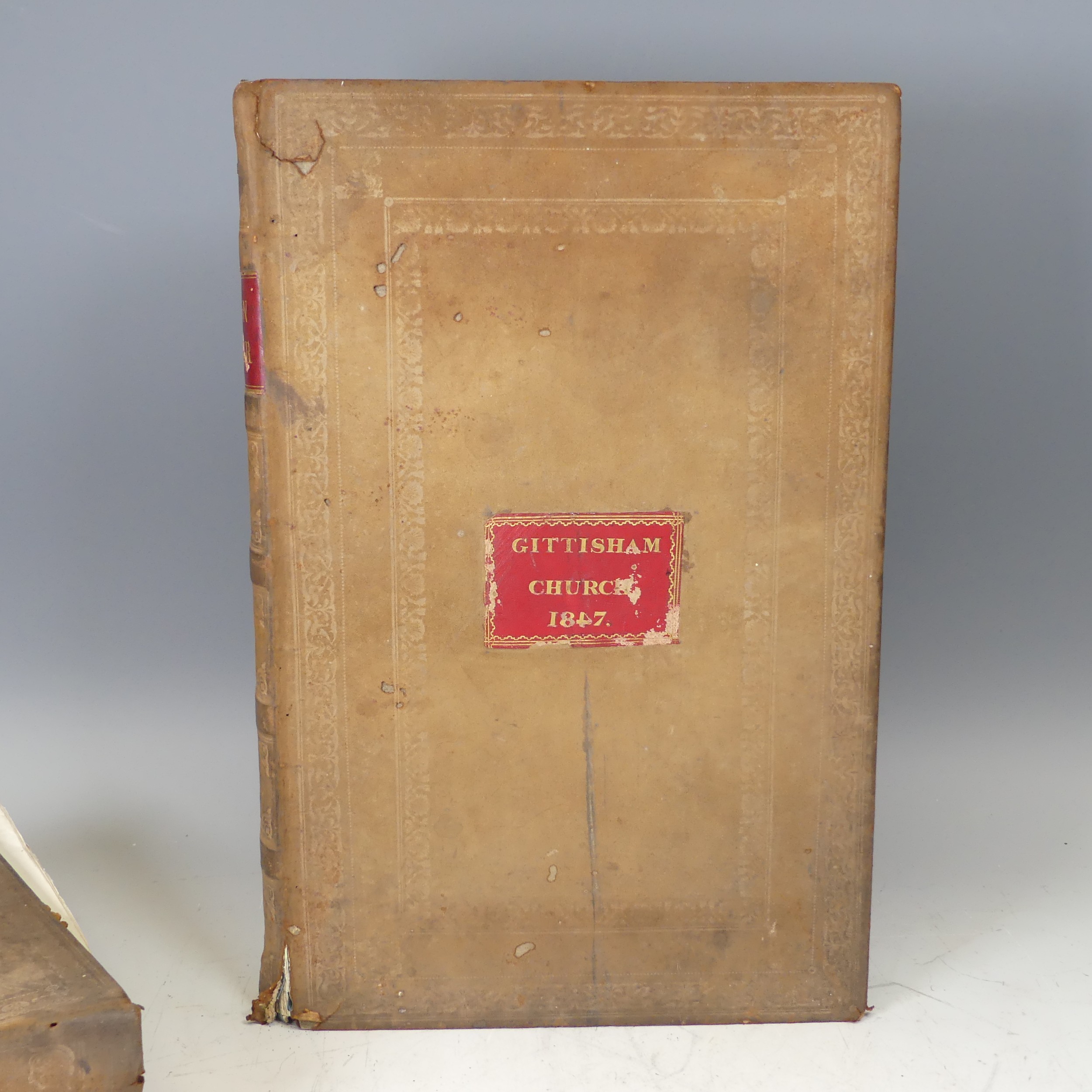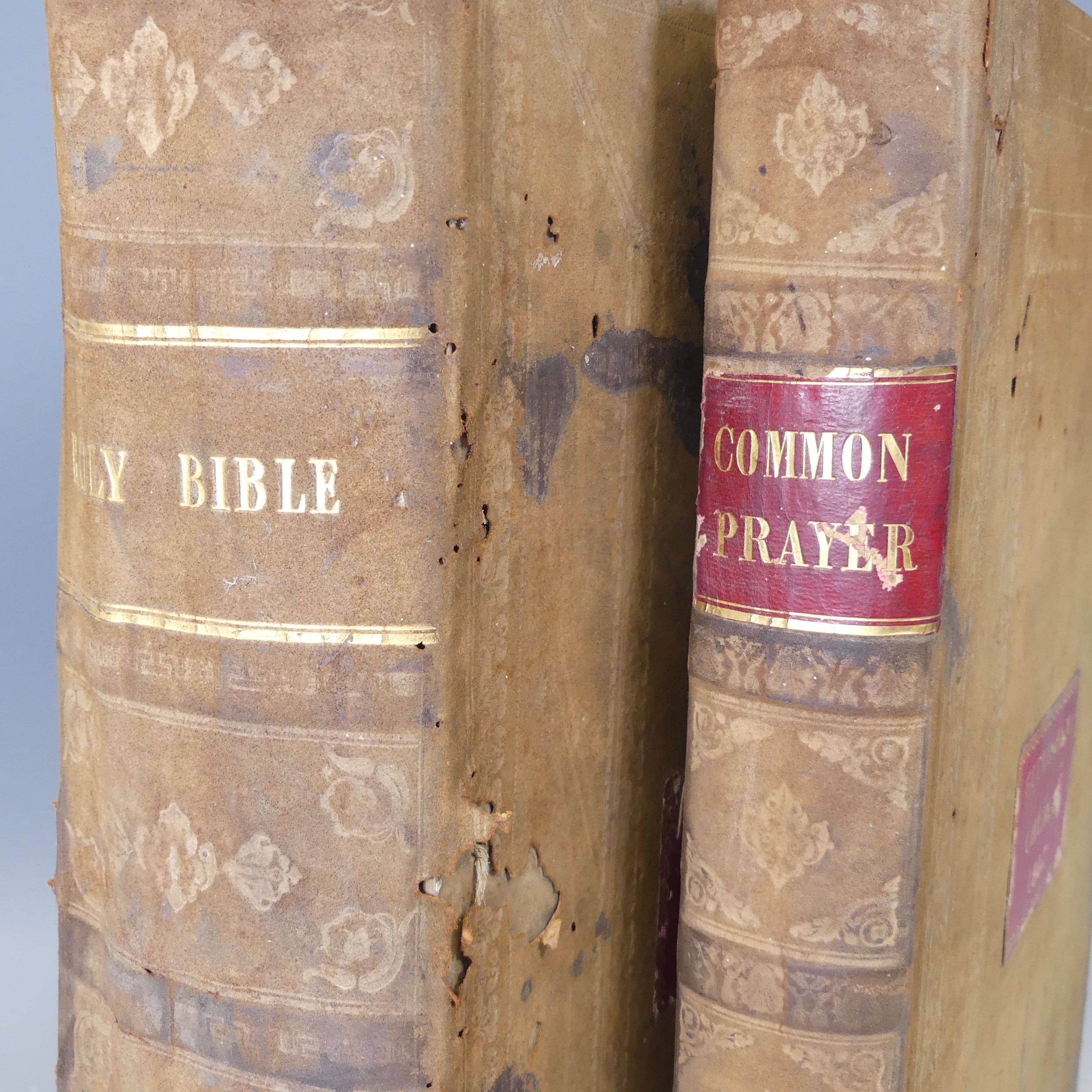 The Holy Bible, published by The Pitt Press, University of Cambridge, 1842, pulpit edition, together with 'The Book of Common Prayer', Pitt Press, 1838, both bearing paste down label to front board 'Gittisham Church 1847', as found. (2)