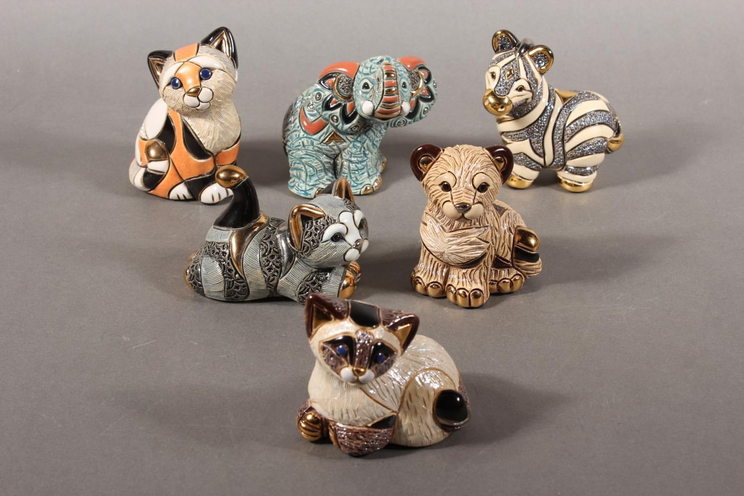 De Rosa Porcelain Sculptures of Uruguay, six animal models to include elephant, cats etc. each with original box. (6)