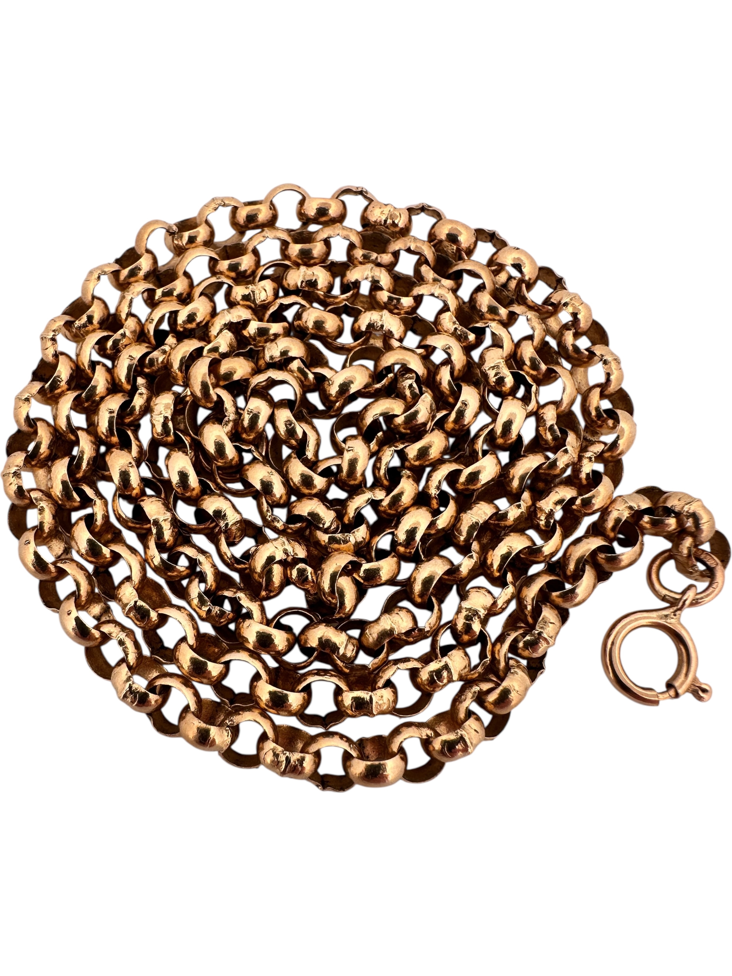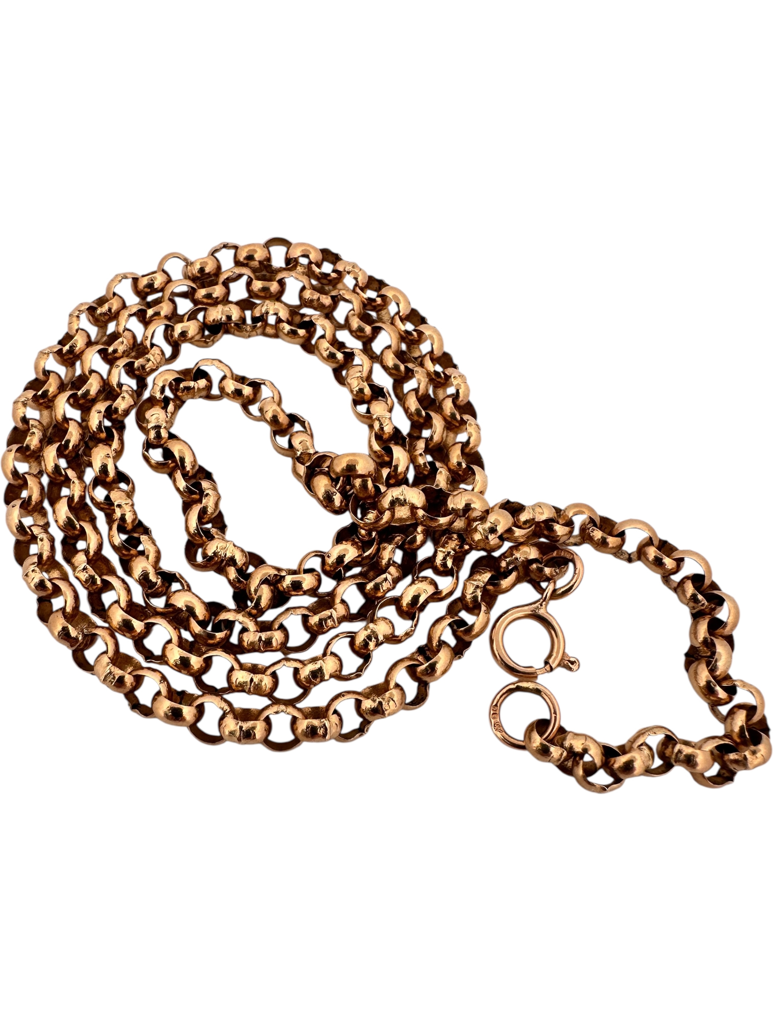 Nine Carat Gold Belcher Link Neck Chain, Hallmarked. 24" Long. 24.44g