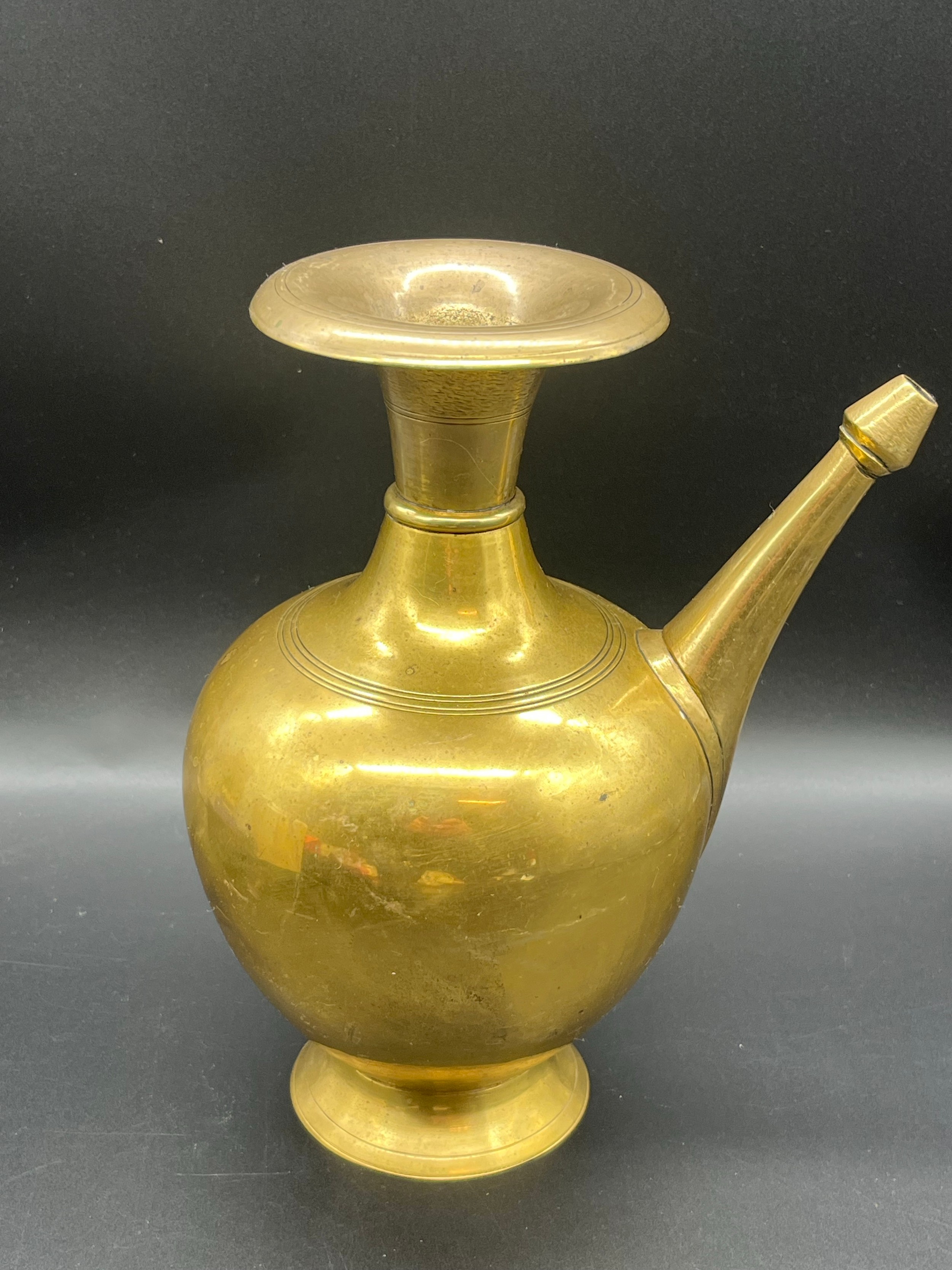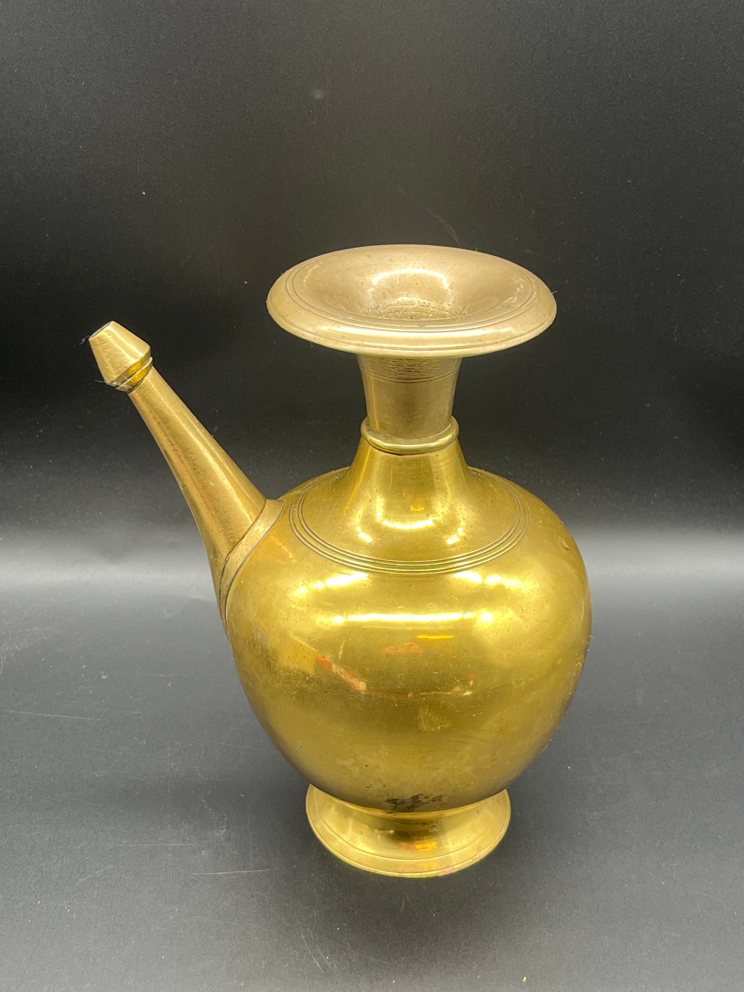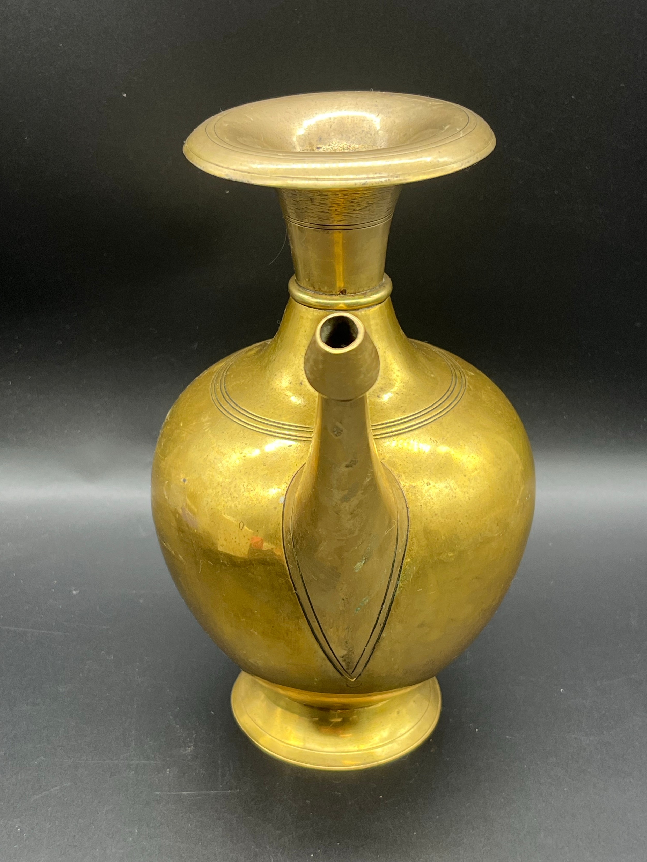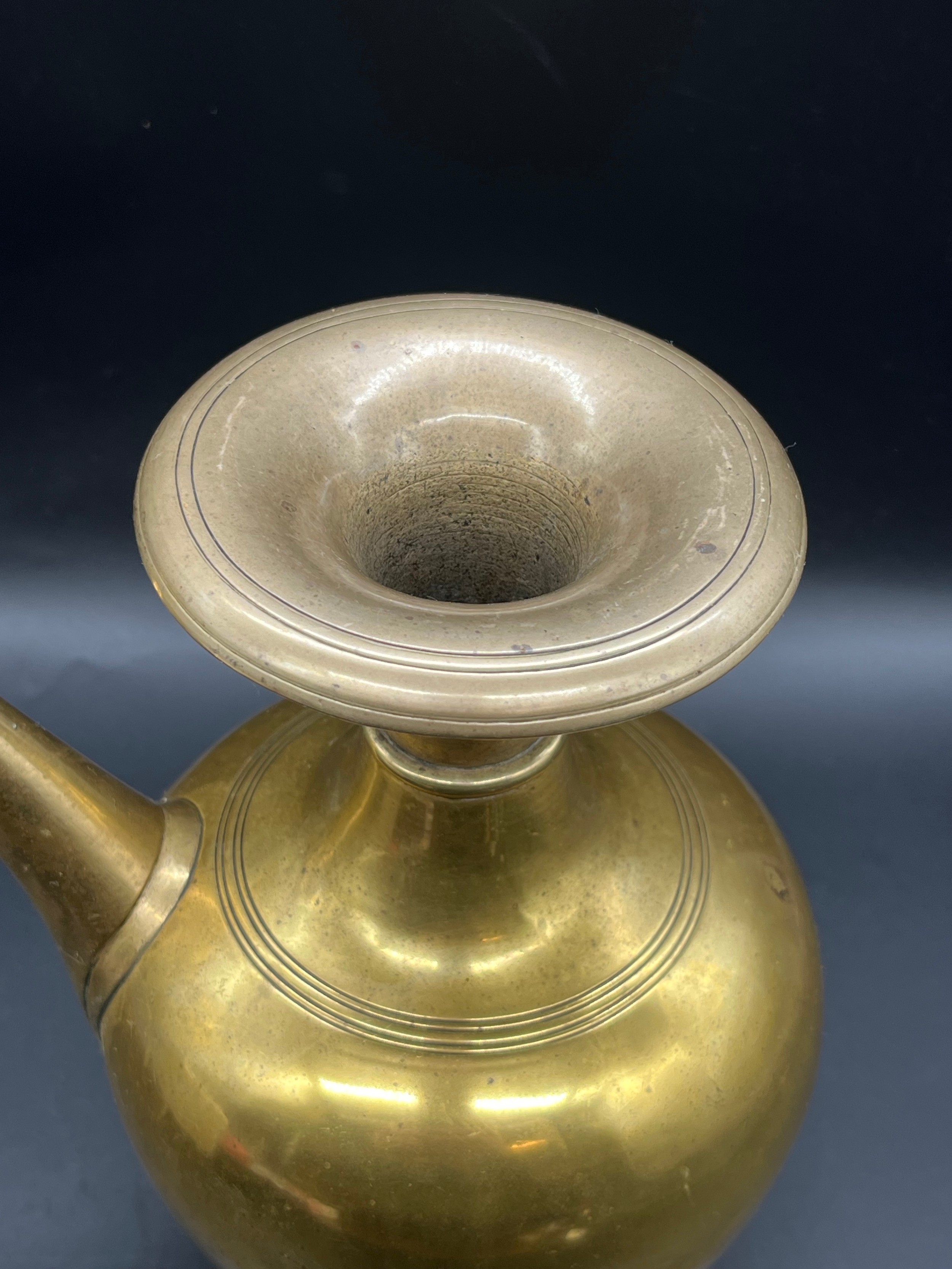 Antique brass Nepalese water vessel (Karuwa). 9.5" tall