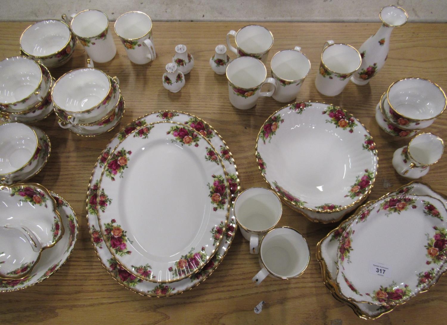 Collection of Royal Albert Old Country Roses tableware incl. soup and other bowls, coffee mugs, cruet, three rectangular dishes, three oval plates etc (36)