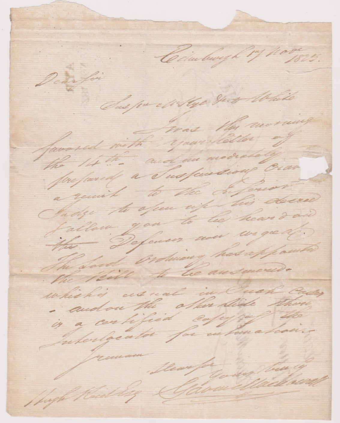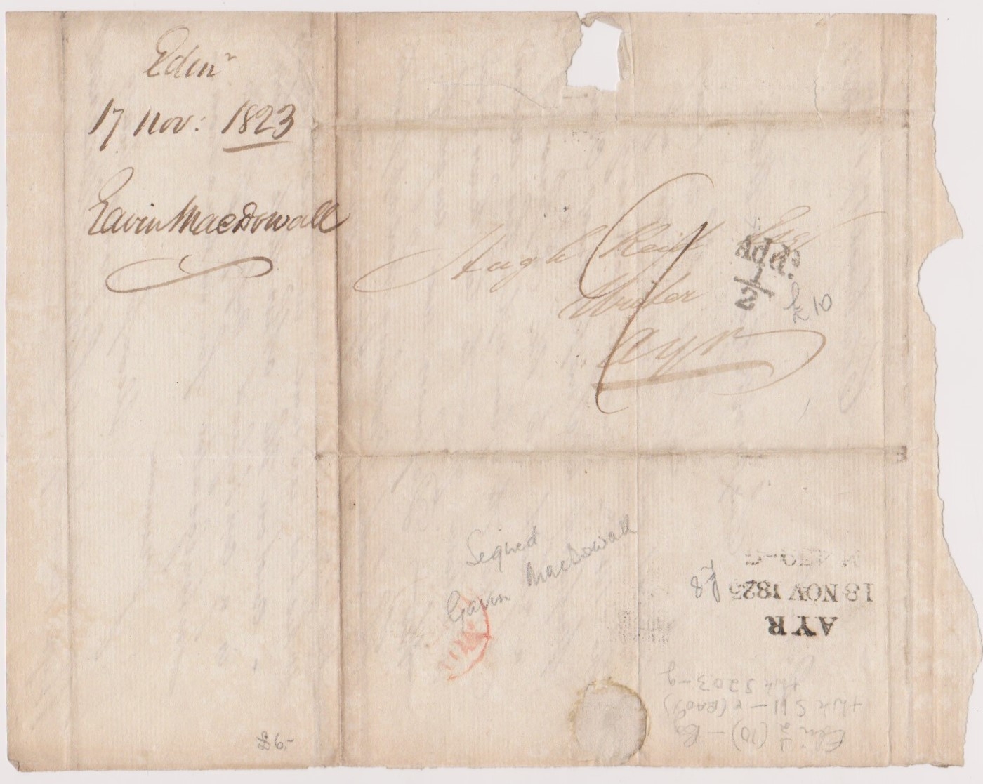 Great Britain 1823-Scotand EL dated 17th Nov 1823 Edinburgh posted to Ayr-manuscript 9 with black add/1/2 stamp-3 line black AYR/18Nov1823/M439-6 cancel-indistinct red single circle cancel