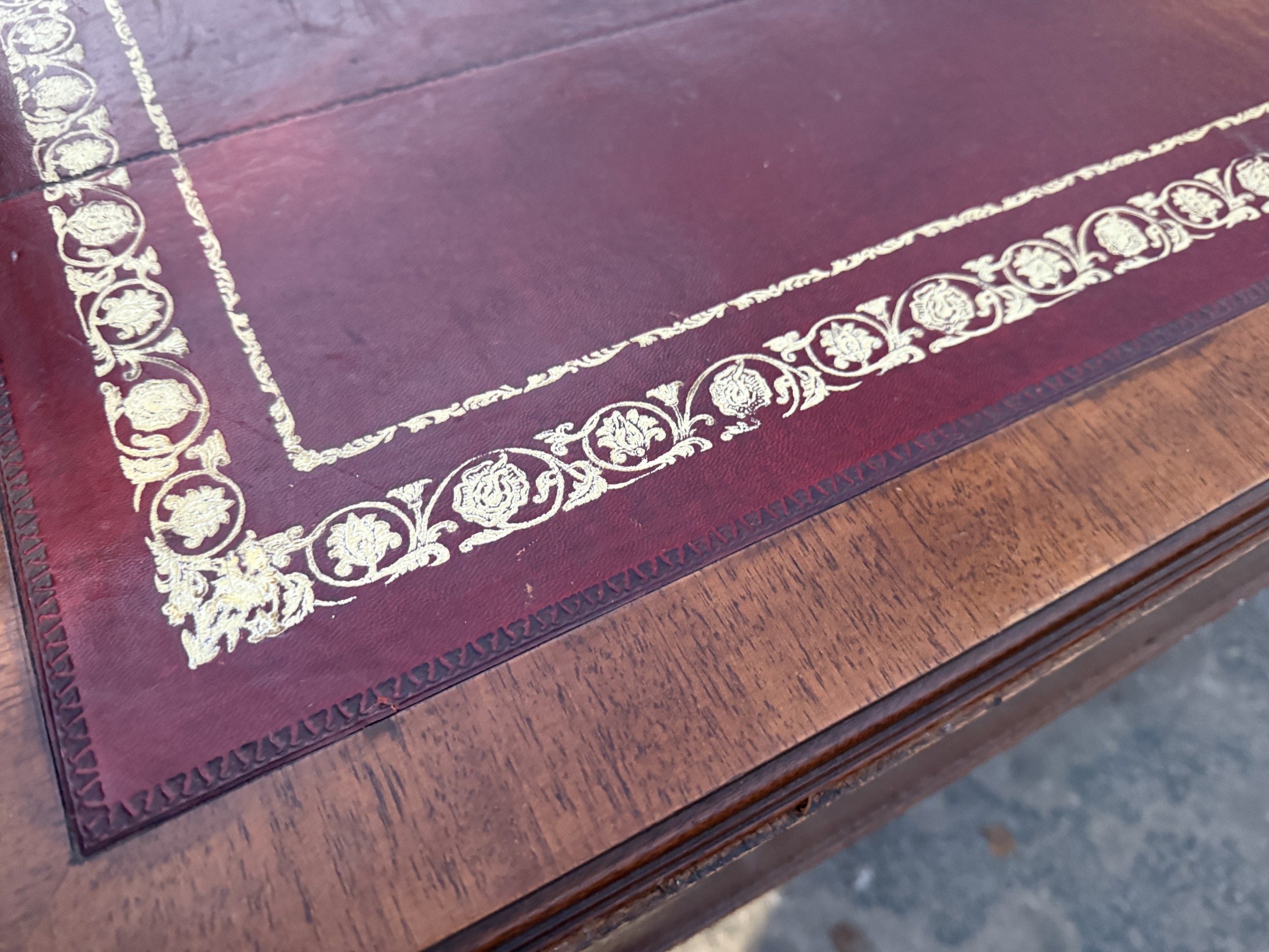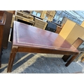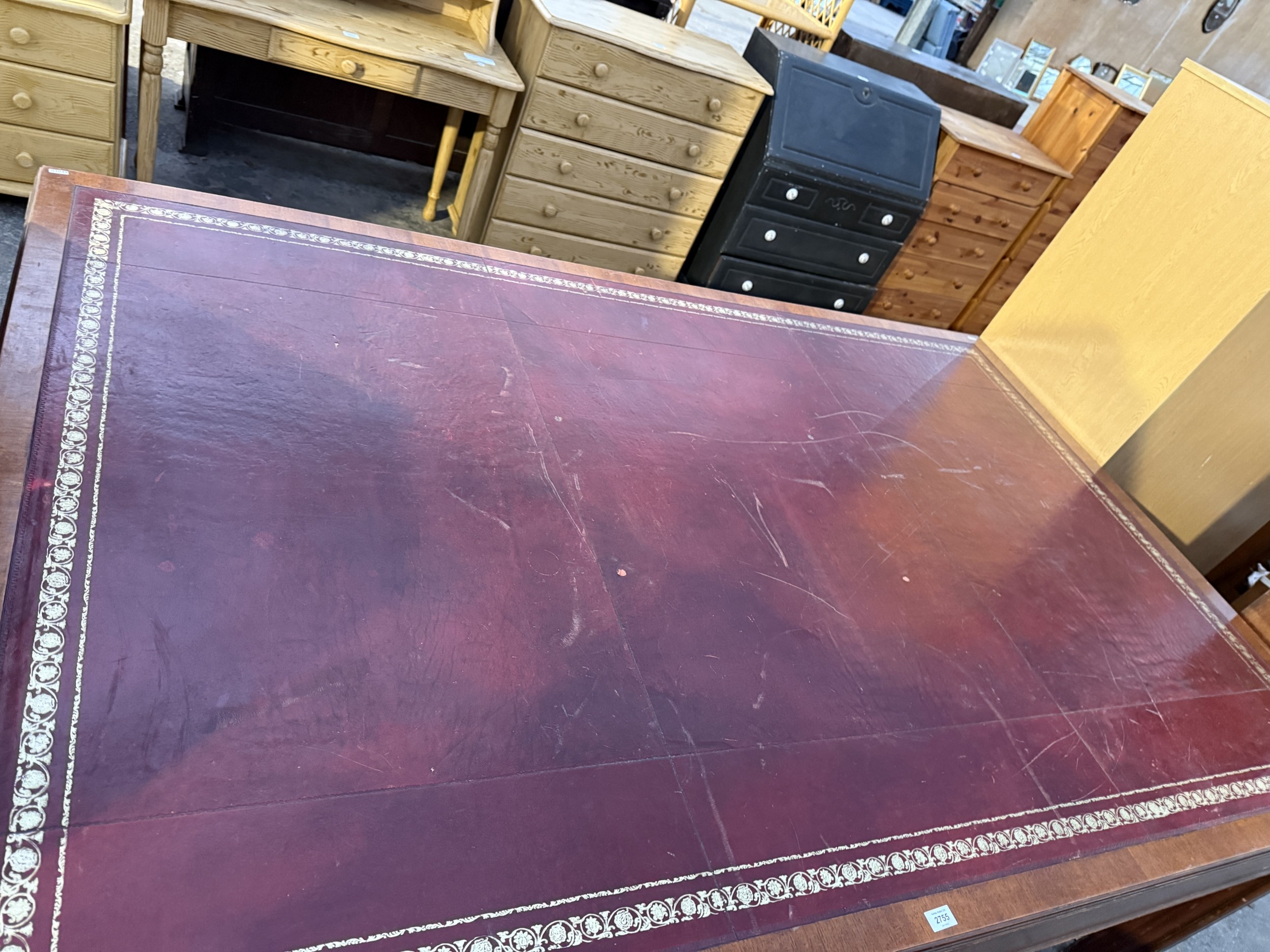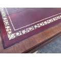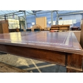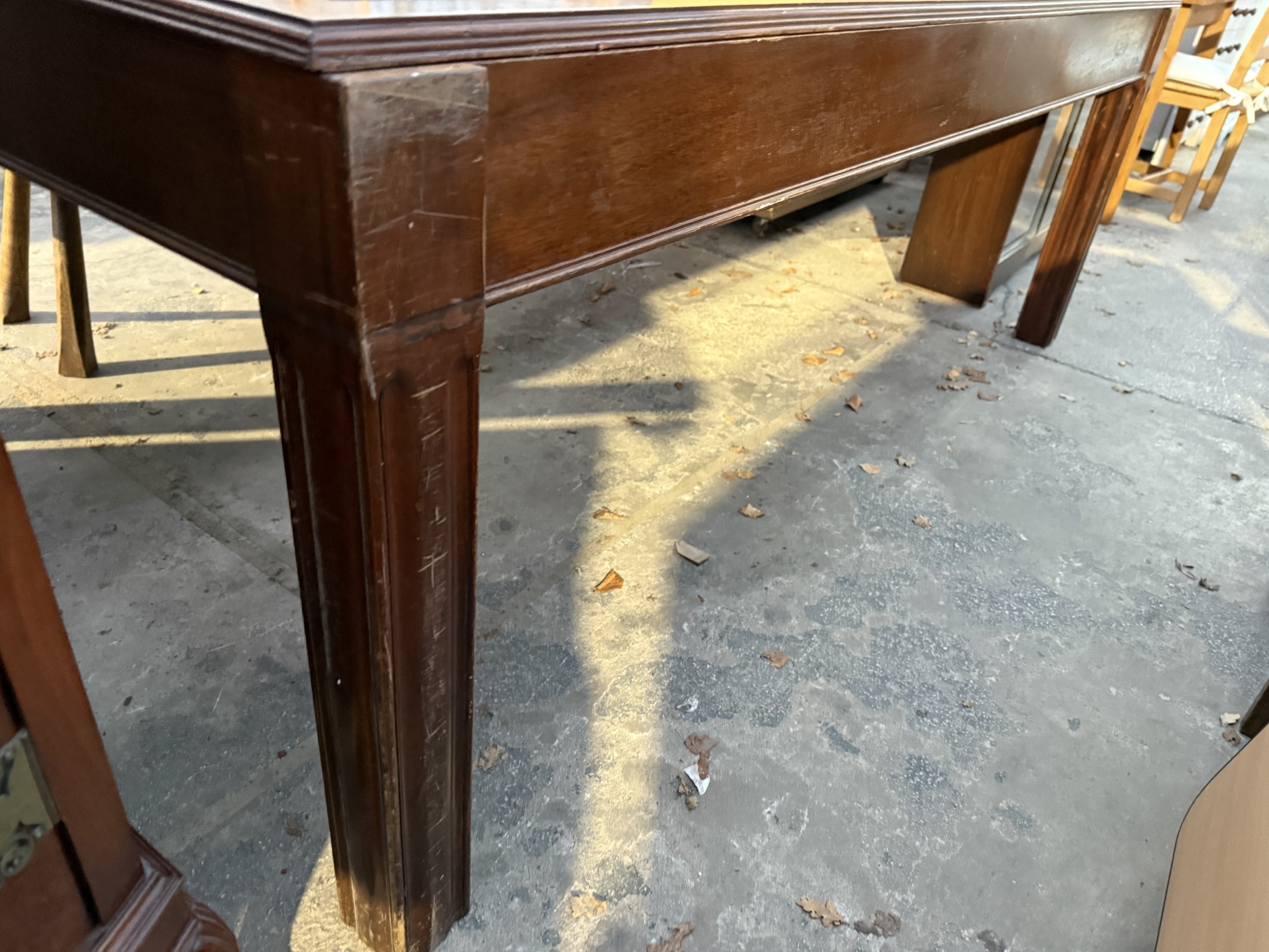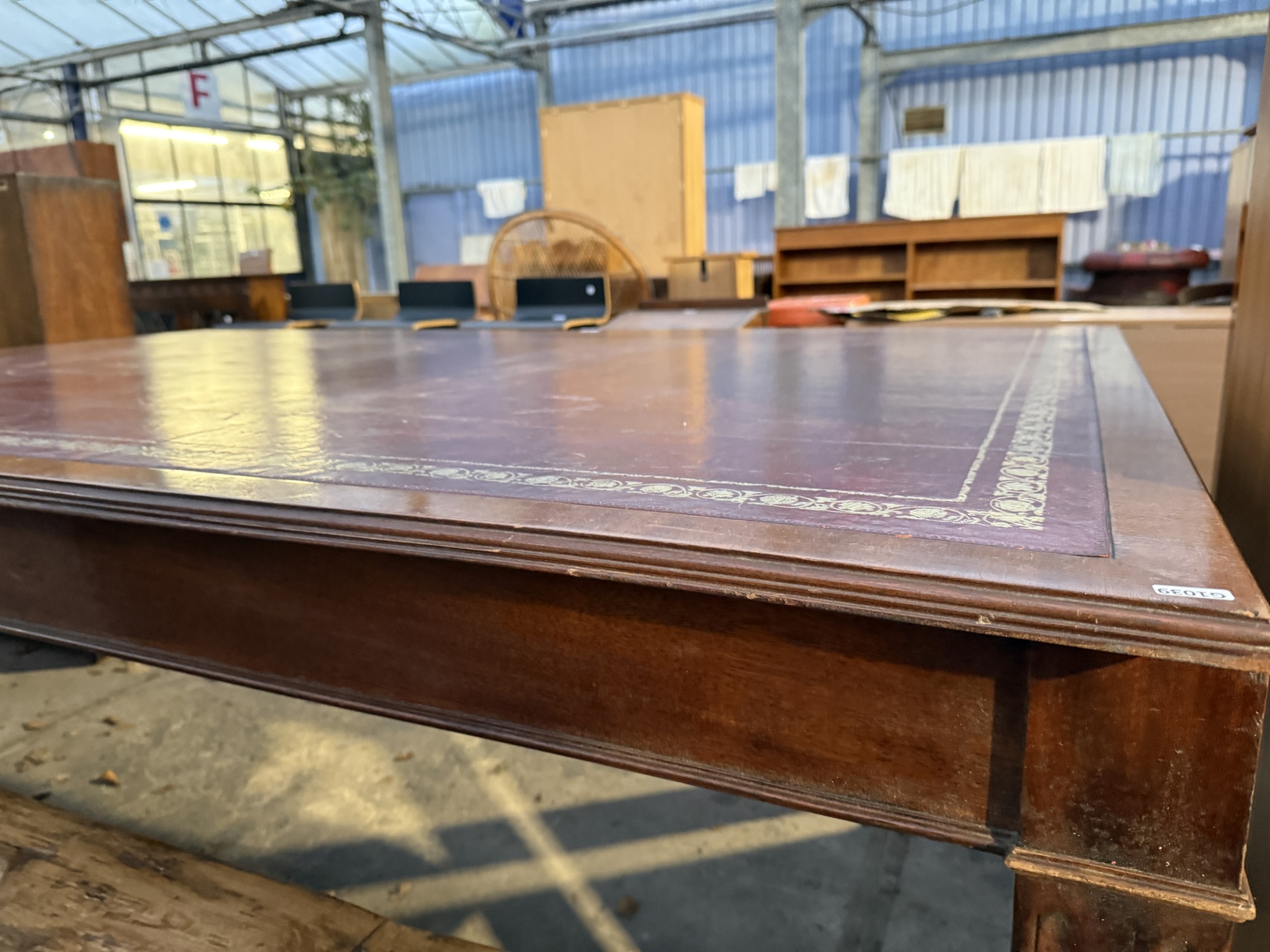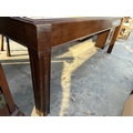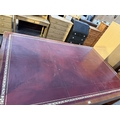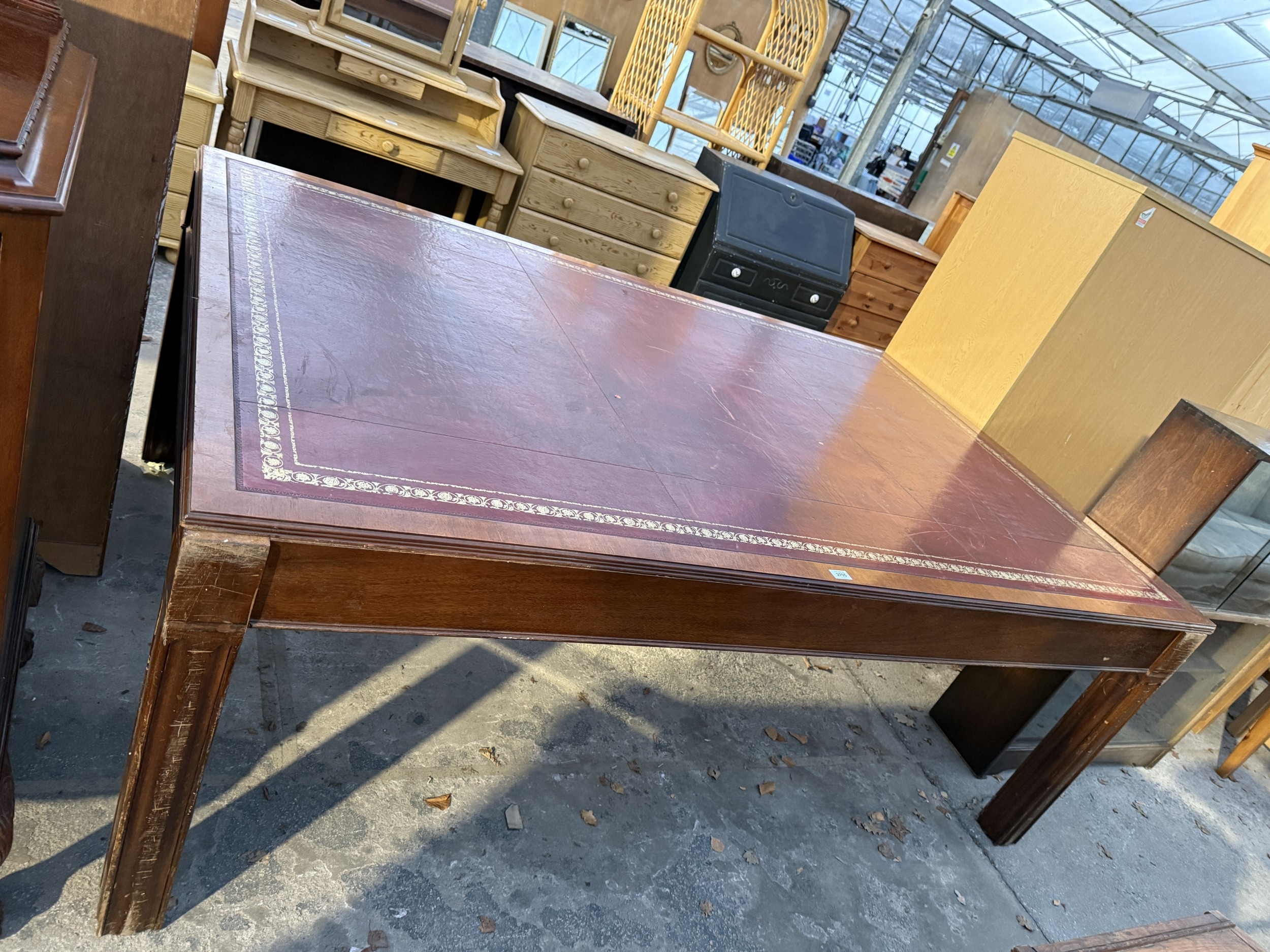 A 19TH CENTURY STYLE BOARDROOM TABLE WITH LEATHER TOP ON SQUARE LEGS, 84" X 54"