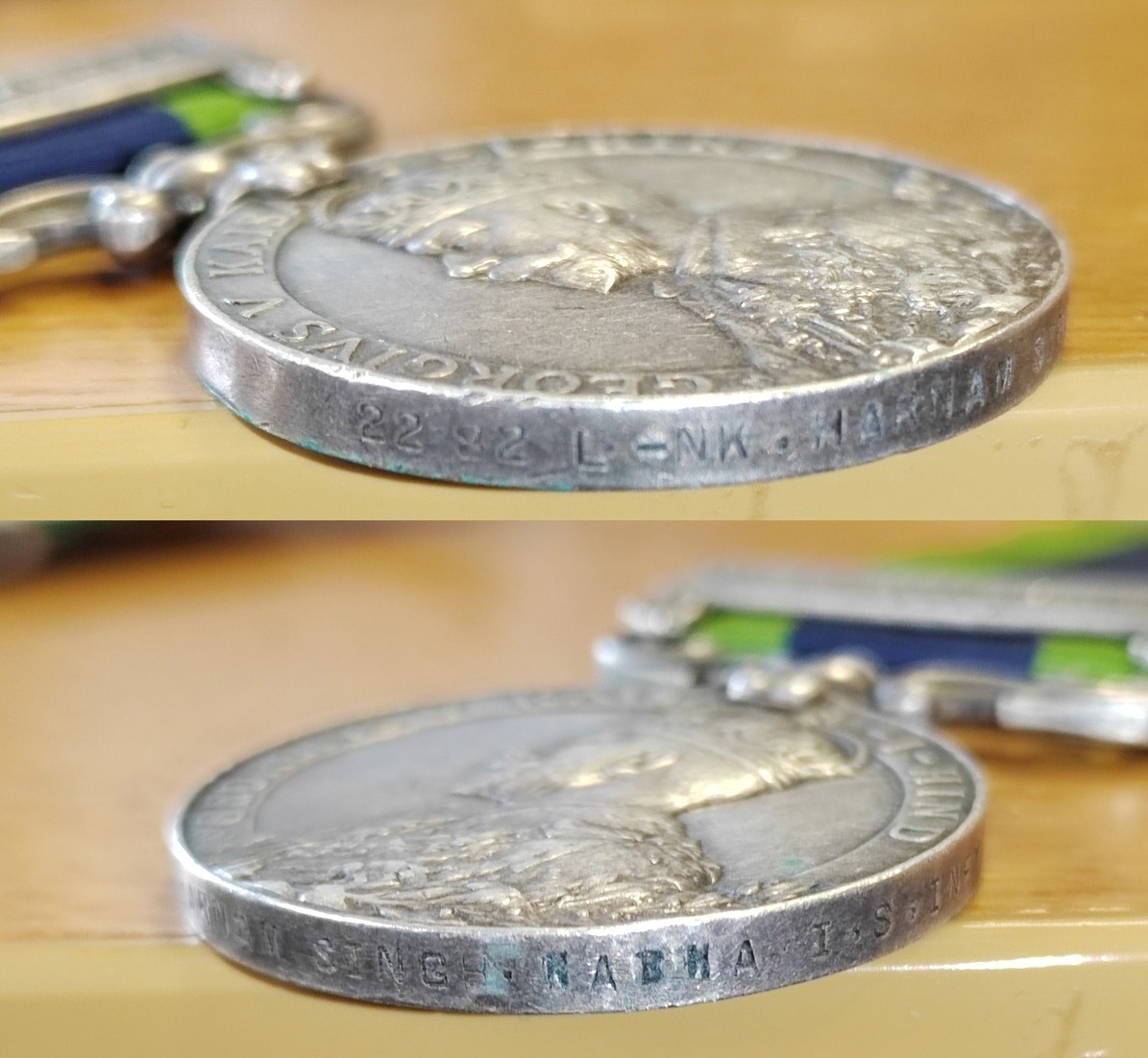 plus IGSM with Afghanistan N.W.F. 1919 clasp to 2282 L-NK. Harnam Sing. Nabha I.S. Infy., mixed condition. (R)