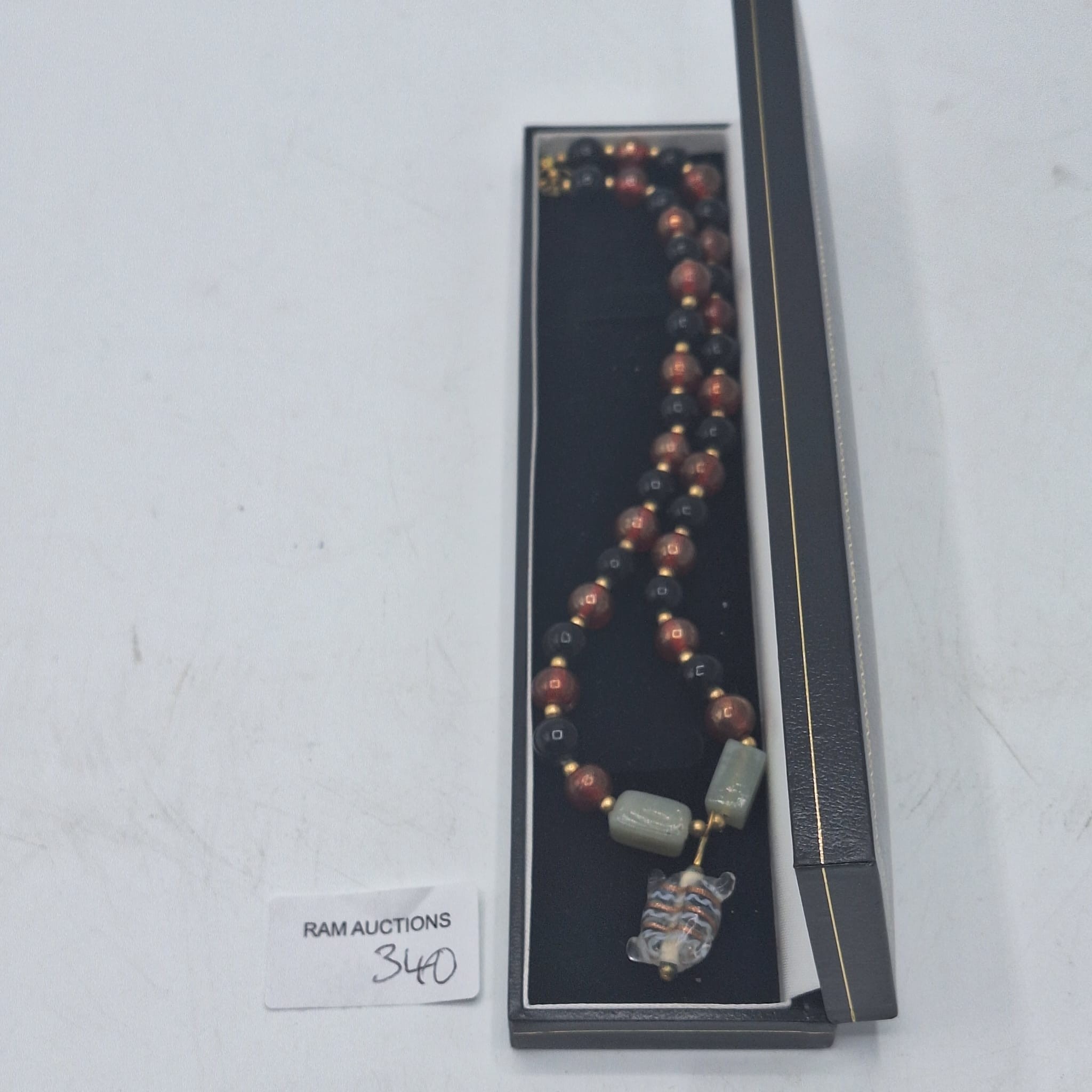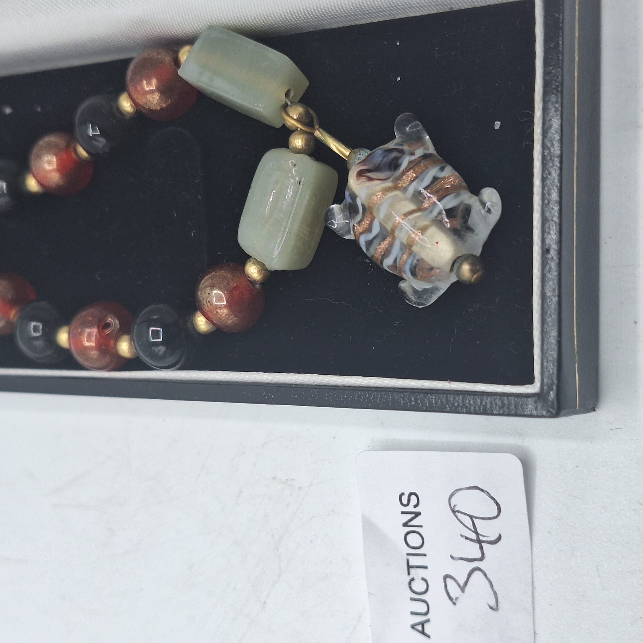 BOXED VINTAGE/RETRO MURANO TORTOISE AND A NATURAL STONE NECKLACE