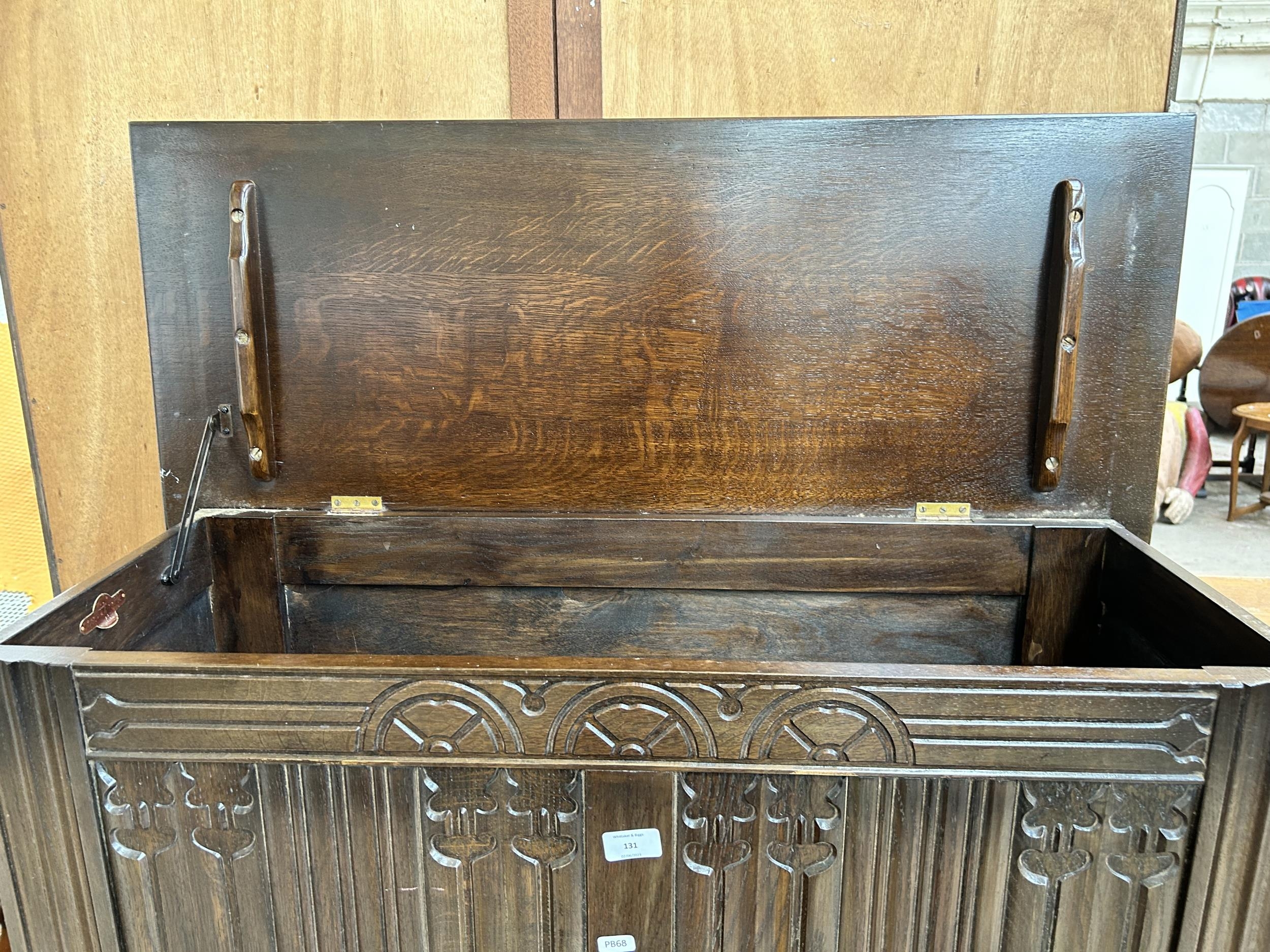 A Strongbow Furniture carved oak blanket box