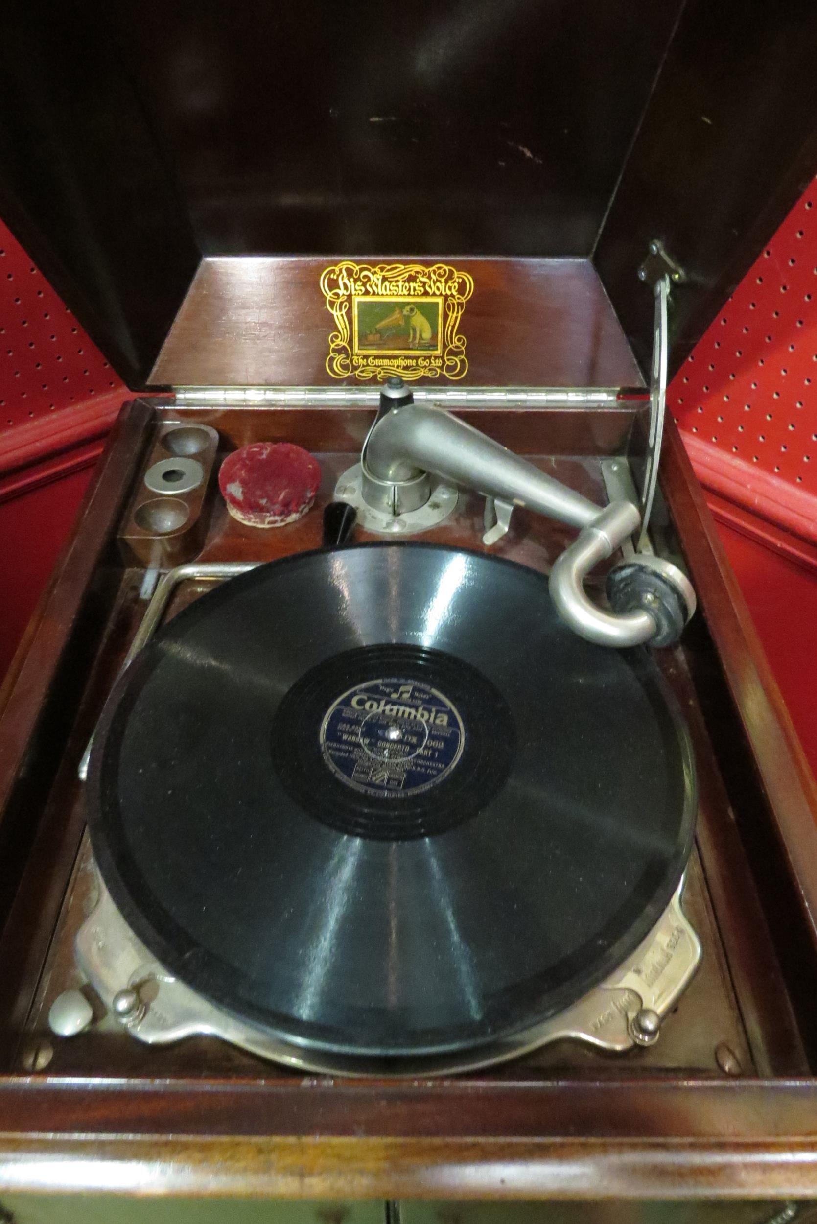 A His Masters Voice gramophone in cabinet