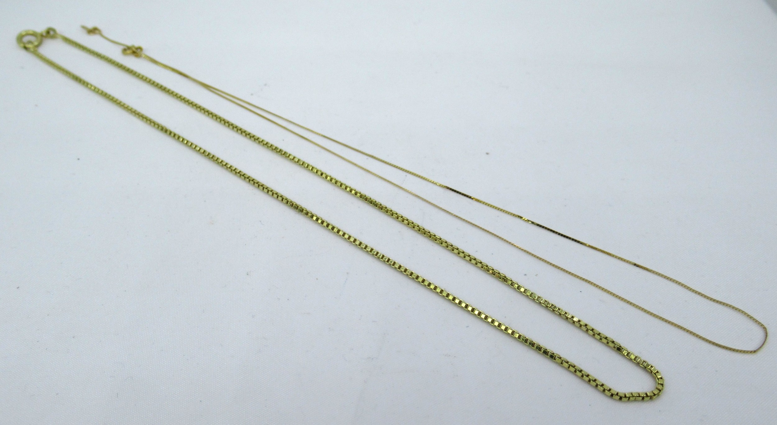 14ct Gold box link chain, together with a fine link 14ct gold chain, 4.9g
