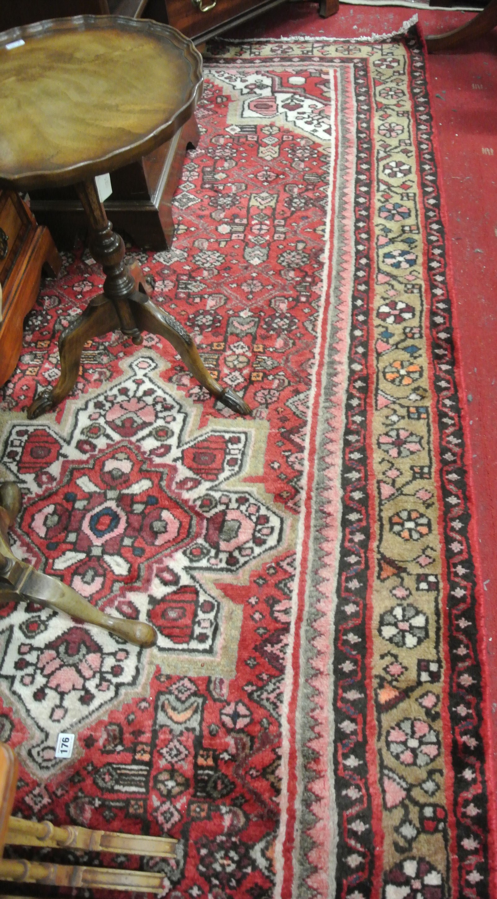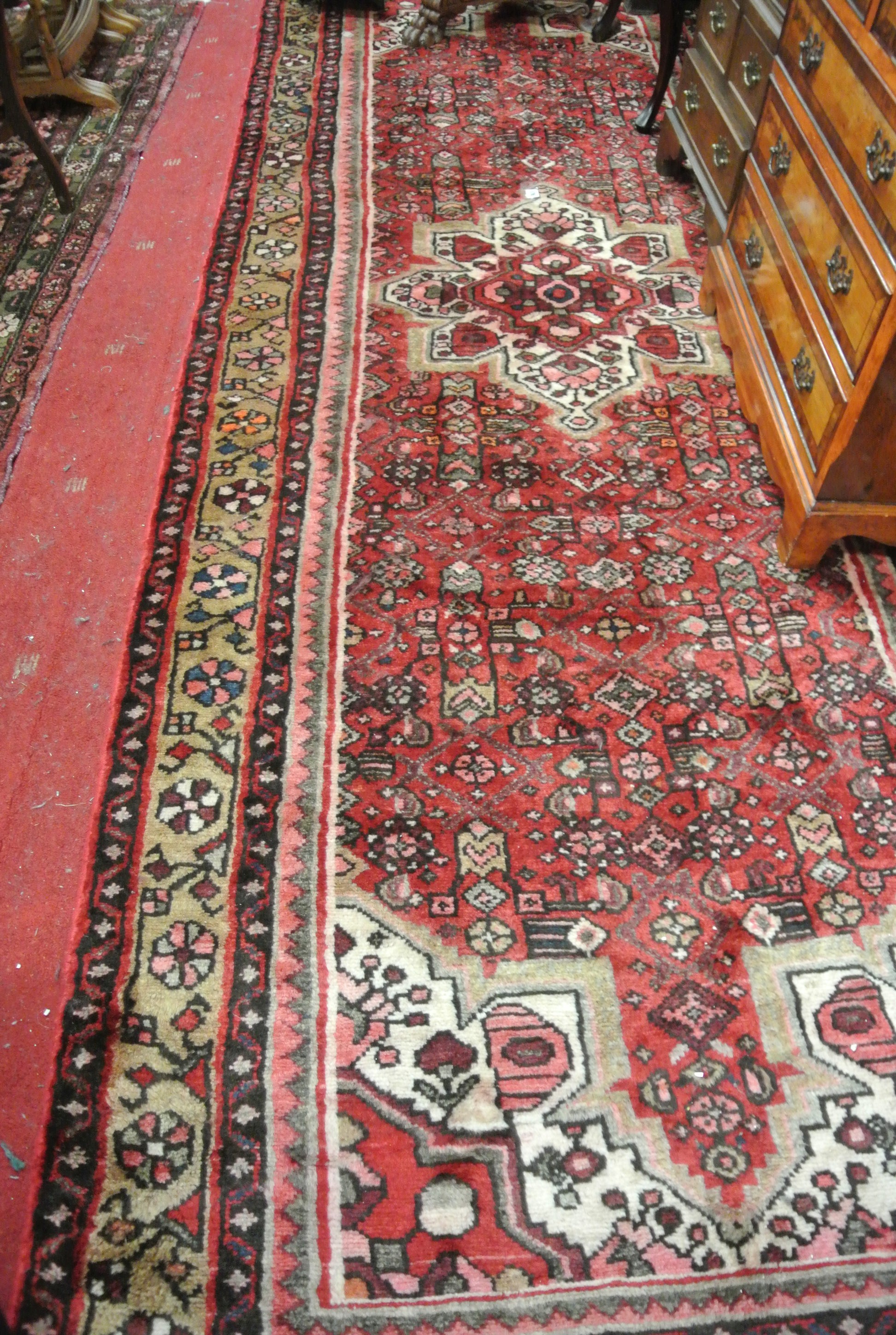 Red ground full work wool pile Persian Hamadan runner 320x120cm