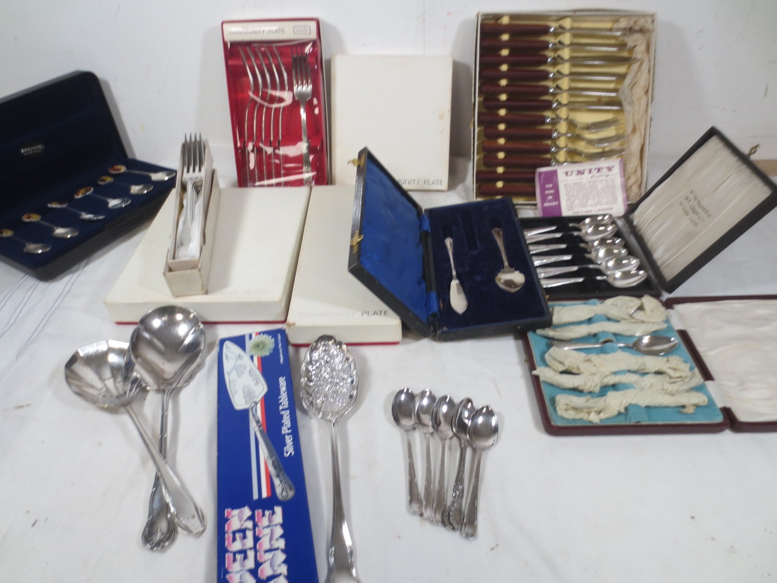 A selection of both boxed and unboxed silver plated cutlery to include Spoons ,forks ,knifes etc all as per pictures .