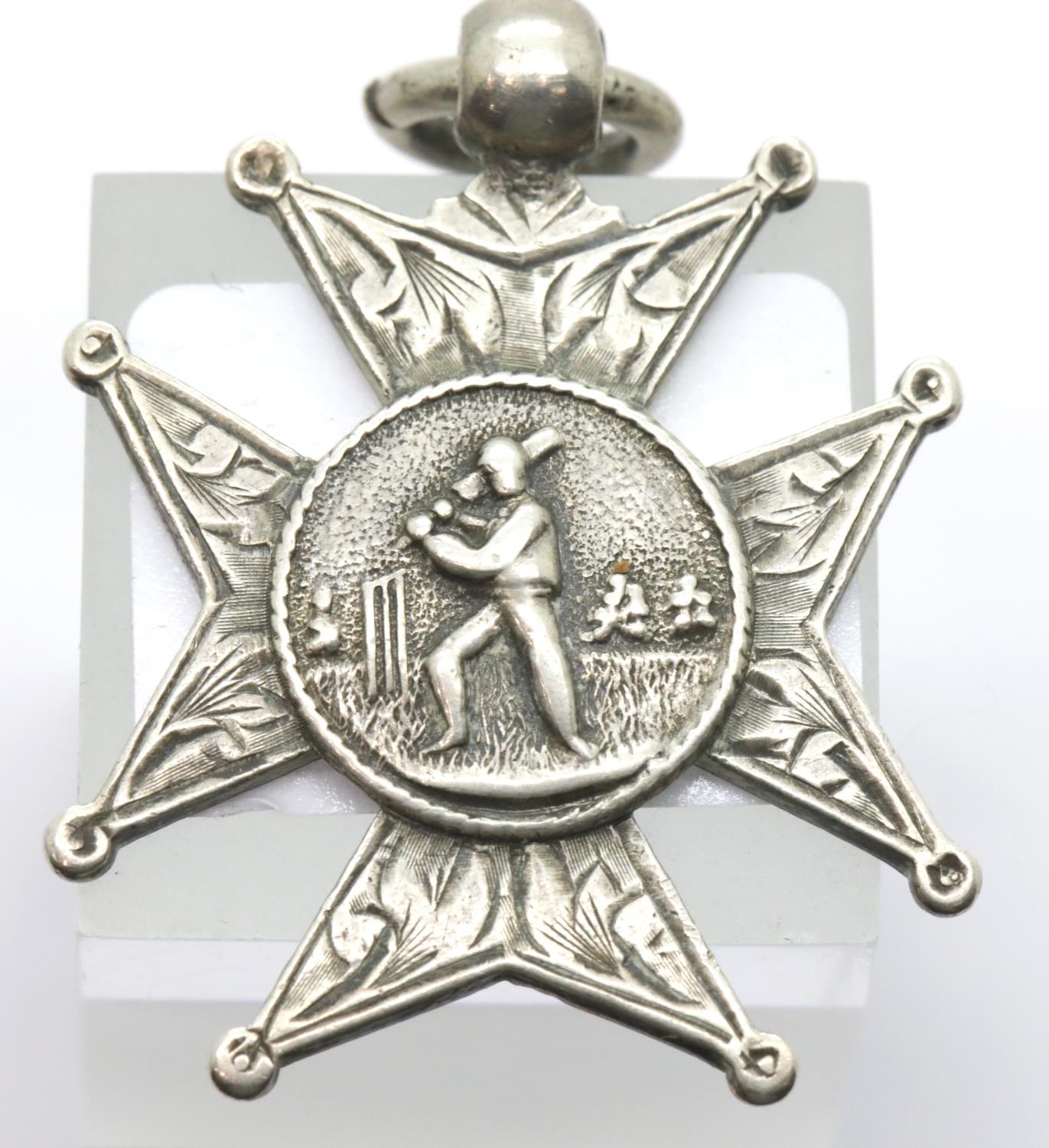 Victorian 1897 sterling silver cricket fob/medal, not inscribed. P&P Group 1 (£14+VAT for the first lot and £1+VAT for subsequent lots)