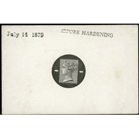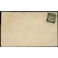 1880 ½d Pale green (Perf. 13½x14). Very fine used colour trial in a paler more yellowish green shade when compared to the issued stamp, tied to envelope by an experimental London squared circle postmark for AU.12.1880. Upper left corner of envelope removed nevertheless a very rare survivor from these cancellation experiments of which only 2 or 3 exist in private hands. SG165. Cat. £4500.