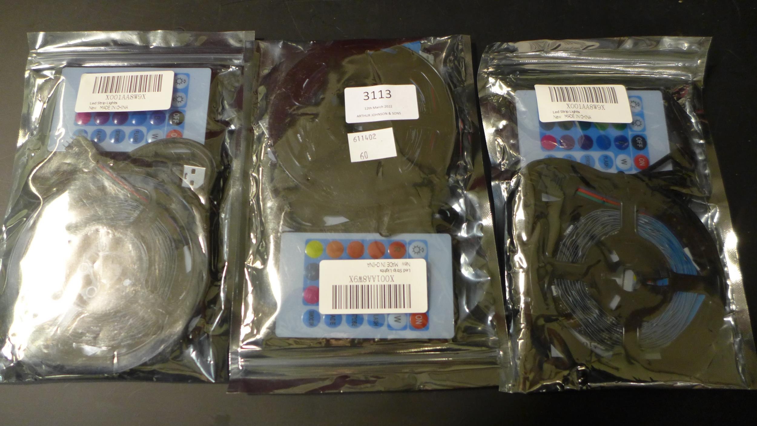 Three sets of USB strip lights for TVs, monitors, etc. (with remotes)