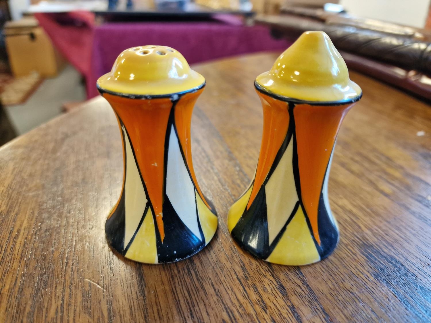 Art-Deco 1930's Clarice Cliff Bizarre Salt and Pepper Shakers Pots