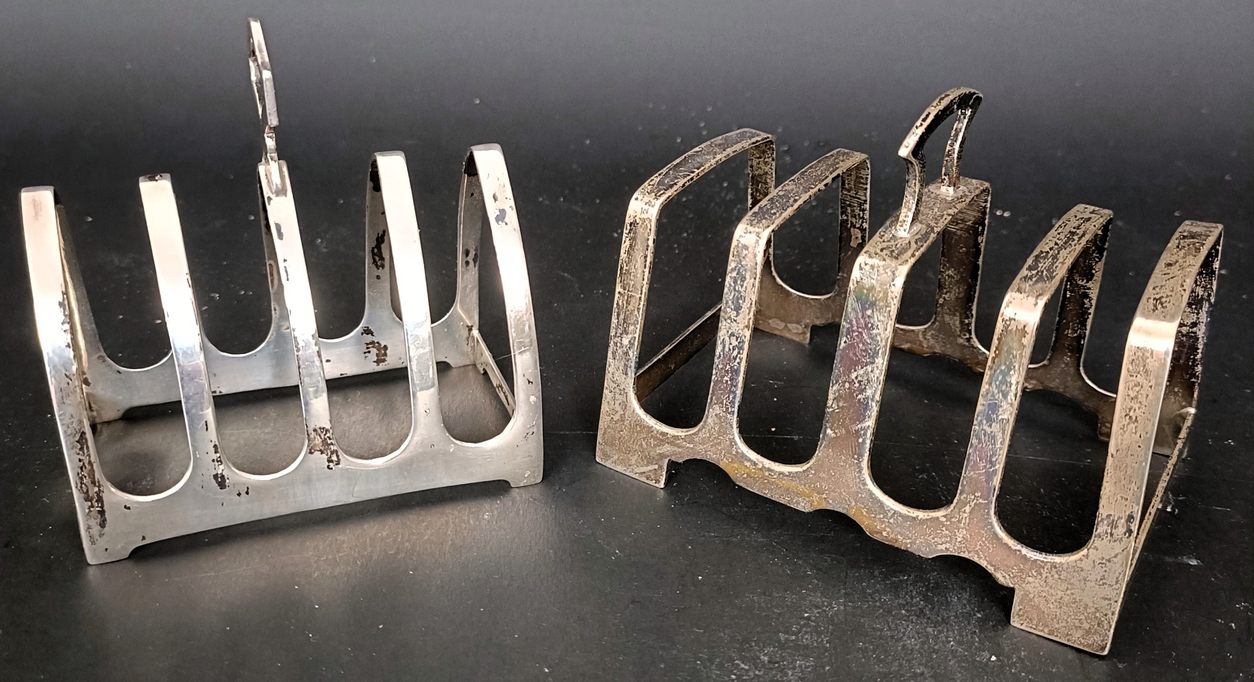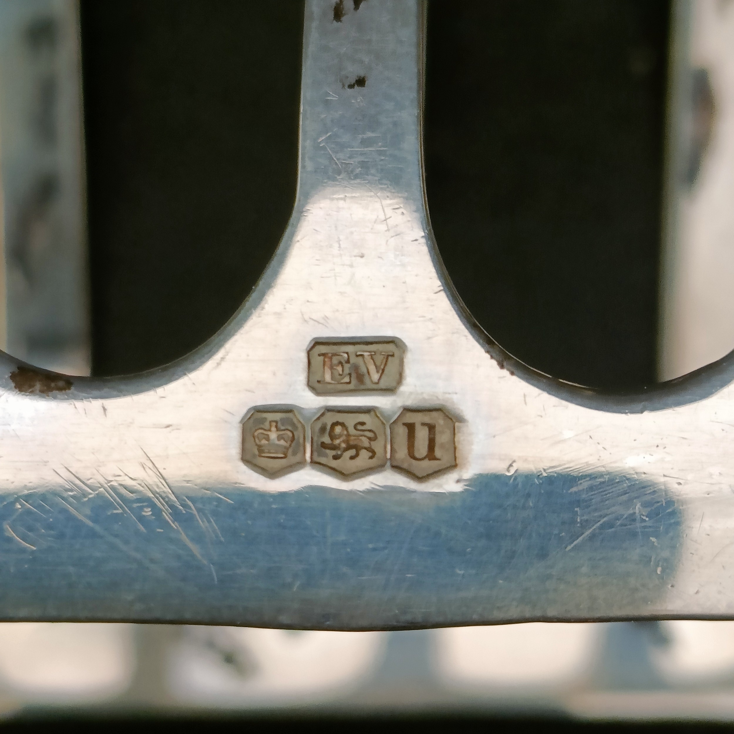 A George V silver four division toast rack, 10 cm wide, and another, 4.2 ozt, 9 cm wide (2)